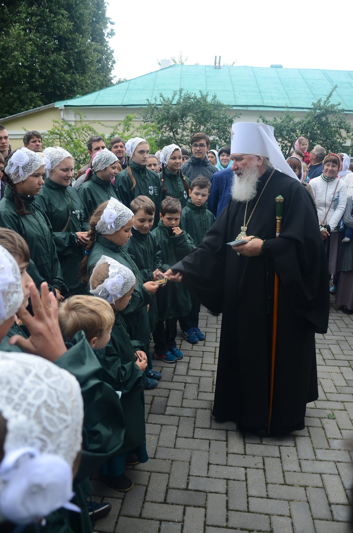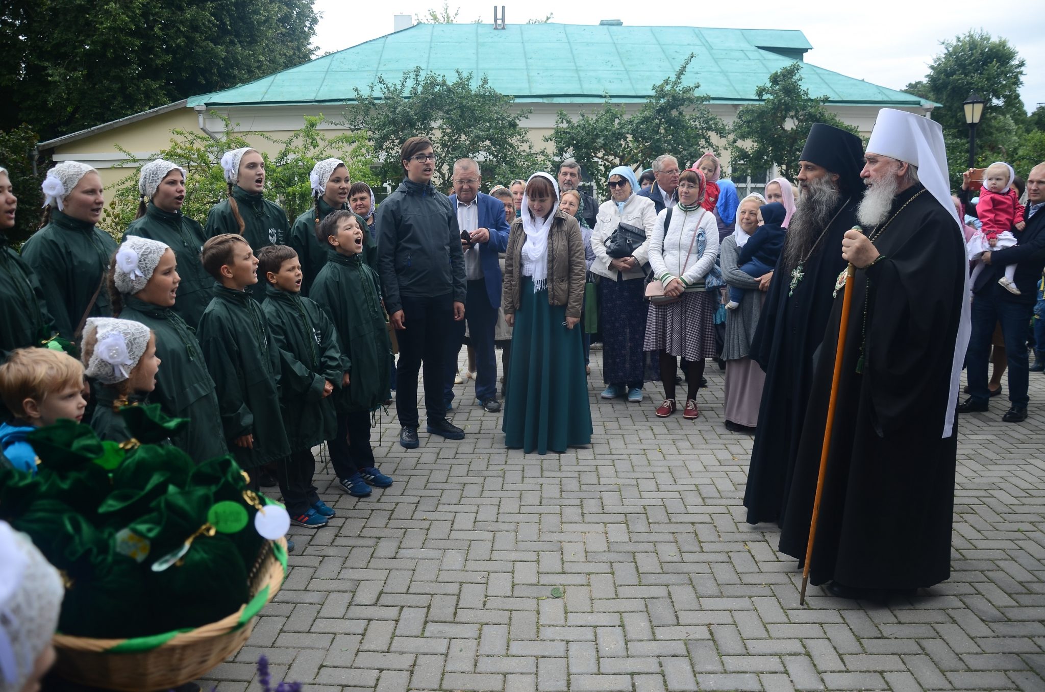 Воскресная школа при монастыре прп. Тихона Калужского поздравила дорогих гостей с праздником обители. В свою очередь митрополит тепло приветствовал детей и преподавателей школы, поздравил их с престольным праздником обители и в качестве архипастырского благословения преподал всем иконки с образом преподобного Тихона Калужского.