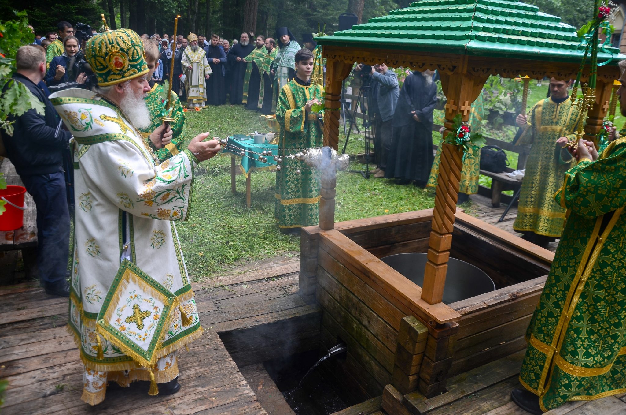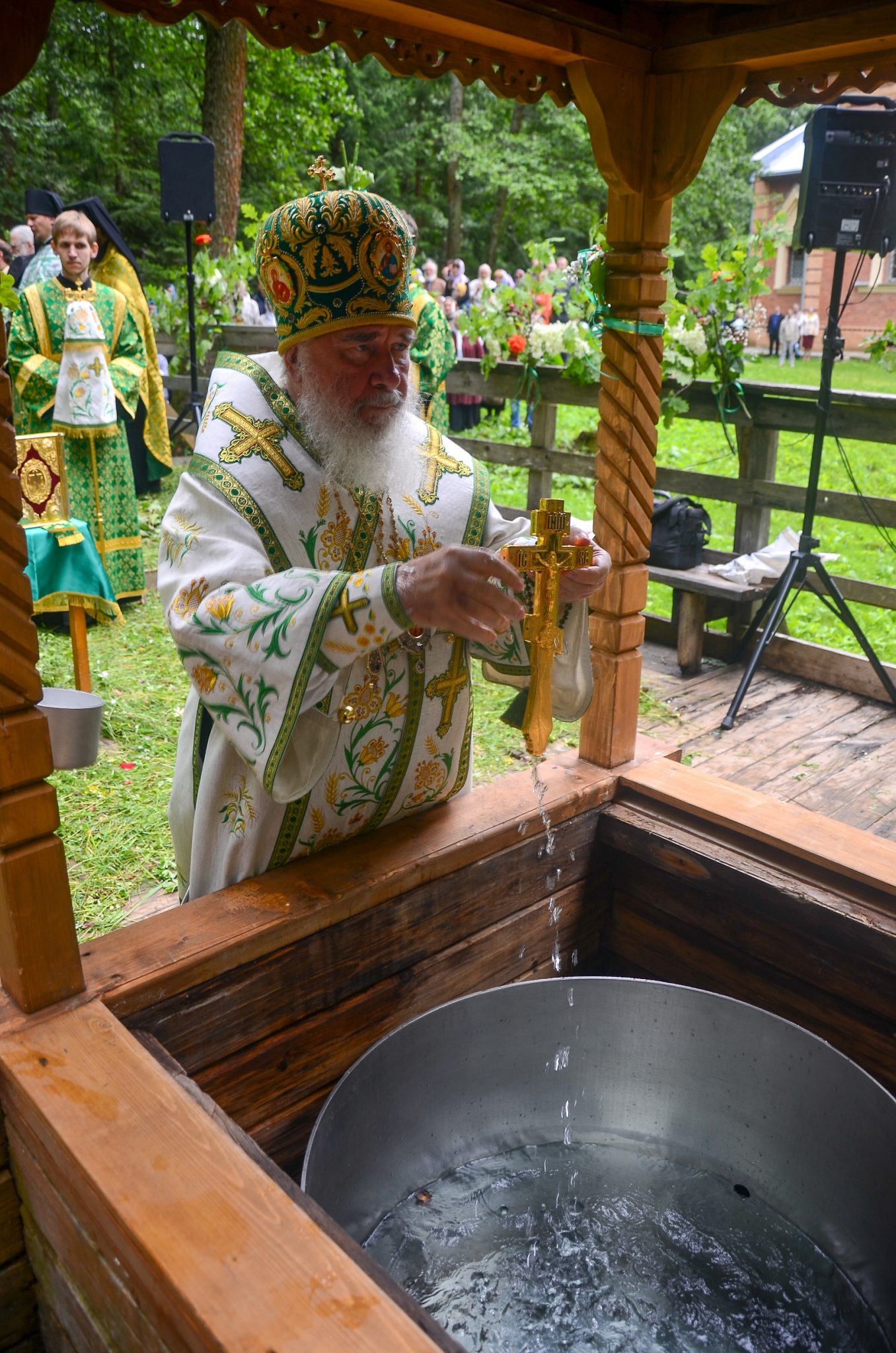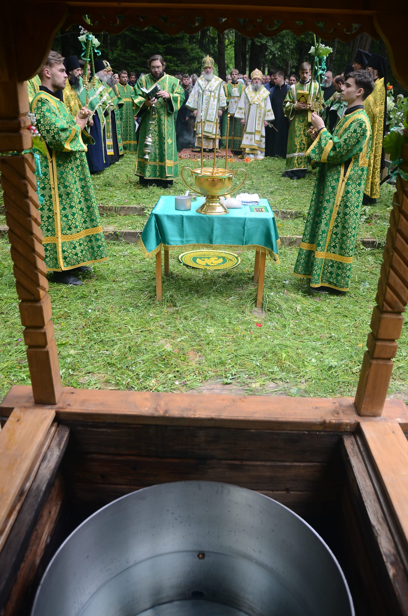 В тот же день, по многолетней традиции, на святом источнике в скиту в честь иконы Божией Матери «Живоносный источник» архипастырями и собором духовенства был отслужен водосвятный молебен.