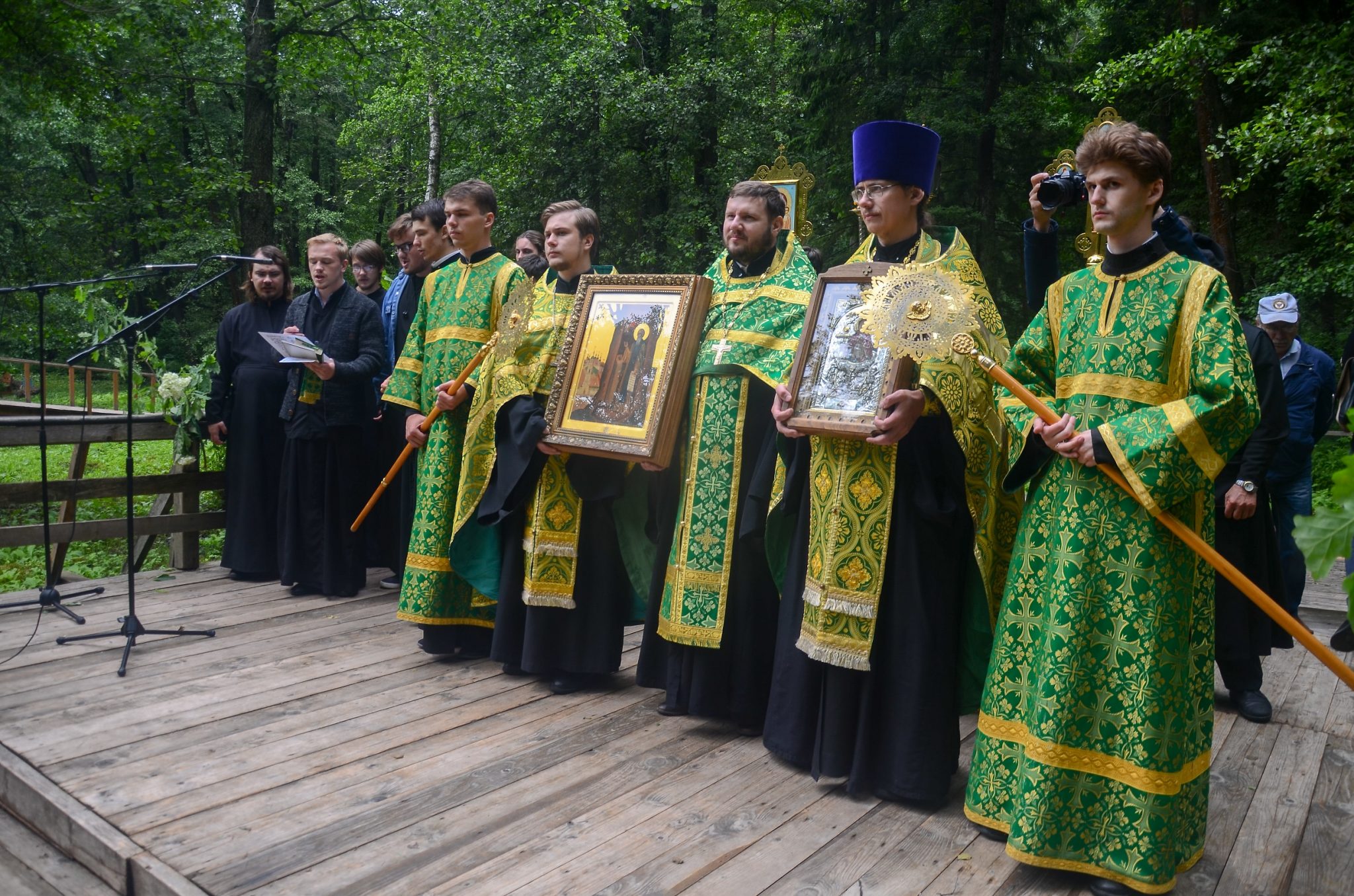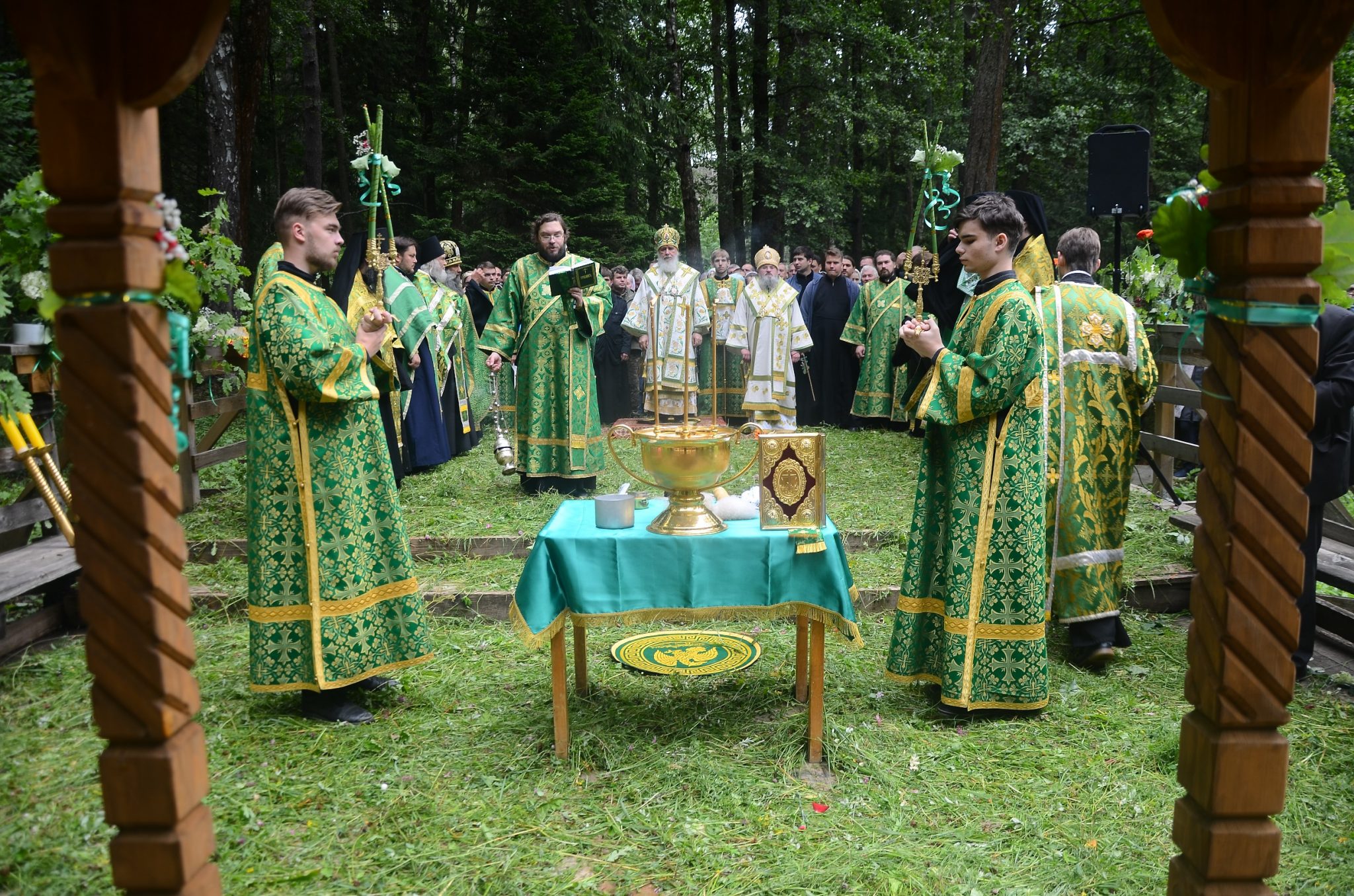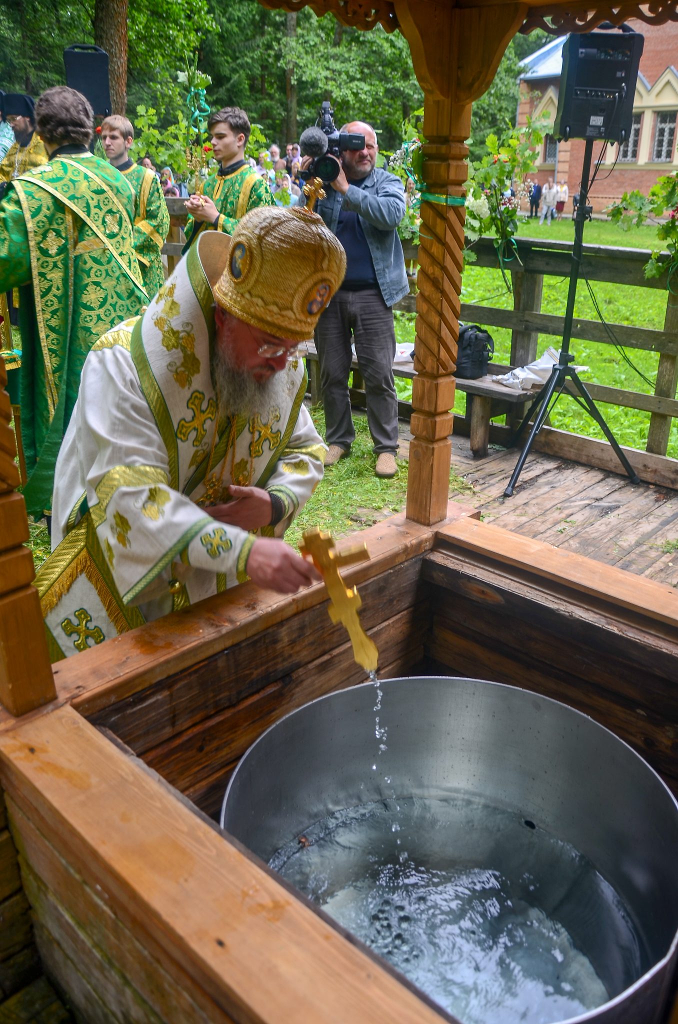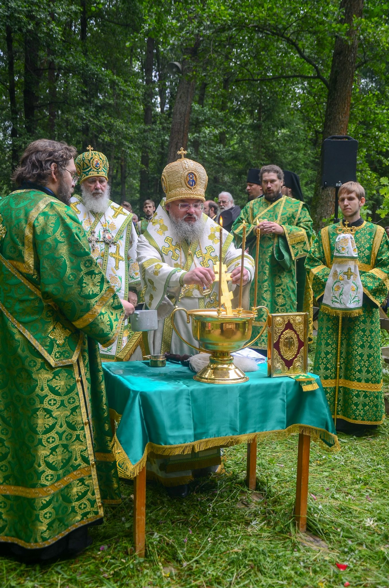 В тот же день, по многолетней традиции, на святом источнике в скиту в честь иконы Божией Матери «Живоносный источник» архипастырями и собором духовенства был отслужен водосвятный молебен.