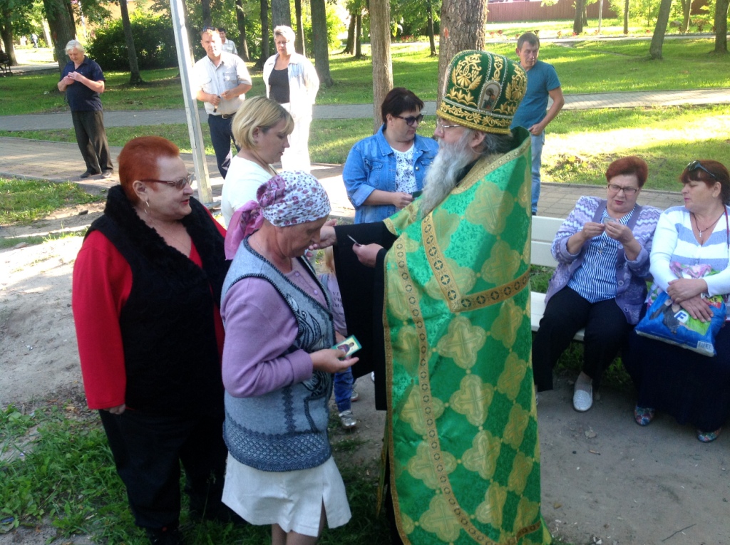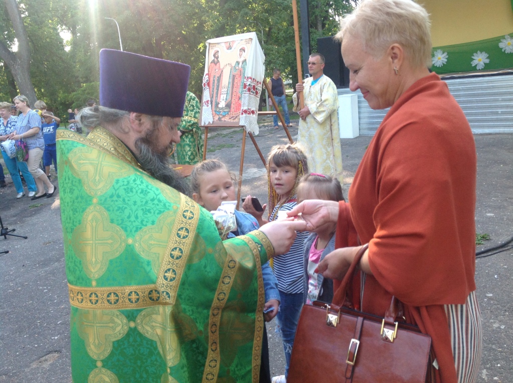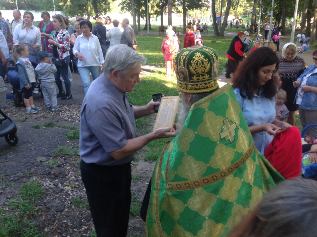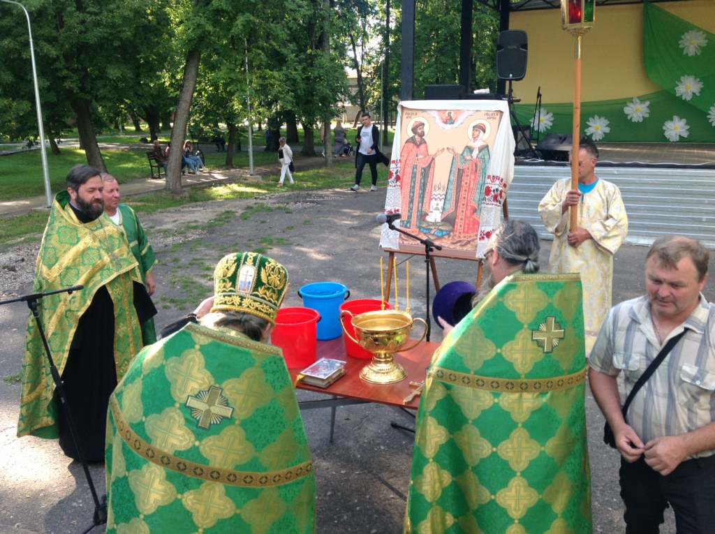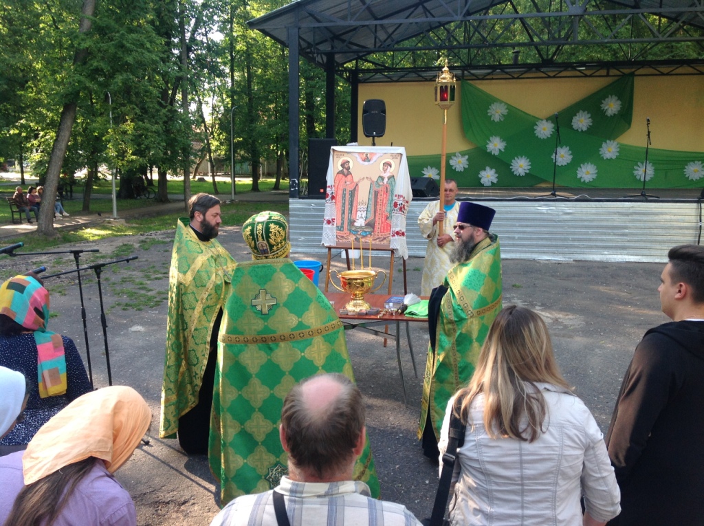 Вечером, в парке, перед праздничным концертом, состоялся общегородской молебен. Богослужение возглавил настоятель Казанского собора города Людиново протоиерей Алексий Жиганов в сослужении настоятеля храма в честь праведного Лазаря протоиерея Михаила Карпенко и клирика храма иерея Григория Краснова.