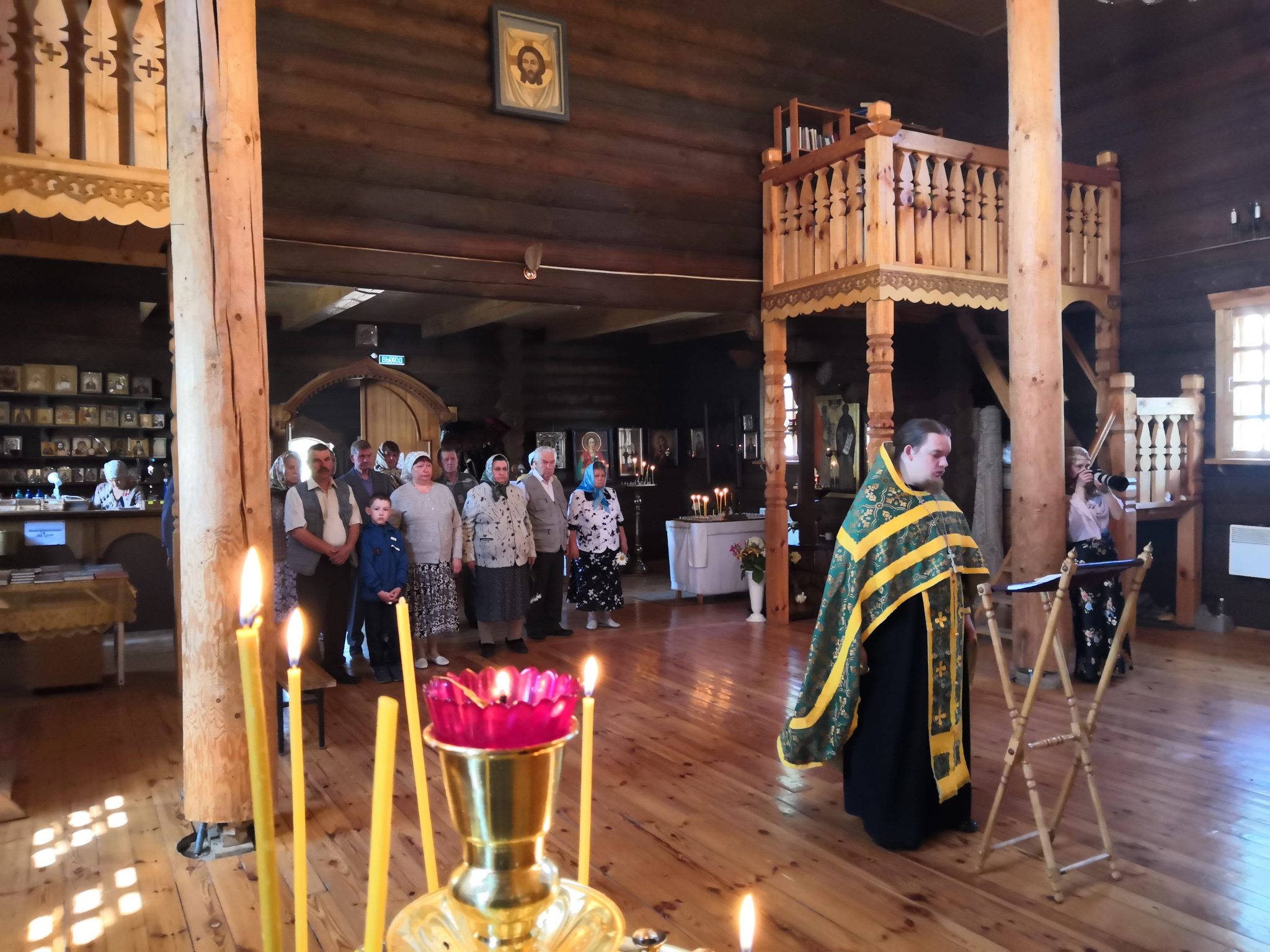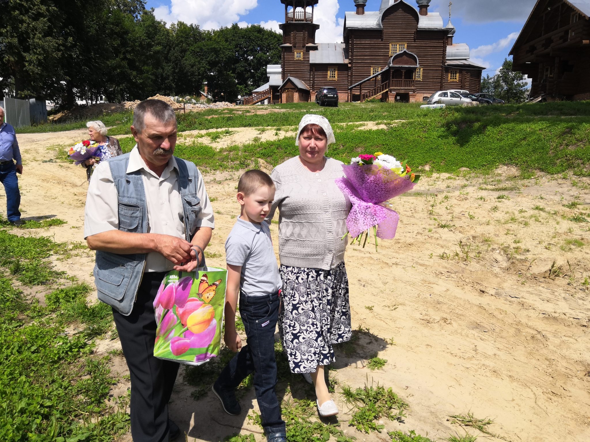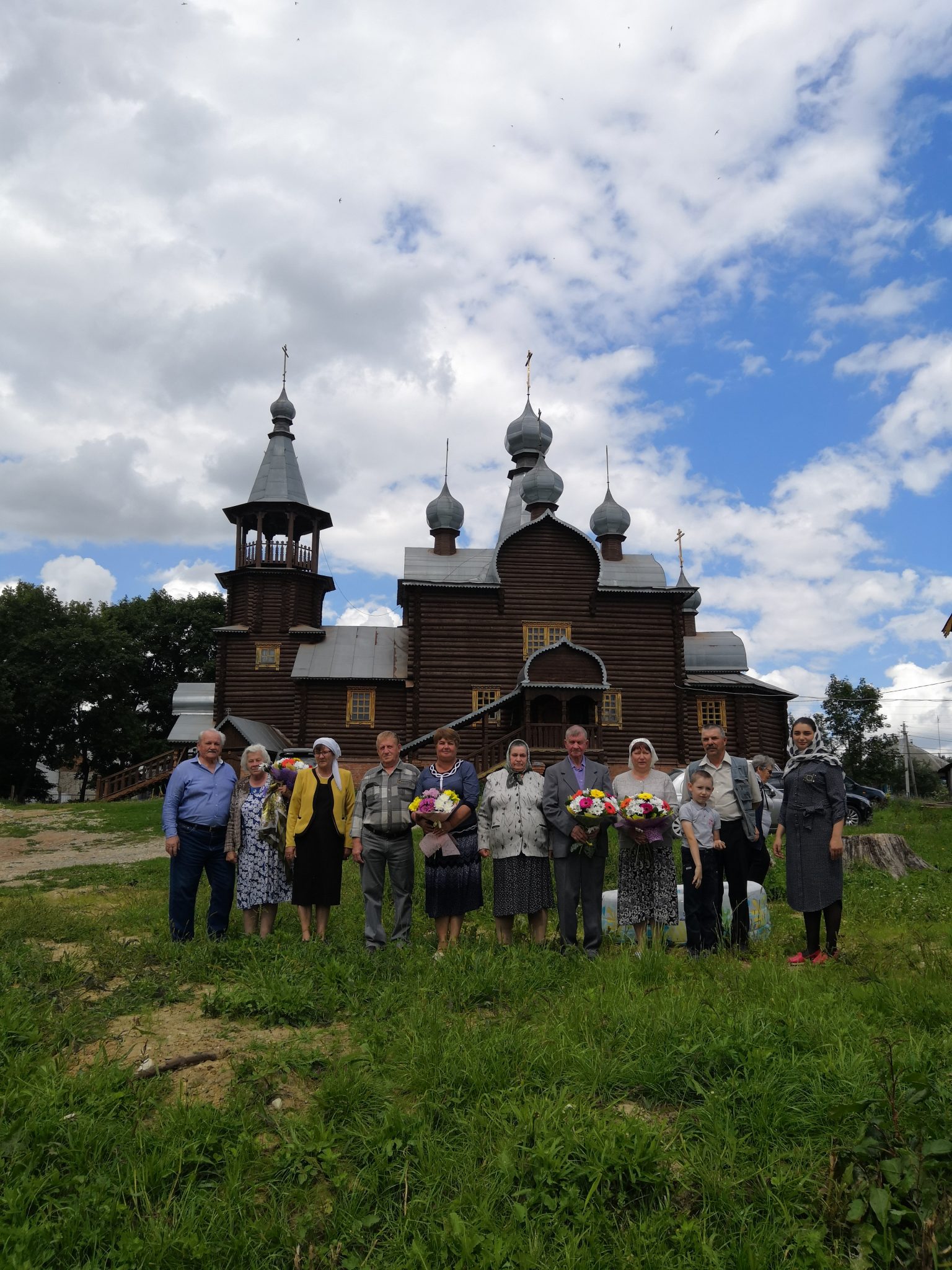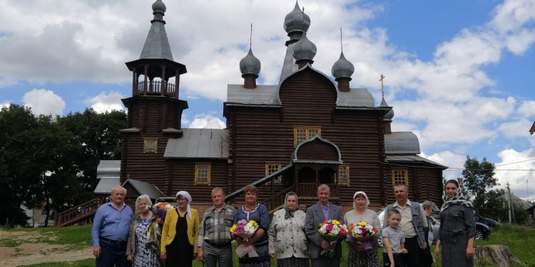 8 июля в храме был отслужен молебен святым Петру и Февронии, на который собрались гости праздника. Настоятель храма иерей Дмитрий Торшин обратился к собравшимся с приветственным словом, в котором выразил радость о встречи с собравшимися и поблагодарил их за тот пример, который они преподают жителям села своей жизнью. А пример, действительно, важный — среди собравшихся была семейная пара, которая в этом году встречает 60 лет семейной жизни. У некоторых пар даты помоложе — у одной 58 лет совместной жизни, у двух по 55.