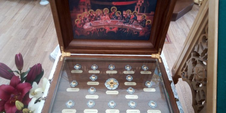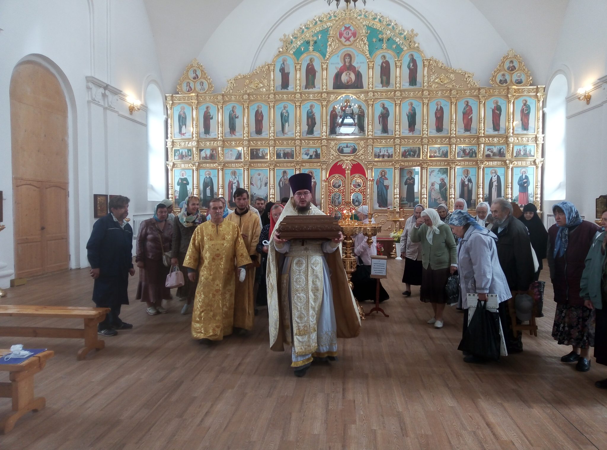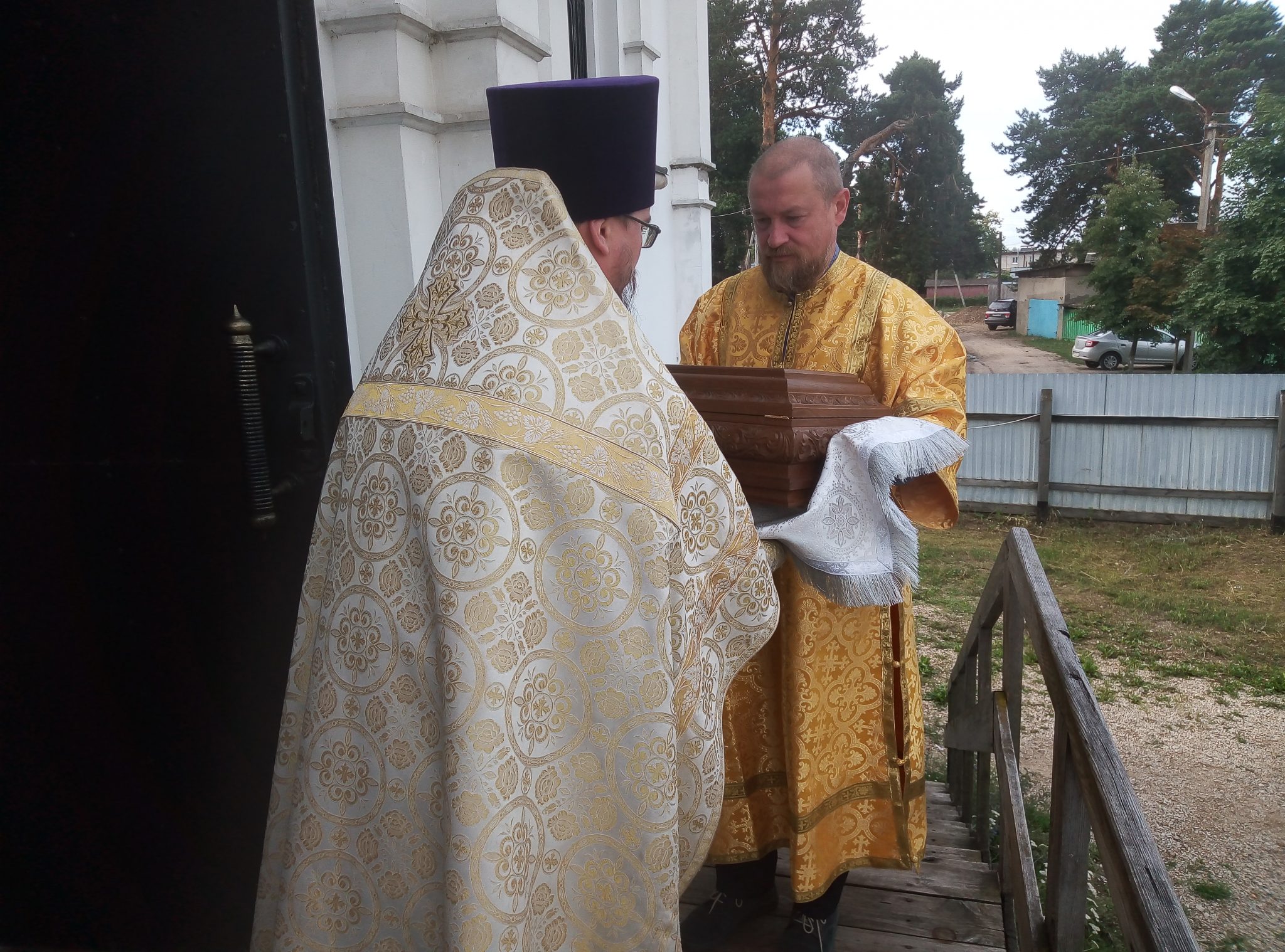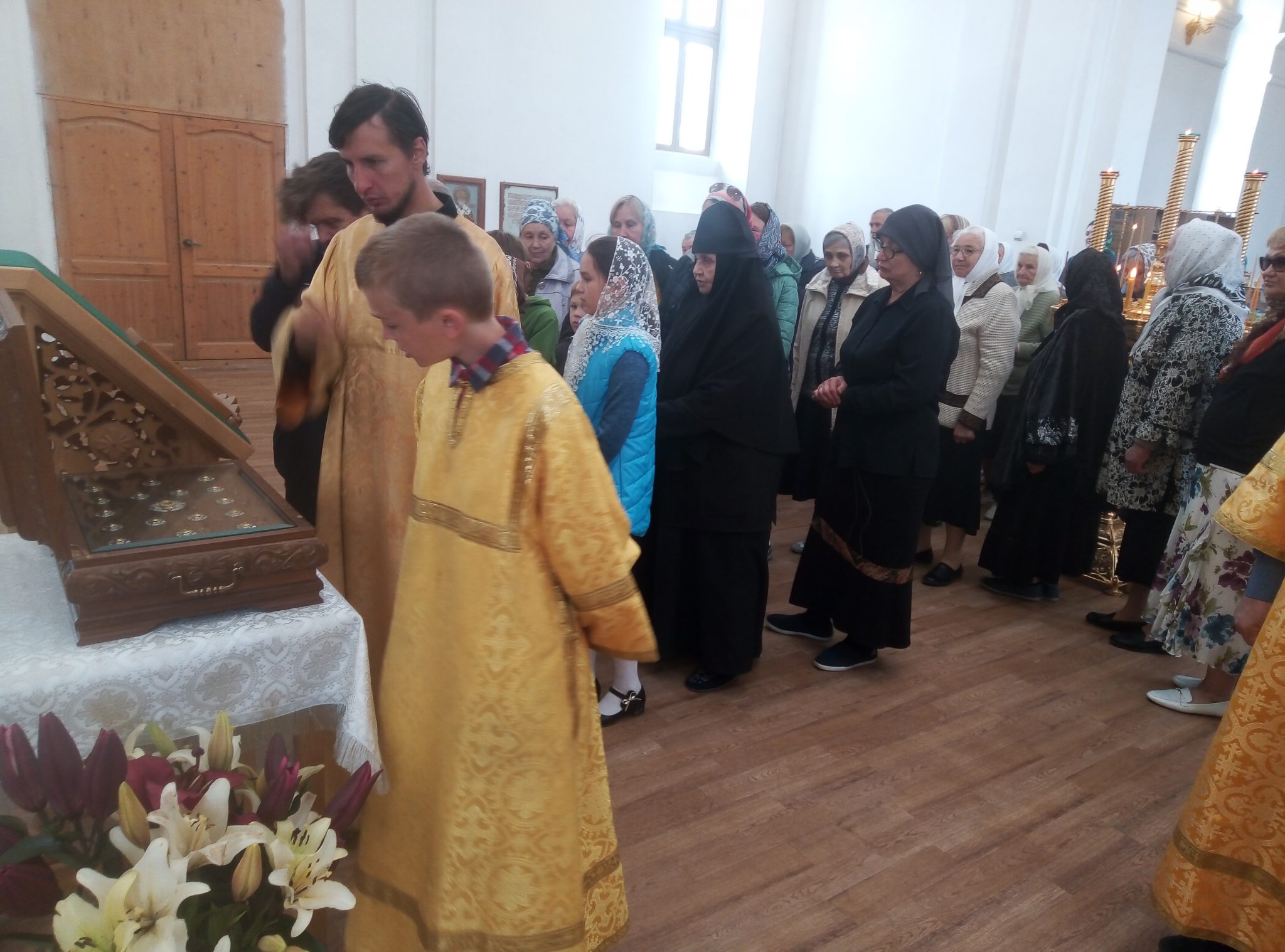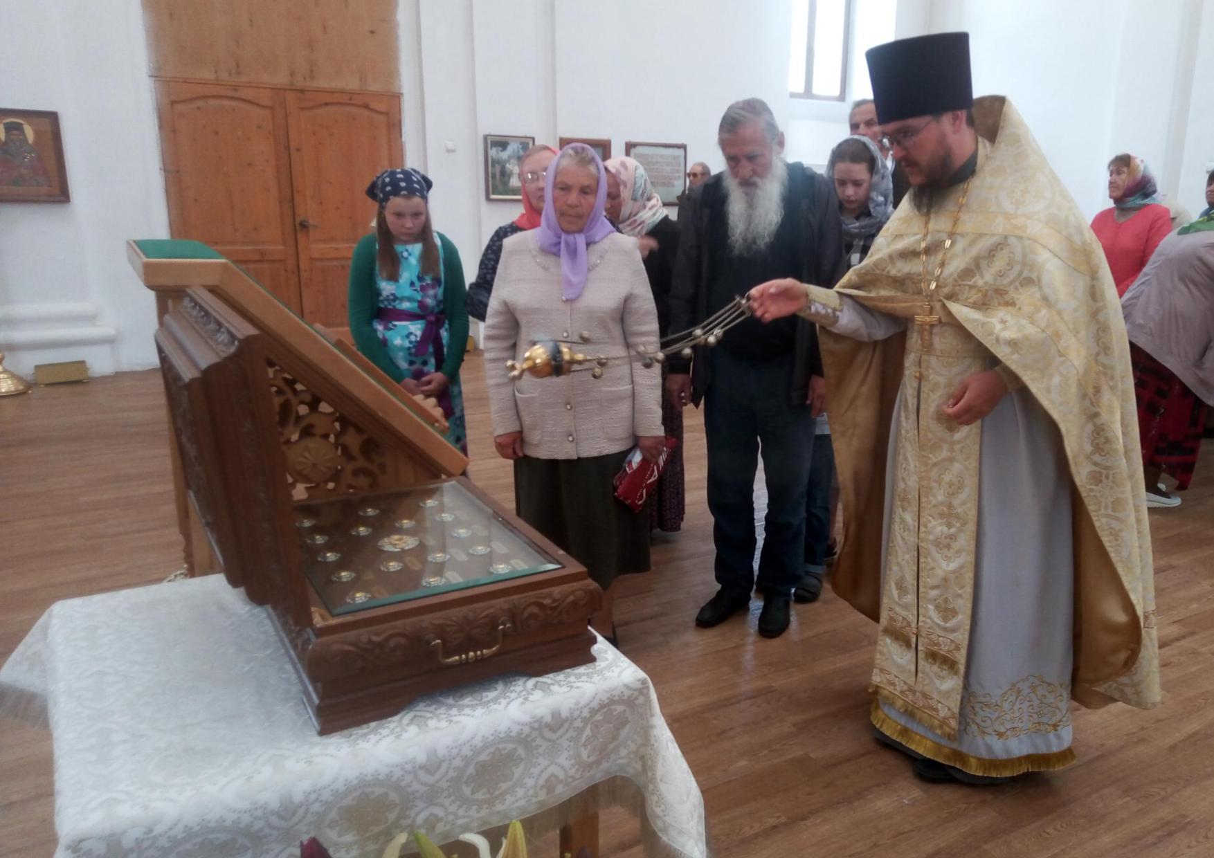 Настоятель храма иерей Дионисий Куваев вместе с прихожанами торжественно встретили святыню. Под пение тропаря, кондака и величания апостолам святые мощи были внесены в храм для всеобщего молитвенного поклонения. В храме была совершена Божественная Литургия, а затем молебен, по завершении которого молящиеся со благоговением проводили святыню.