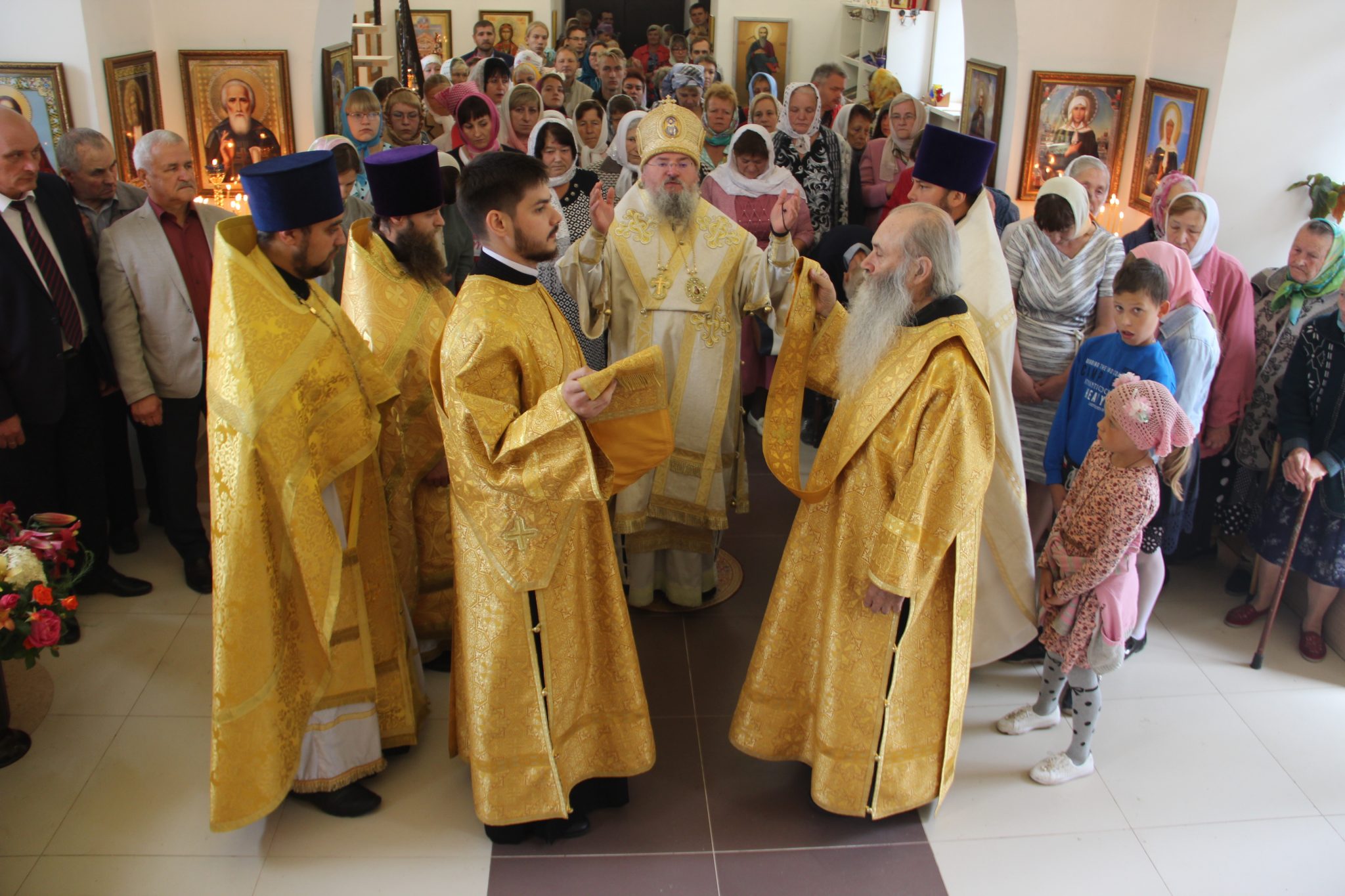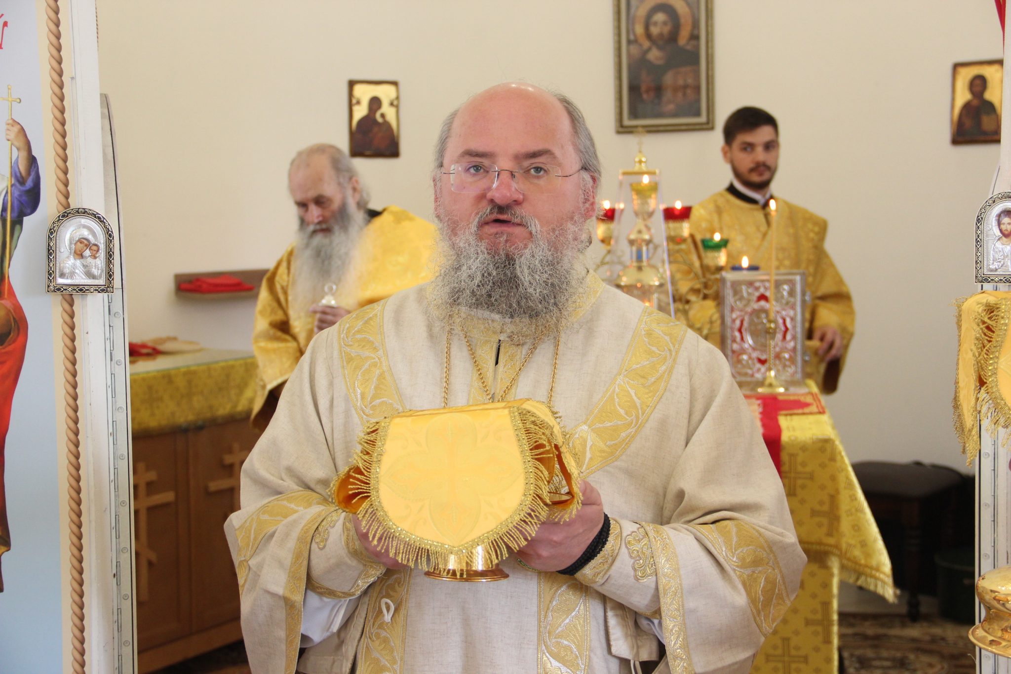 Преосвященному владыке сослужили: благочинный округа иерей Алексий Ефименков, протоиерей Антоний Хатунцев, иерей Артемий Арутюнян – настоятель прихода, диакон Евгений Васильев и иеродиакон Виталий (Павленко).