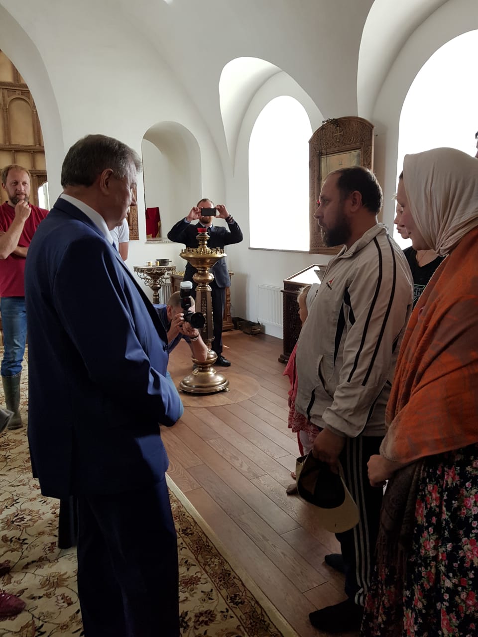 Посещение храма было незапланированно, но состоялось, чему были рады жители села, прихожане и настоятель храма иерей Максим Изопов. Губернатор отметил благоустроенность храма.  Обратил внимание на то, что сохранена  архитектура храма внутри и снаружи, которая и была в первозданном его виде.  Также познакомился с многодетной семьей — 11 детей, которая пополнила приход храма.  Семья переехала на постоянное место жительства в село Губино из другого региона в специально построенный благотворителями дом со всеми удобствами.