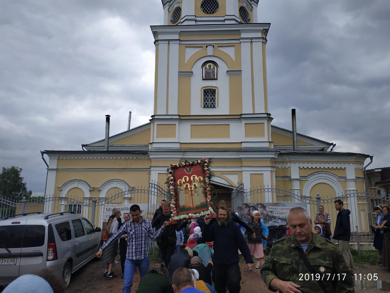 17 июля, в день празднования святых Царственных страстотерпцев вокруг города Козельска проходит традиционный крестный ход, организуемый казаками Козельского казачьего хуторского общества. В этом году, несмотря на дождливую погоду, участие в крестом ходе приняло много людей в том числе и дети. Главная святыня крестного хода — икона святых Царственных страстотерпцев. Общая протяжённость крестного хода более 20 километров. Крестный ход останавливается в храмах города Козельска, для совершения молебна. В Благовещенском храме икону встречали настоять иерей Сергий Барыкин, протоиерей Павел Морозов и диакон Евгений Васильев. В храме был совершён молебен святым мученикам после которого состоялось помазание всех освященным елеем.