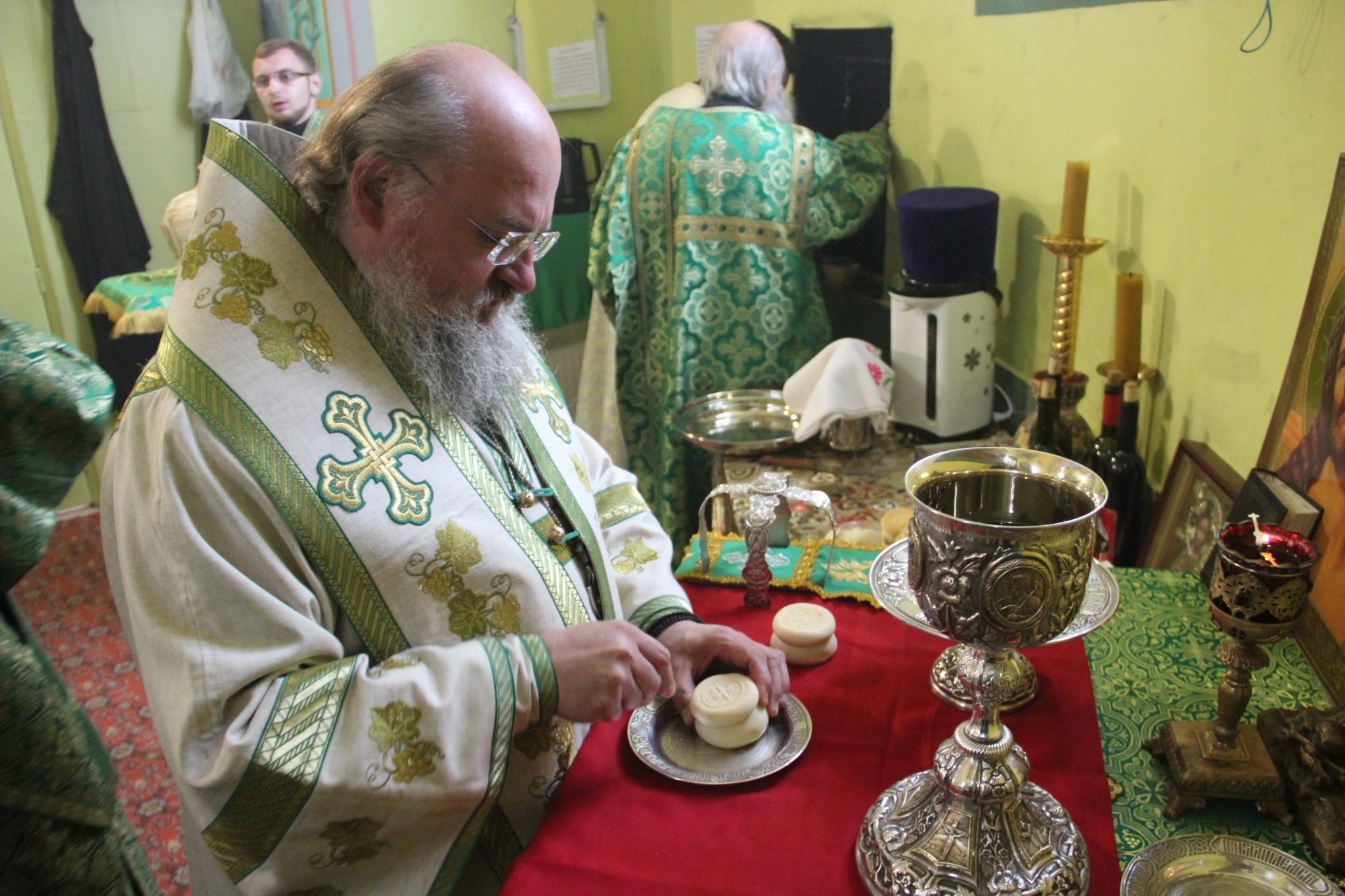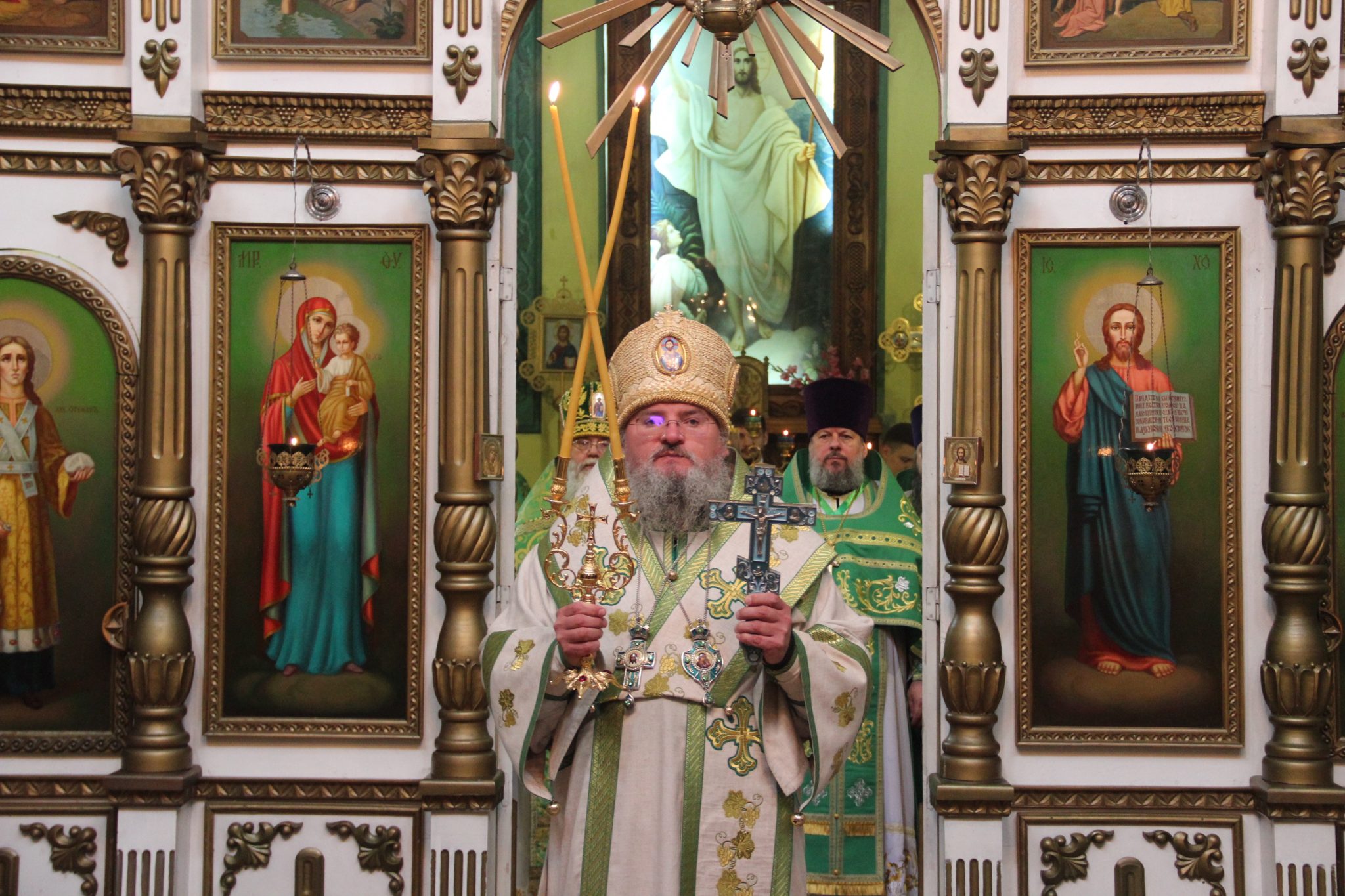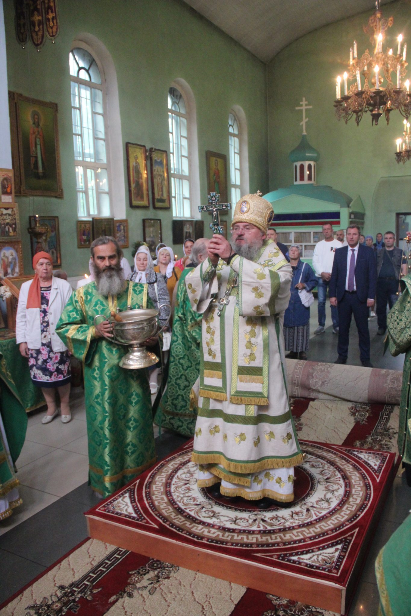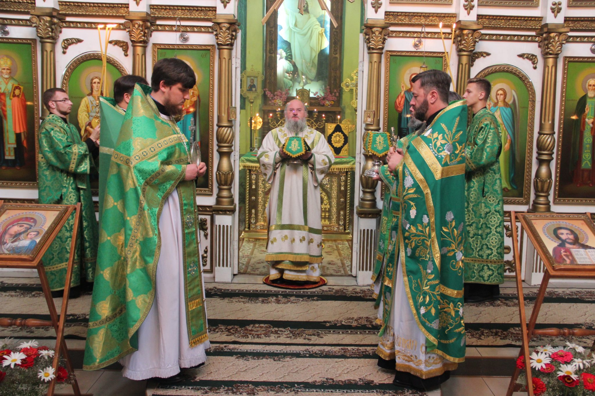 Преосвященному владыке сослужили: настоятель храма, благочинный округа протоиерей Василий Биляк, протоиерей Алексий Жиганов – духовник епархии, протоиерей Михаил Карпенко, протоиерей Антоний Хатунцев, иерей Георгий Красной, иерей Иоанн Майоров, диакон Евгений Васильев, диакон Андрей Соколов и иеродиакон Виталий (Павленко).