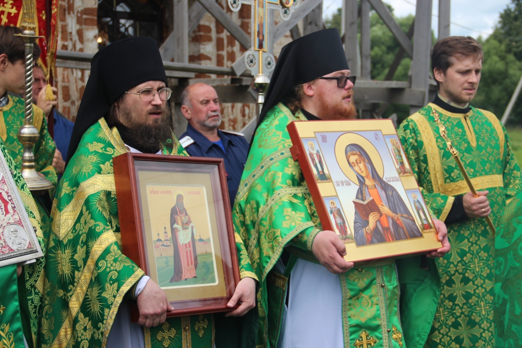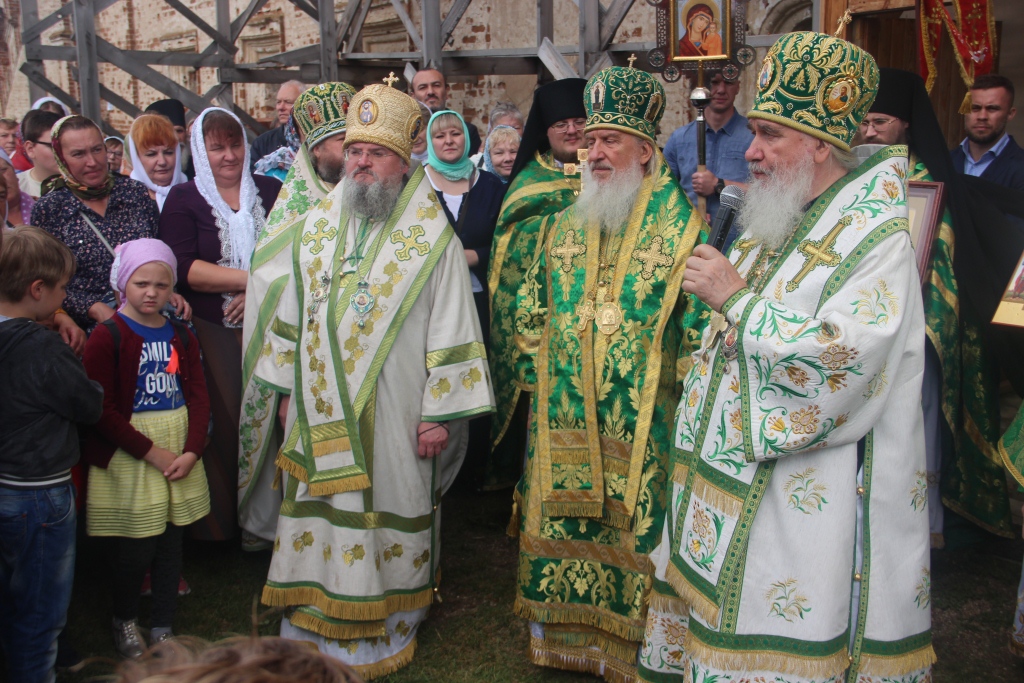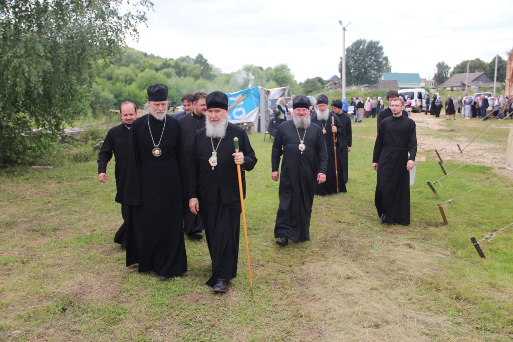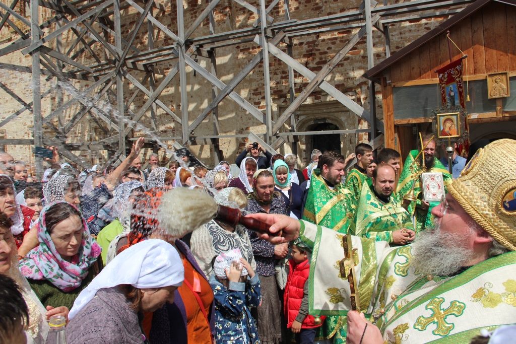 После окончании Литургии был совершен крестный ход вокруг храма с молебным пением. По окончании богослужения архипастыри ознокомились с ходом востоновительных работ. Осмотрели храм и прилегающую территорию, посетили музей, поздравили присутствующих богомольцев с торжественным днем.