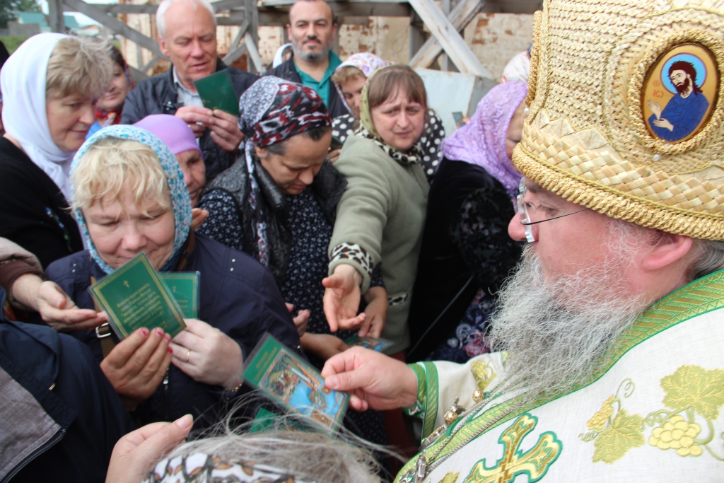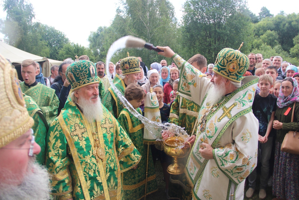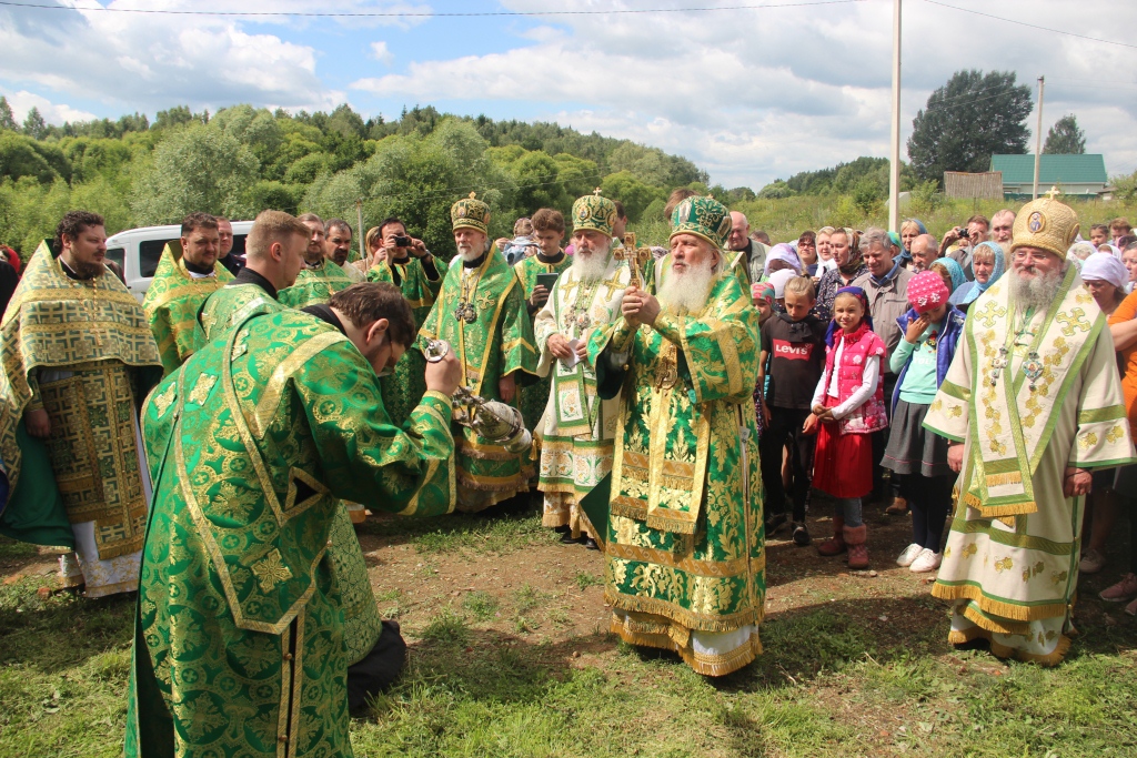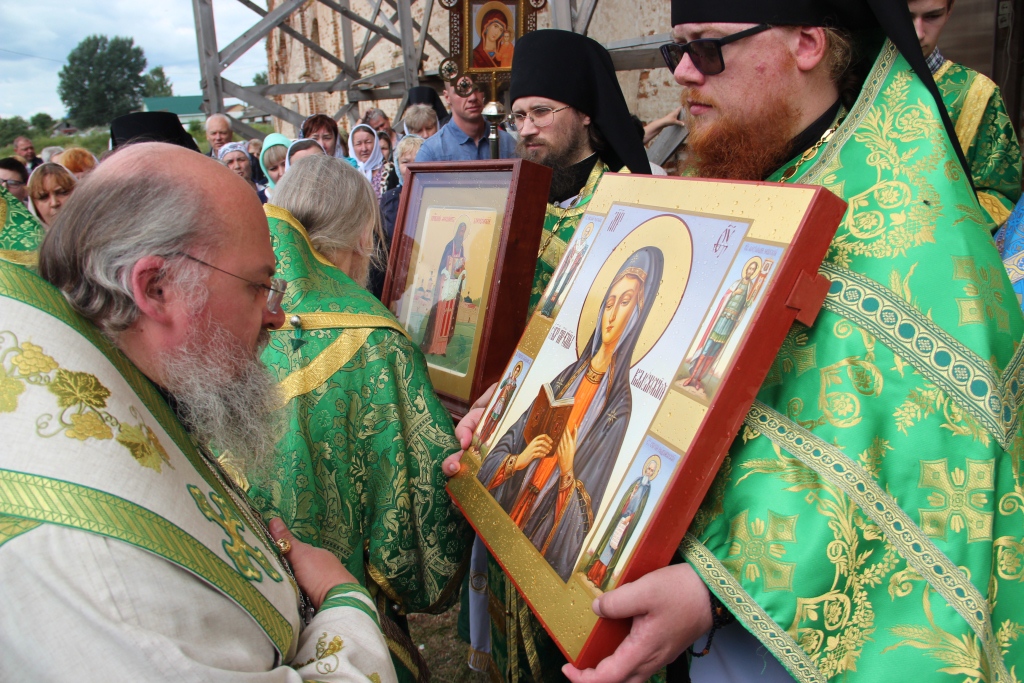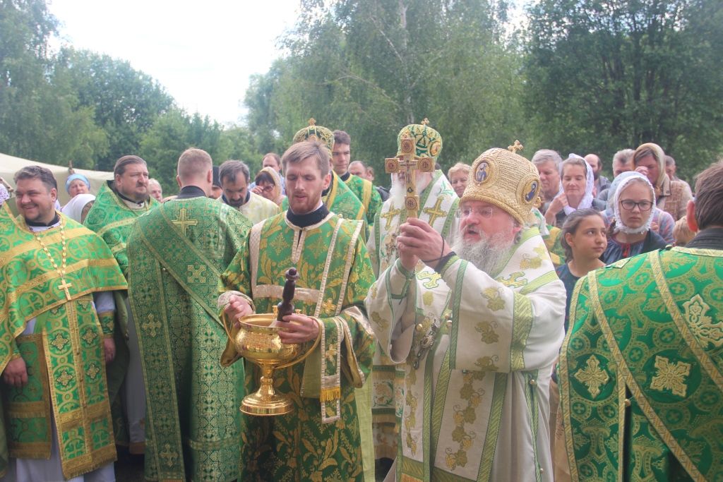 После окончании Литургии был совершен крестный ход вокруг храма с молебным пением. По окончании богослужения архипастыри ознокомились с ходом востоновительных работ. Осмотрели храм и прилегающую территорию, посетили музей, поздравили присутствующих богомольцев с торжественным днем.