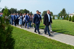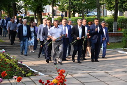 Начался осмотр с воинского мемориала «Братское кладбище», открытого в 1955 году. Здесь похоронены советские воины, чьи останки были собраны на территории района. Анатолий Артамонов и участники поездки почтили память погибших воинов, возложили цветы.