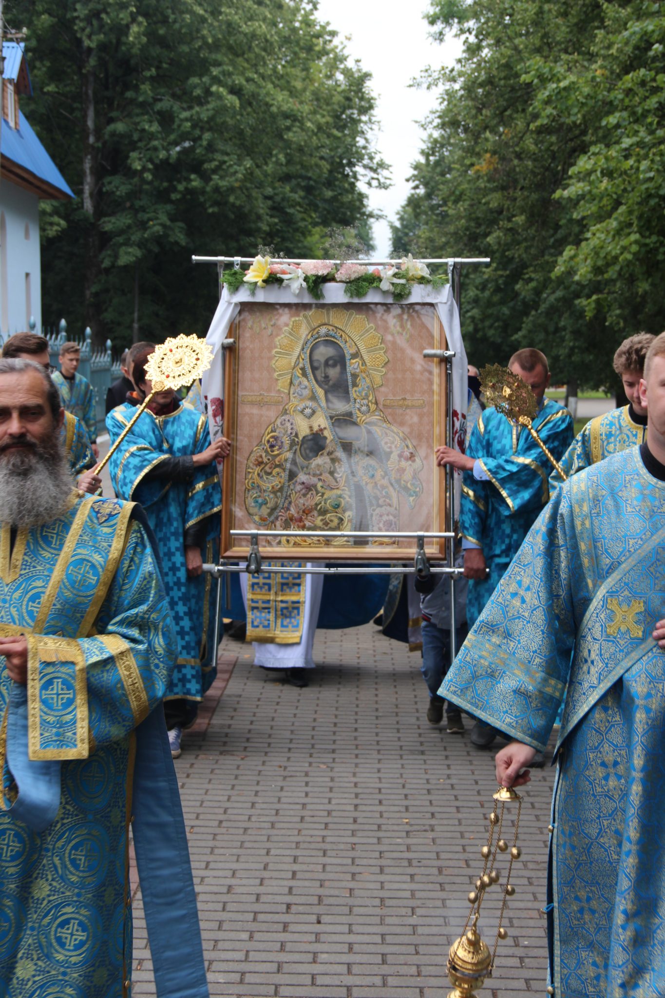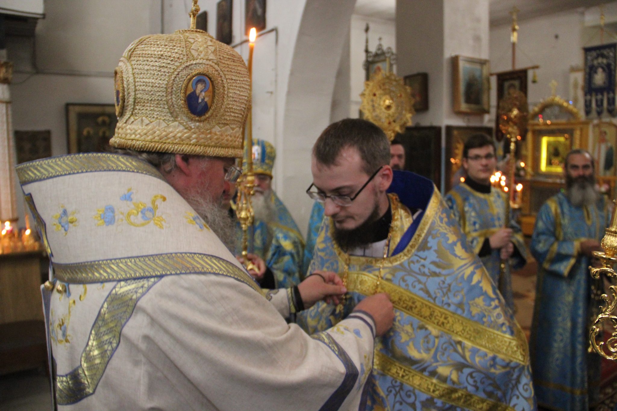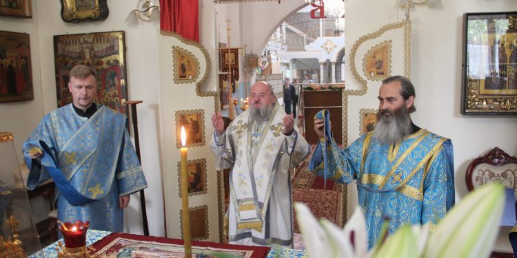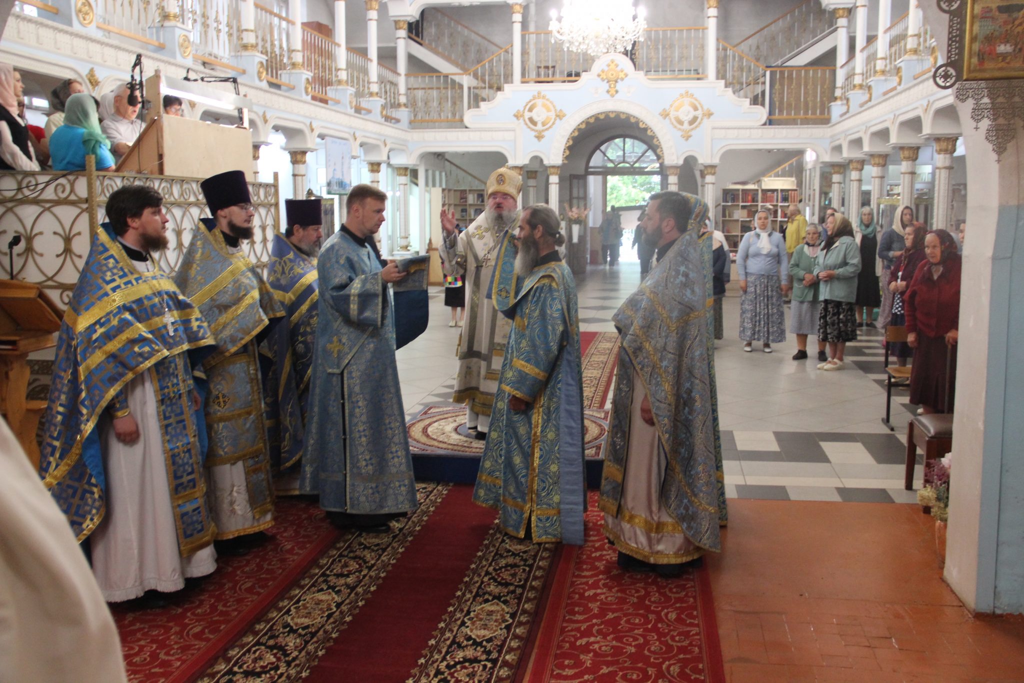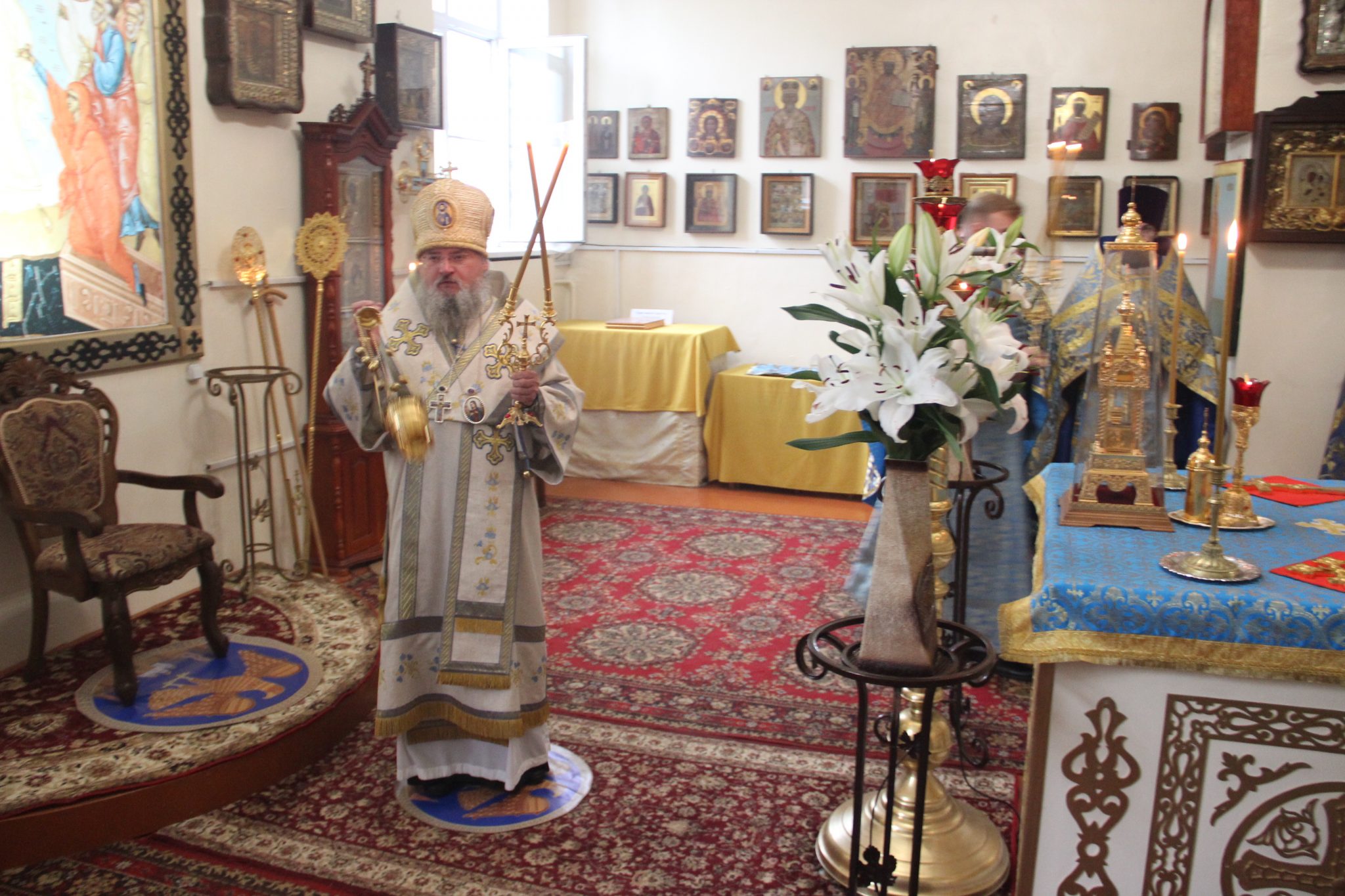 По отпусте литургии священнослужители совершили славление Божией Матери, а затем владыка обратился к богомольцам к архипастырским словом.