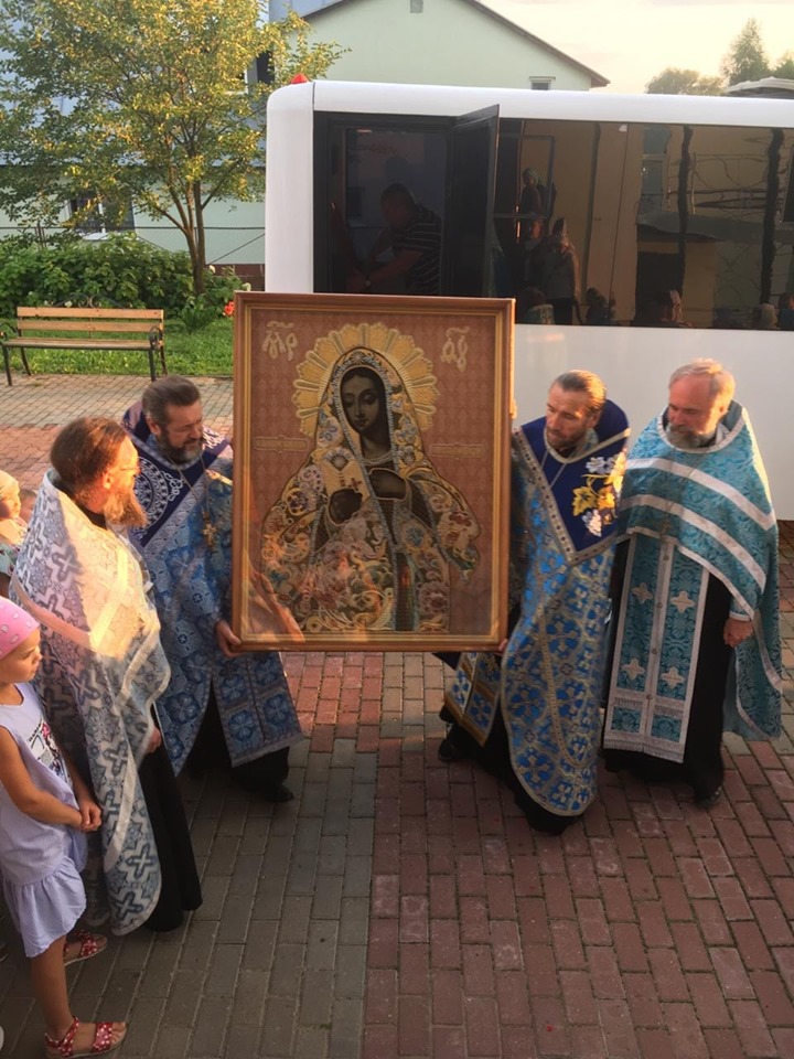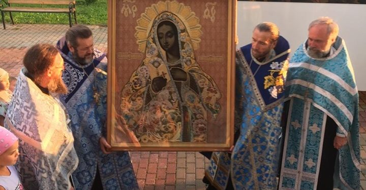 Воскресным вечером 28 июля в храме святых бессребреников Косьмы и Дамиана поселка Думиничи встретили крестный с чудотворным образом Божией Матери «Калужская» традиционно ежегодно проходящий по Калужской земле по благословению Главы Калужской Митрополии митрополита Калужского и Боровского Климента.