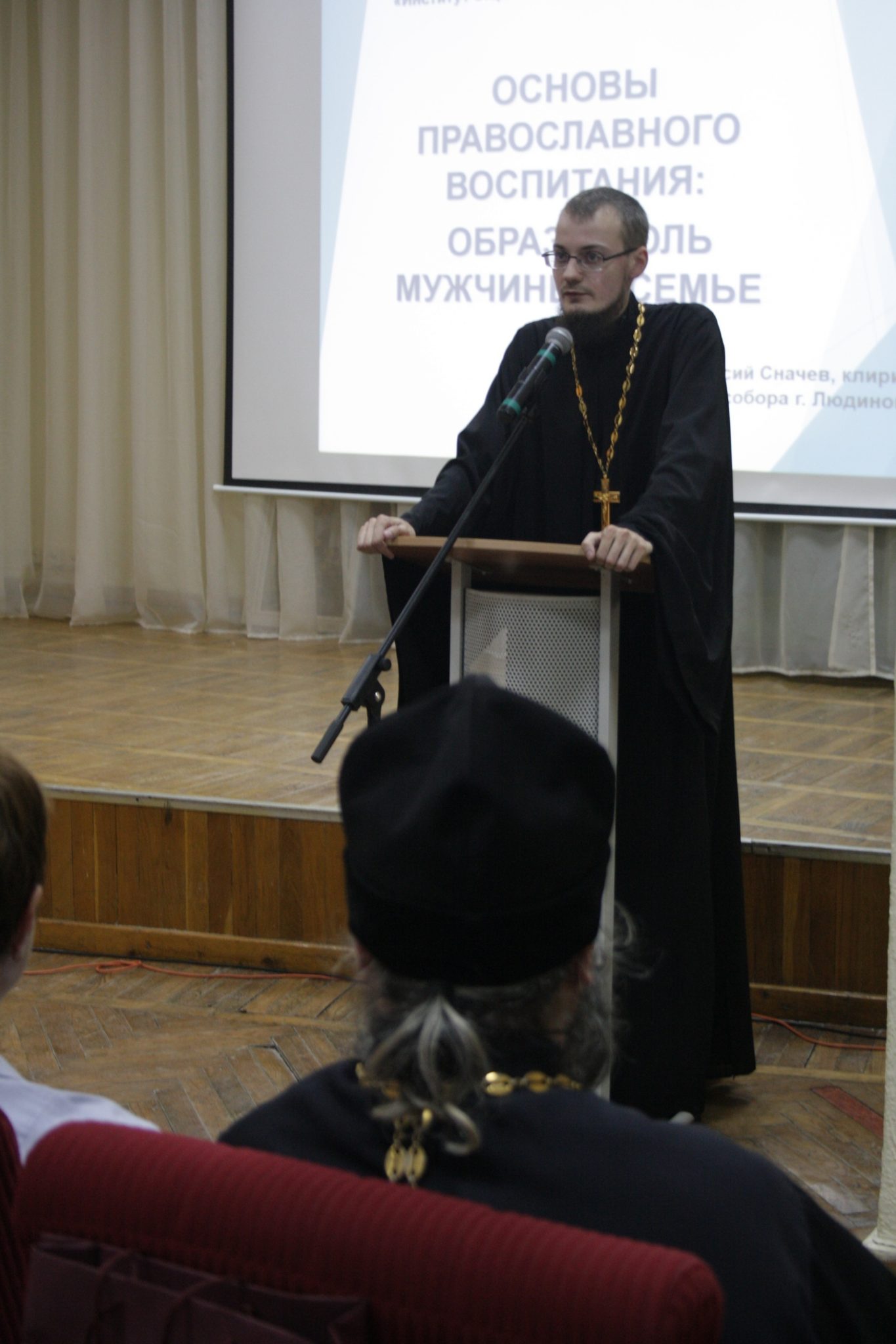 Именно этим проблемам были посвящены выступления на конференции. Докладчики Белугин А.А., директор Войловской основной школы, иерей Алексий Сначев, клирик Казанского собора, Абраменкова В.В., психолог, профессор Российской Академии наук (г. Москва), Кирпикин Т.Н., председатель совета отцов Мятлевской средней школы (Износковский район Калужской области) яркими примерами, научными и жизненными иллюстрациями старались донести эти важные мысли участникам конференции.