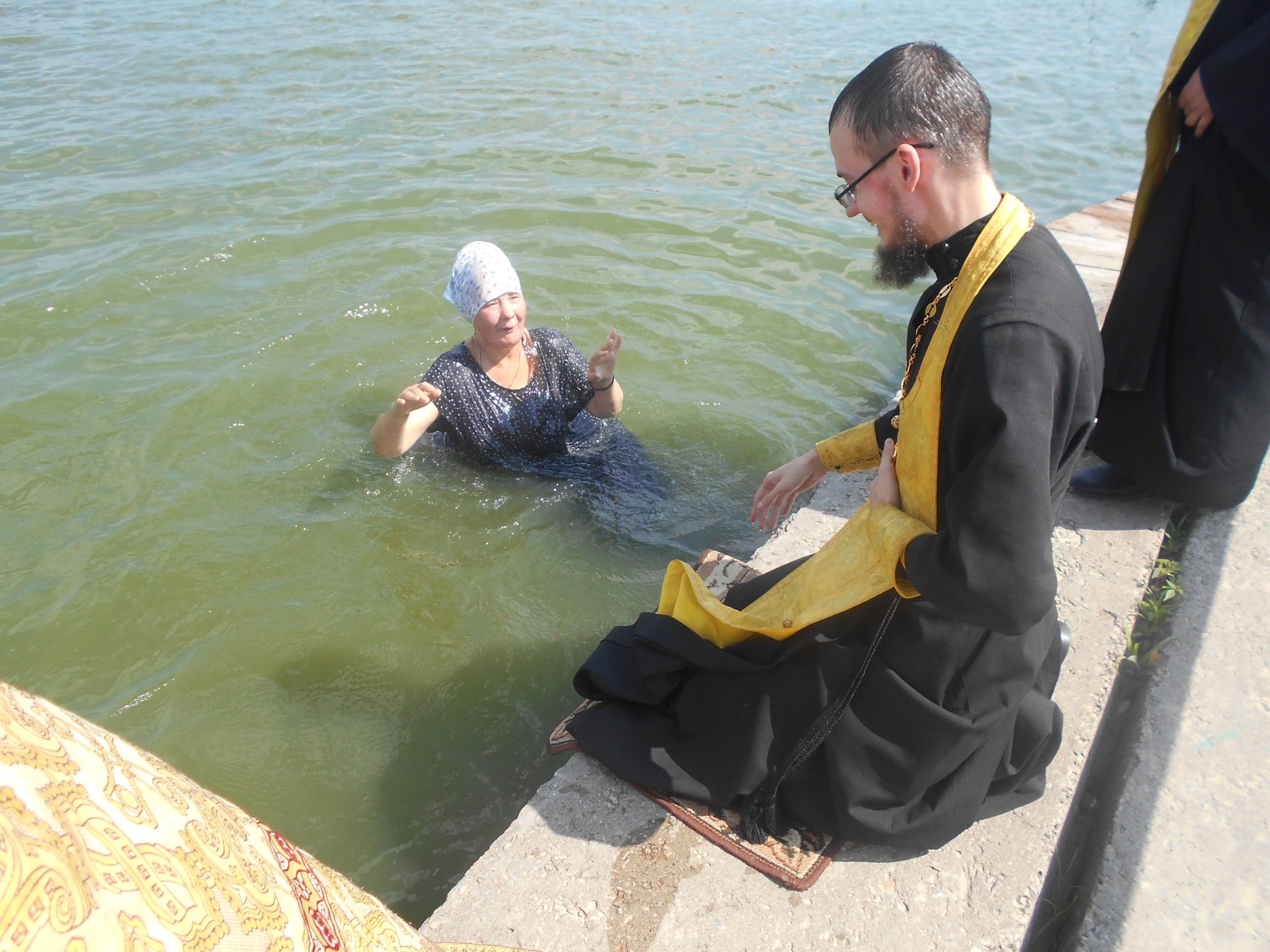 Всех желающих священники троекратно погружали в освященное озеро.