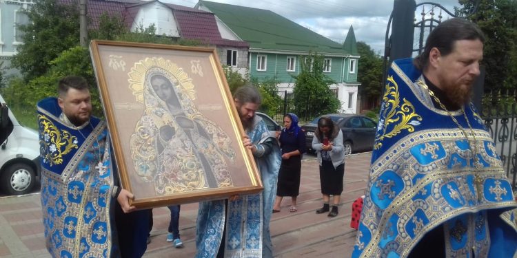 29 июля в 10 часов духовенство Сухиничского благочиния и прихожане храма в честь Смоленской иконы Божией Матери в городе Сухиничи  встретили крестный  ход с чудотворным образом Божией Матери «Калужская» традиционно ежегодно проходящий по Калужской земле  по благословению Главы Калужской Митрополии митрополита Калужского и Боровского Климента.