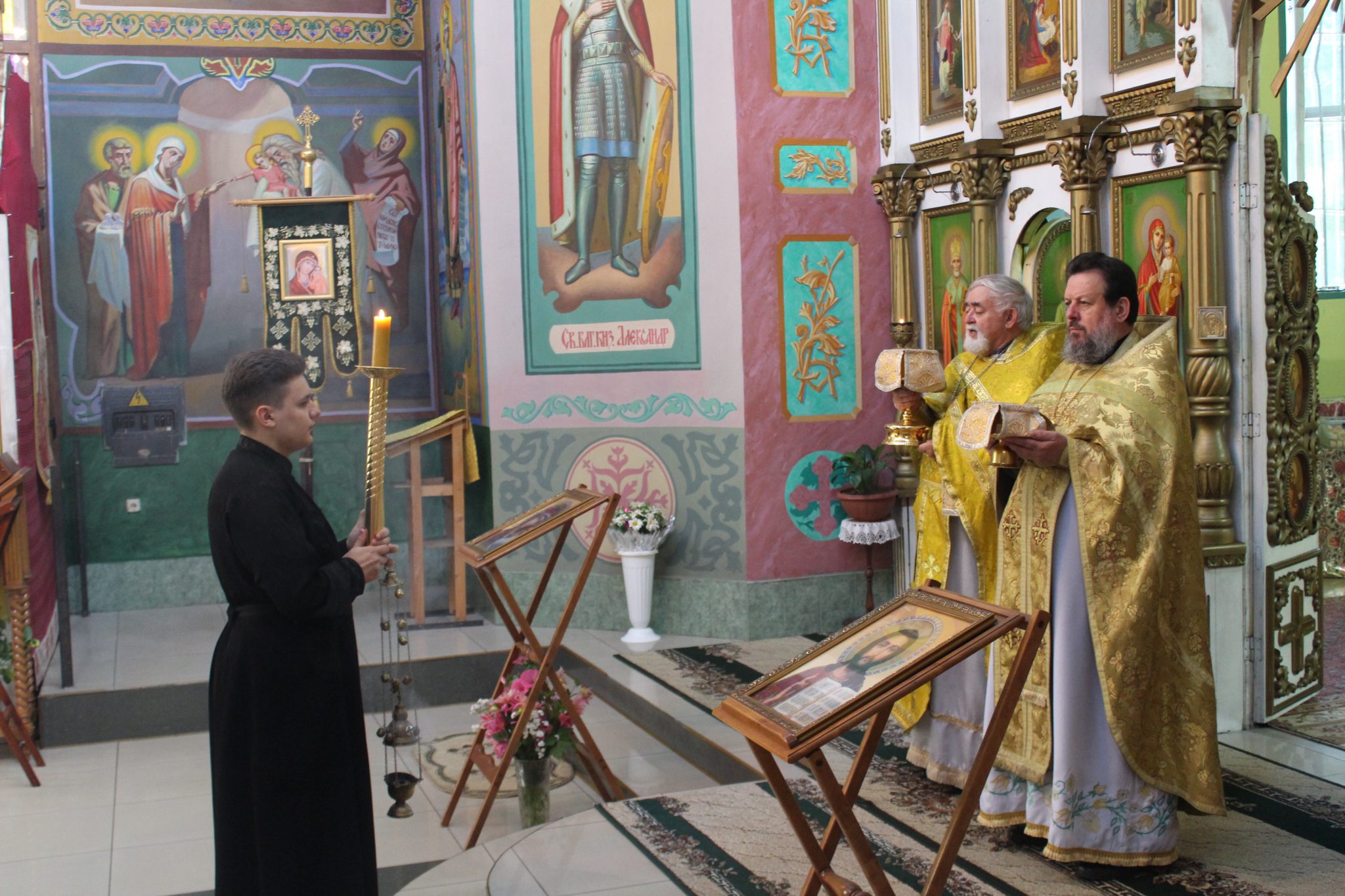 По окончании Божественной литургии настоятелем храма протоиереем Василием Биляк был совершен молебен по особому чину «Последование молебного пения в праздник святого равноапостольного великого князя Владимира — воспоминания Крещения Руси».