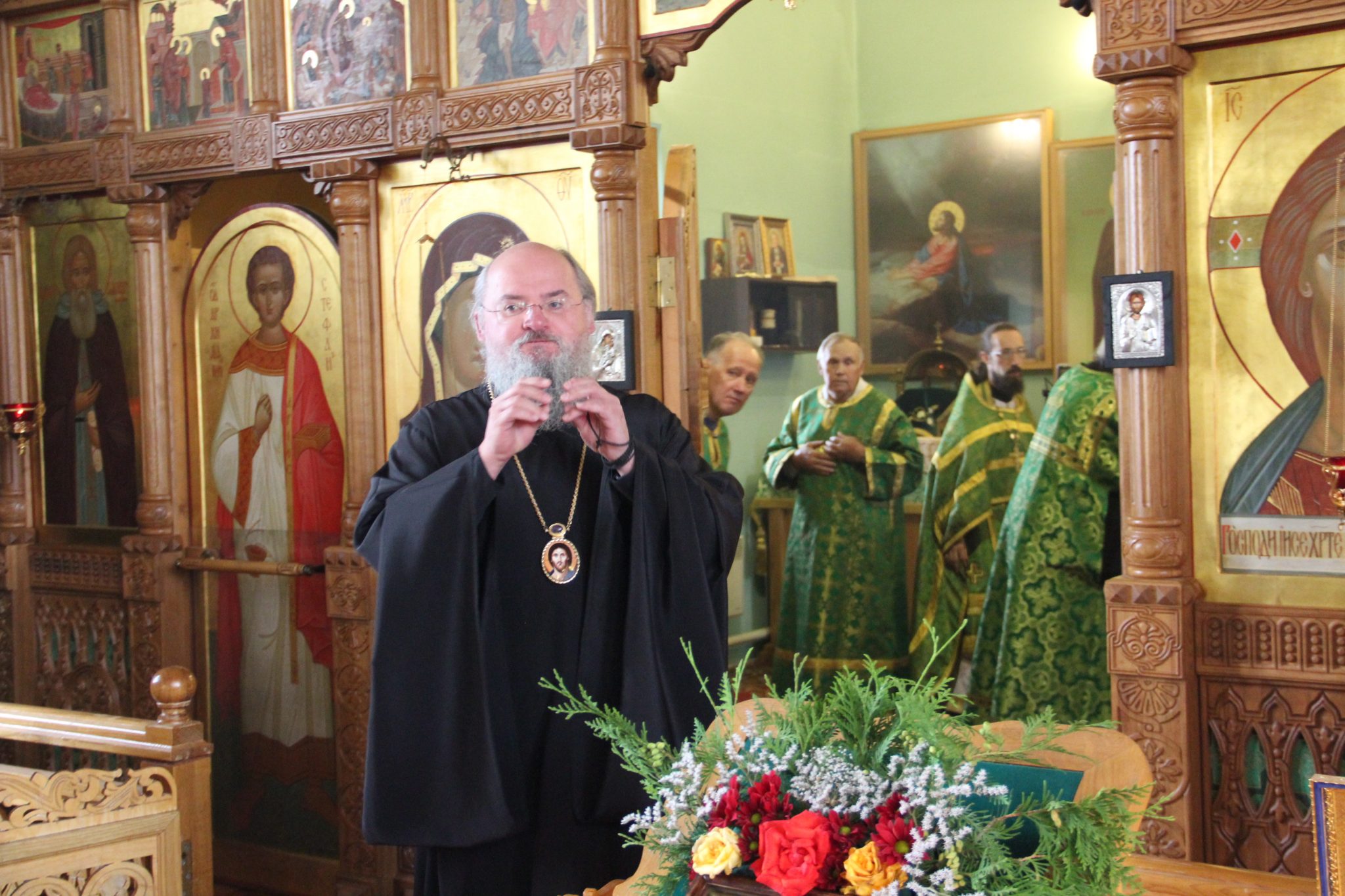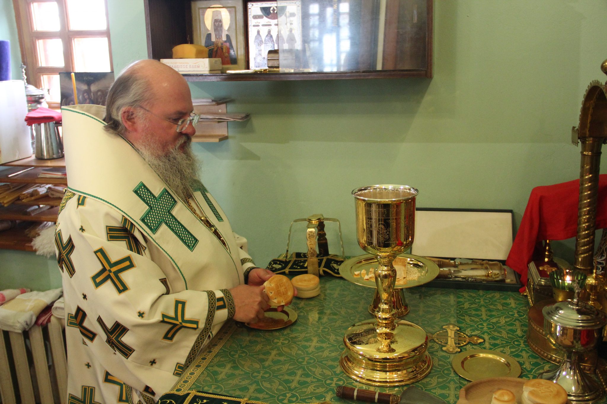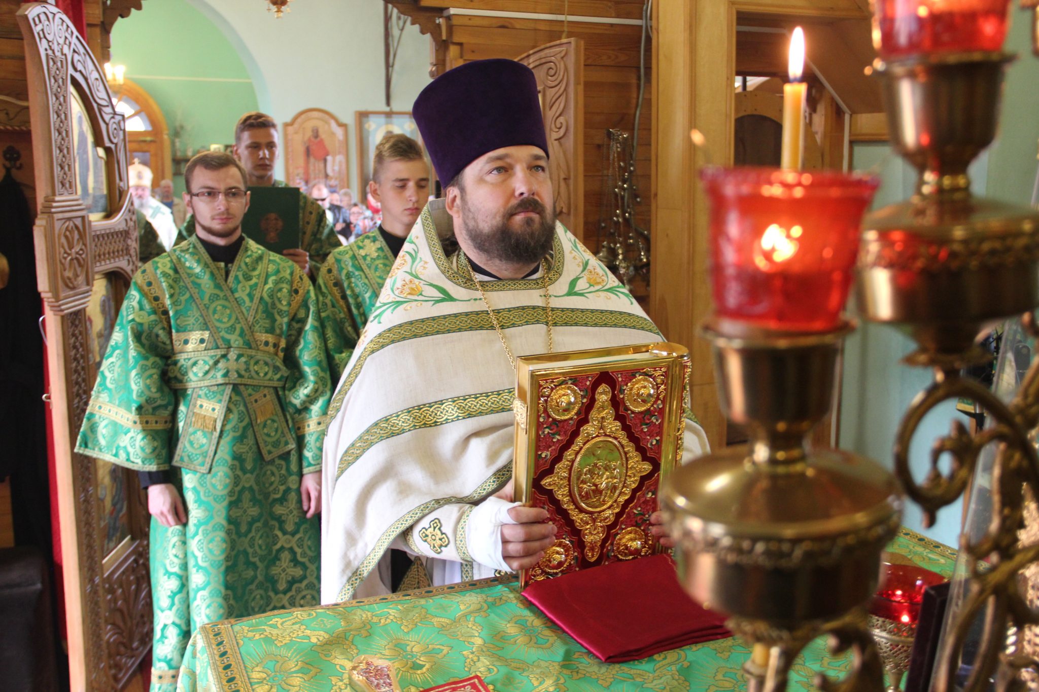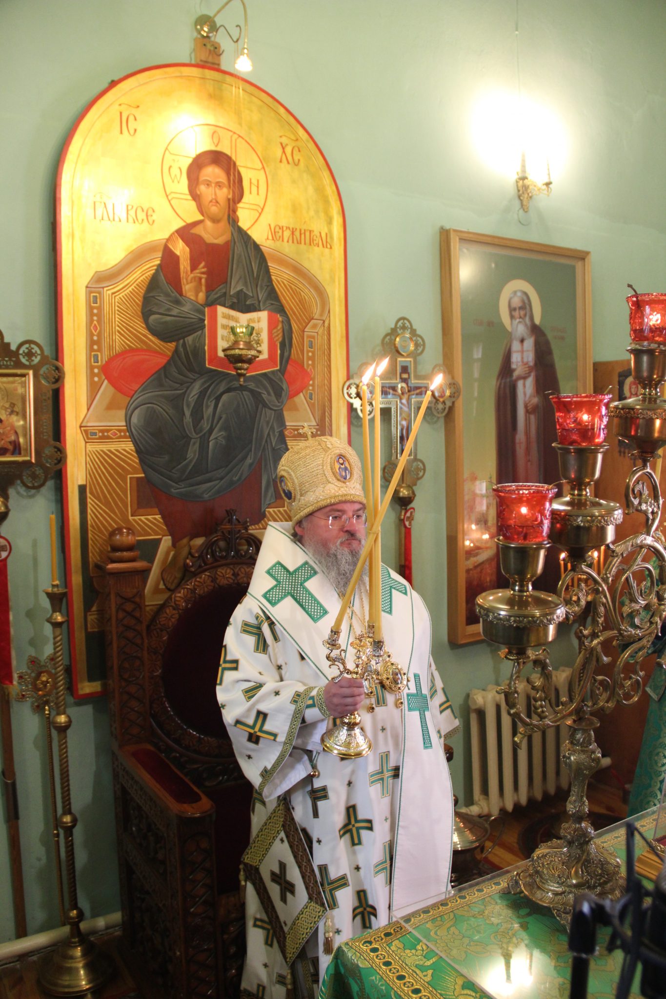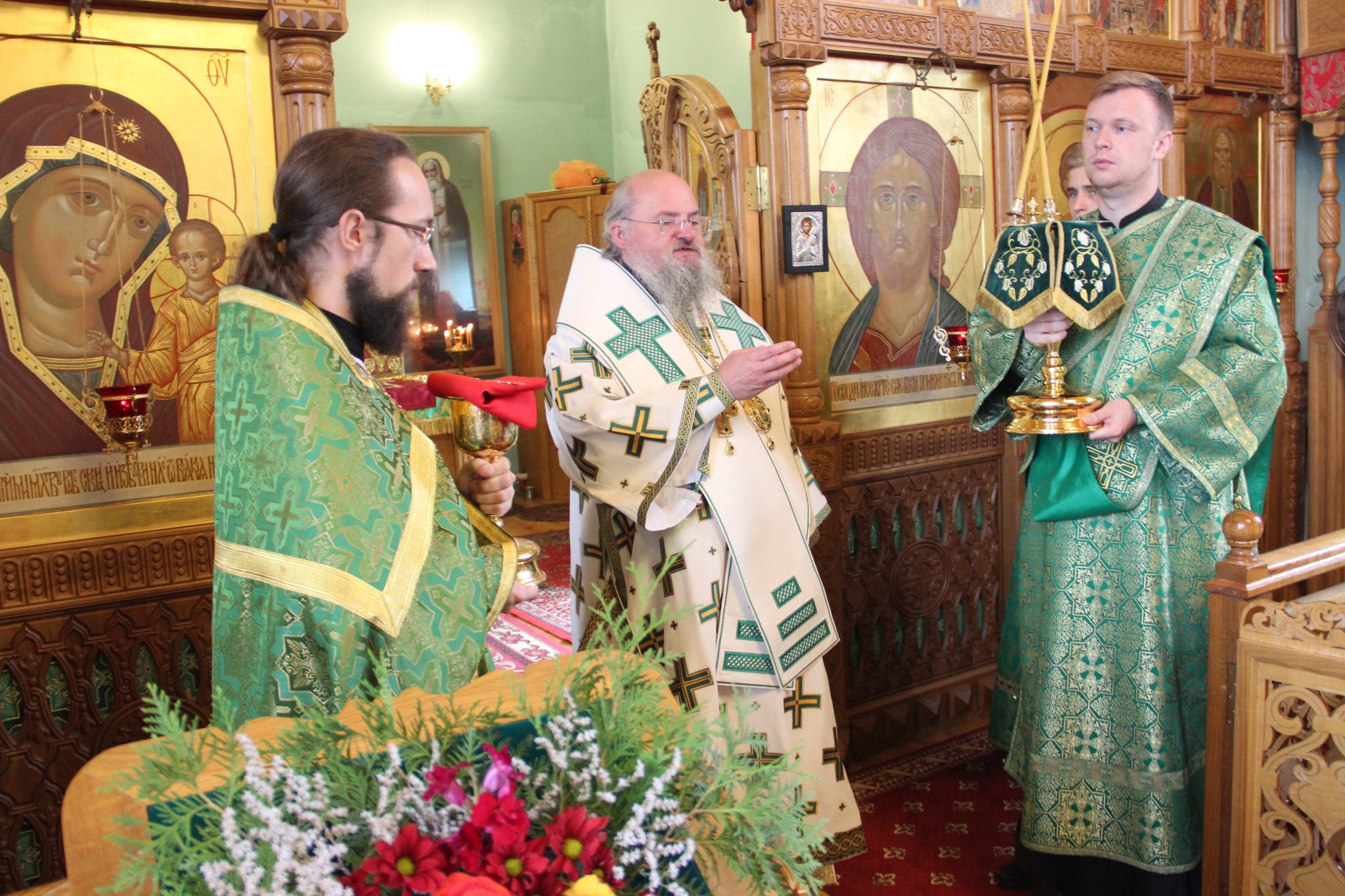Преосвященному владыке сослужили: настоятель храма протоиерей Владимир Бахаев, иерей Антоний Лунин, иерей Алексий Боков, диакон Евгений Ковригин и иеродиакон Виталий (Павленко).