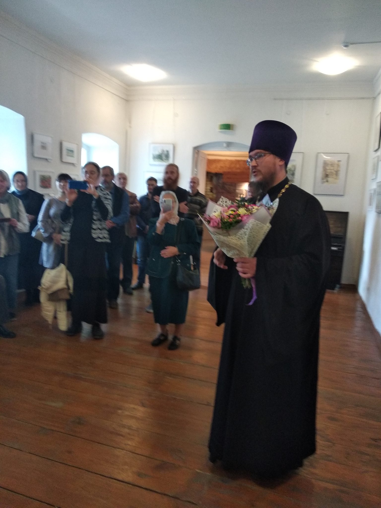На открытие выставки присутствовали  священники Козельской епархии иерей Дионисий Куваев и иерей  Сергий Барыкин. Отец Дионисий обратился с приветственным словом и поздравлением матушку Магдалину с днём тезоименитства. Так же на выставке присутстововали жители и гости Козельска, иконописцы, журналисты, среди них известный православный журналист Борис Костенко.