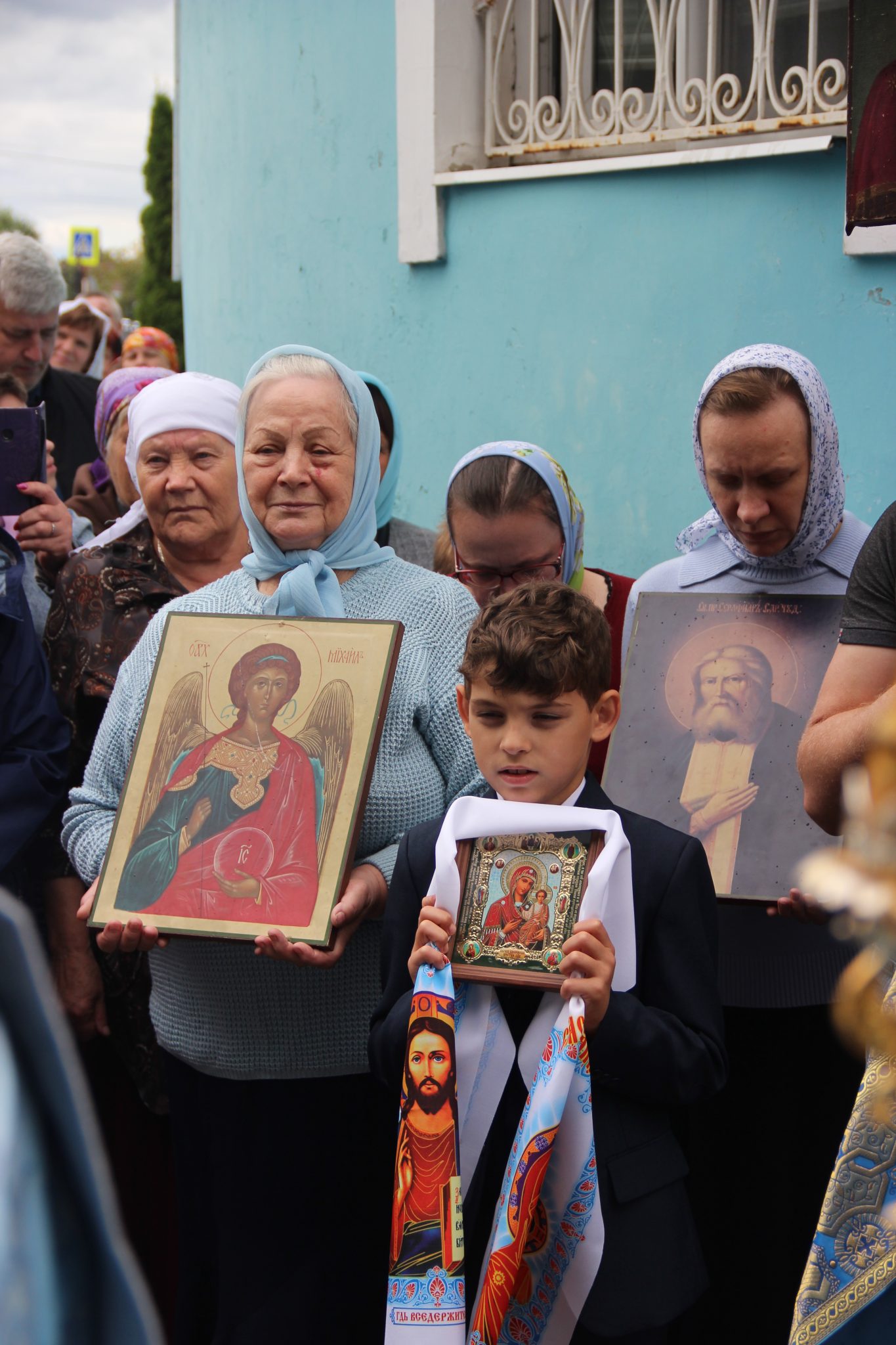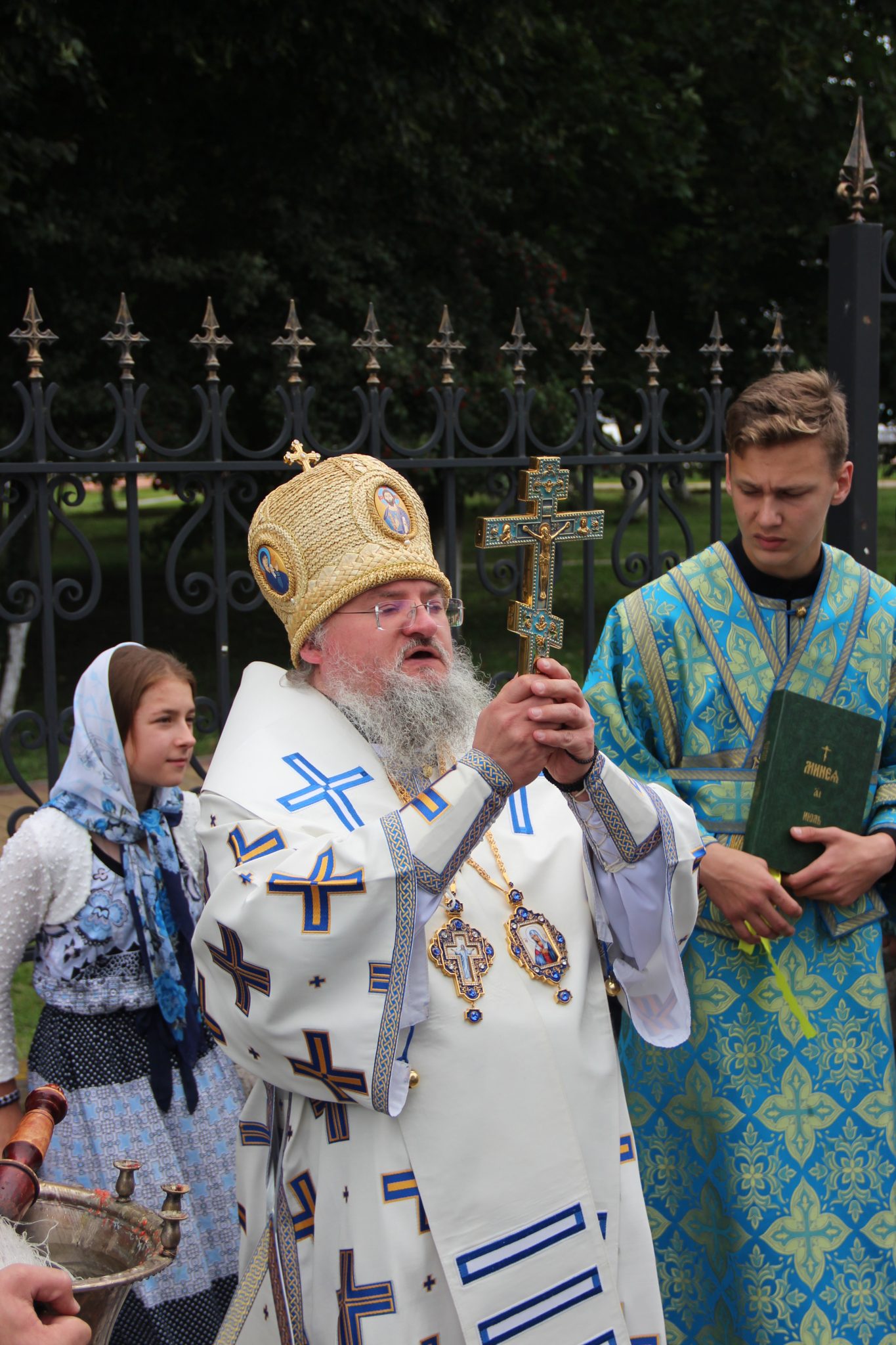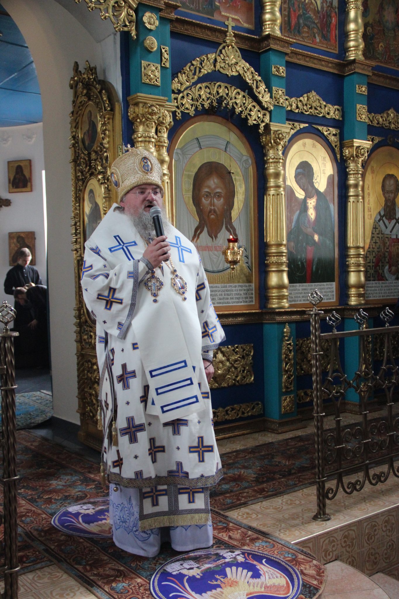 По отпусте литургии состоялся праздничный крестный ход вокруг храма, по окончании которого владыка обратился к богомольцам с архипастырским словом.