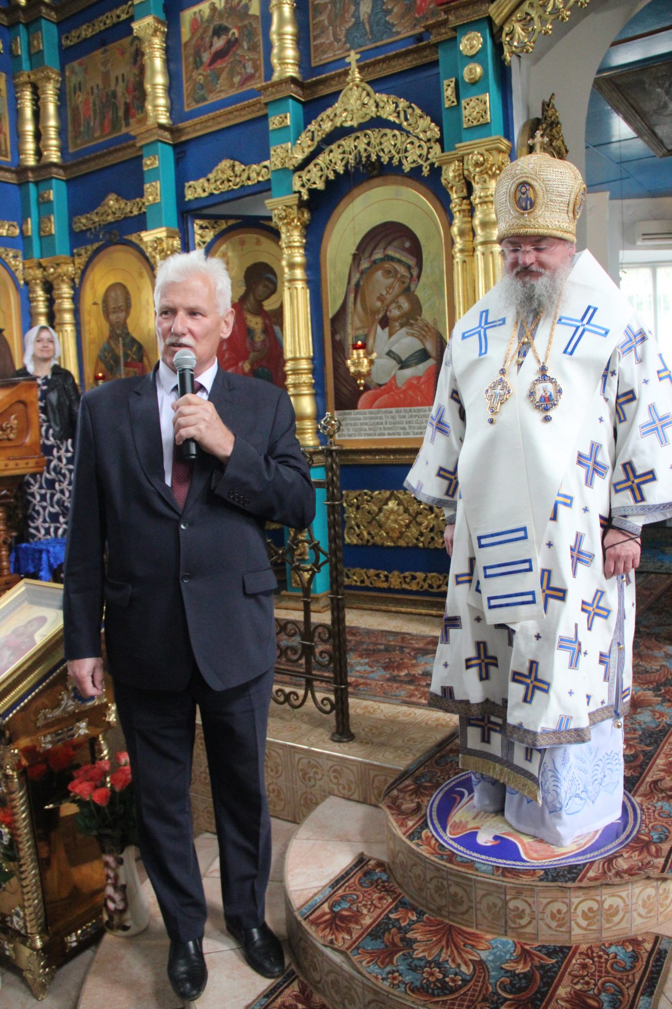 За литургией молились глава администрации Сухиничского района Александр Степанович Колесников и глава города Сухиничи Андрей Иванович Голиков.