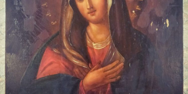 Однажды полотно было украдено из церкви, но грабителям не удалось унести икону- мешок с полотном был брошен на паперти храма.