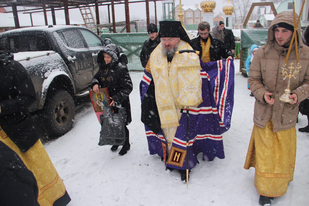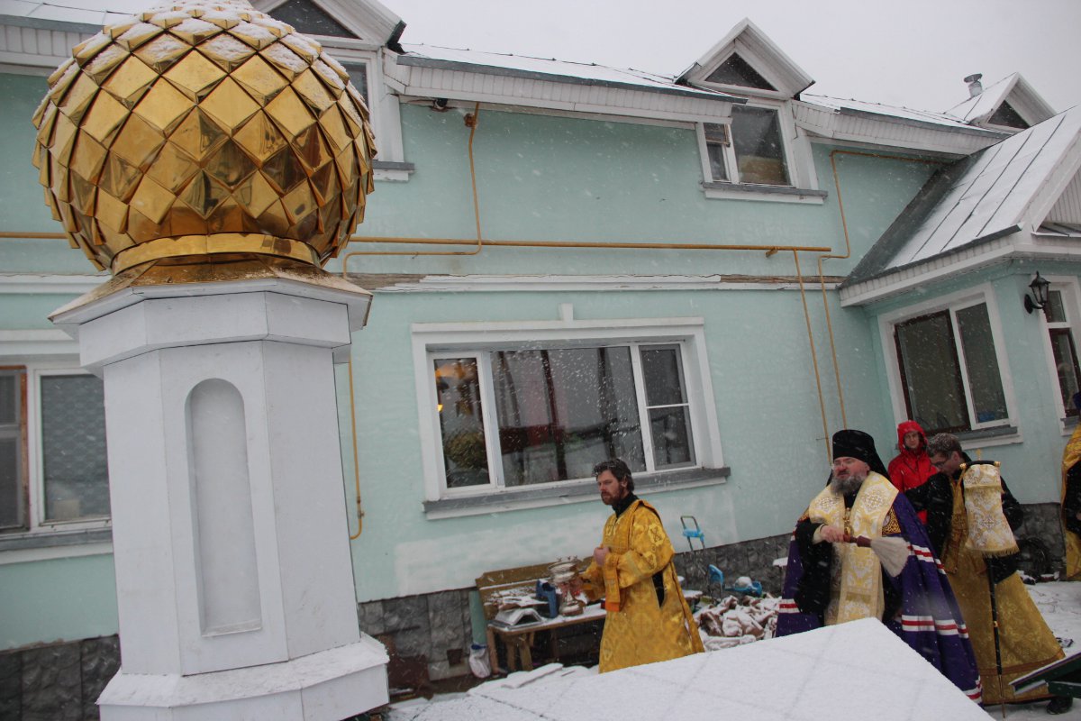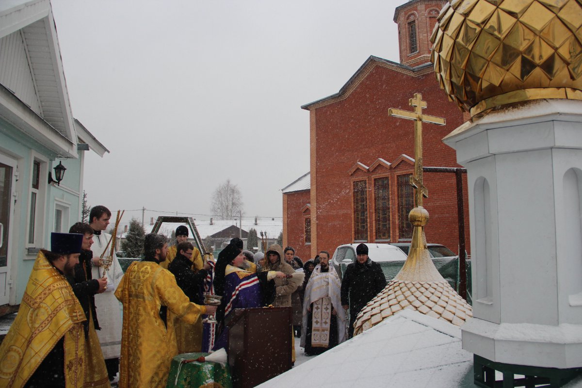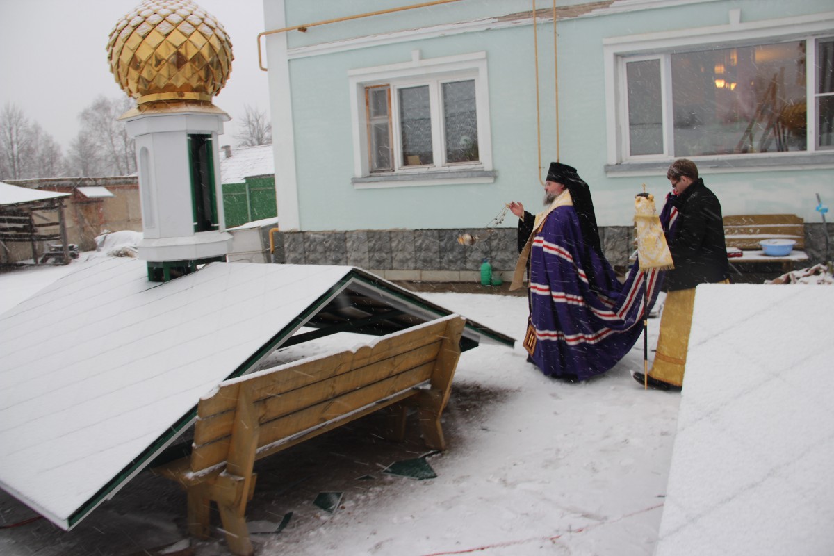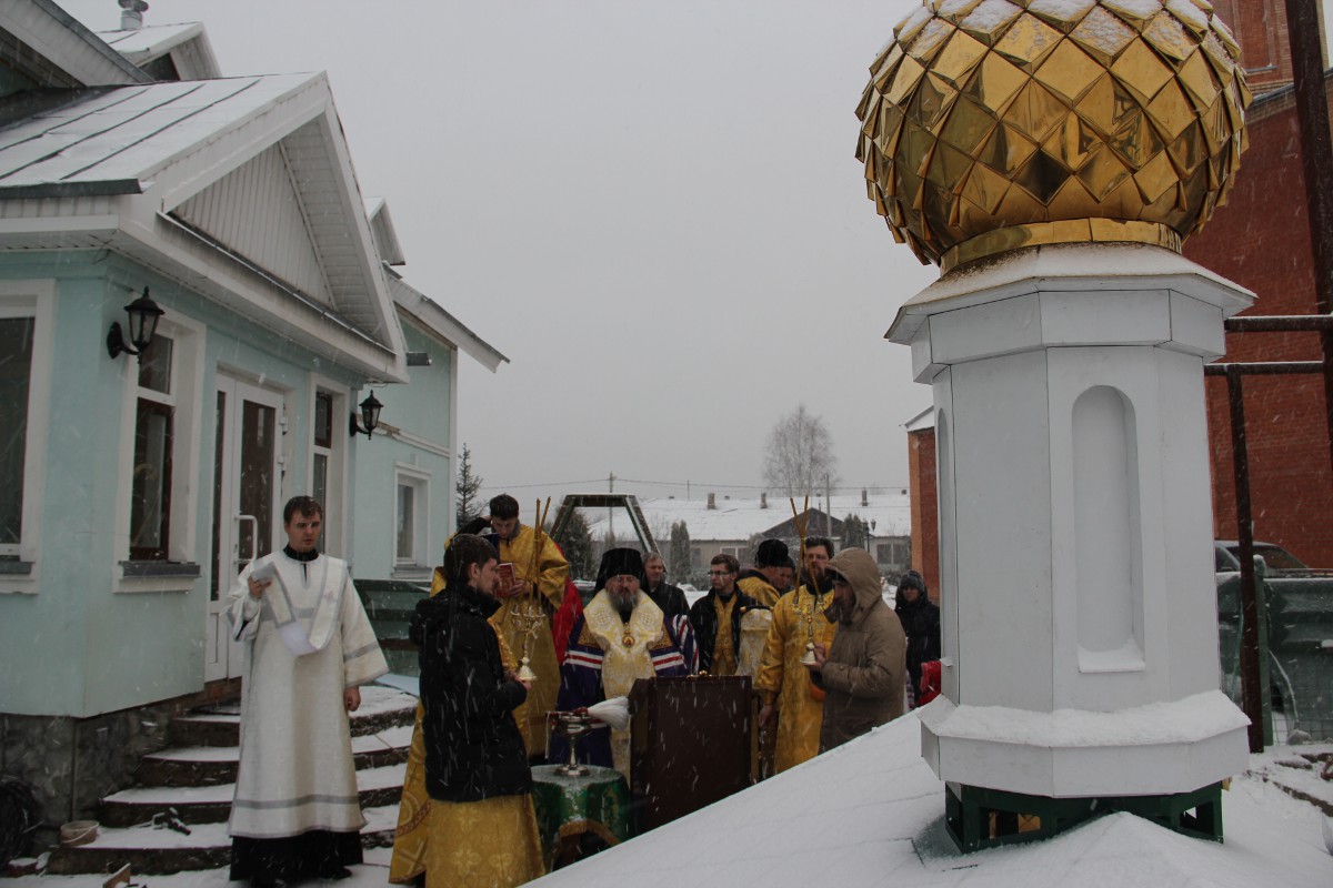 19 декабря в день памяти святителя Николая Чудотворца епископ Козельский и Людиновский Никита совершил освящение накупольных крестов и куполов для звонницы храма преподобного Серафима Саровского города Сосенского. Владыке сослужили настоятель, секретарь Козельской епархии протоиерей Владимир Бахаев и клирики храма.