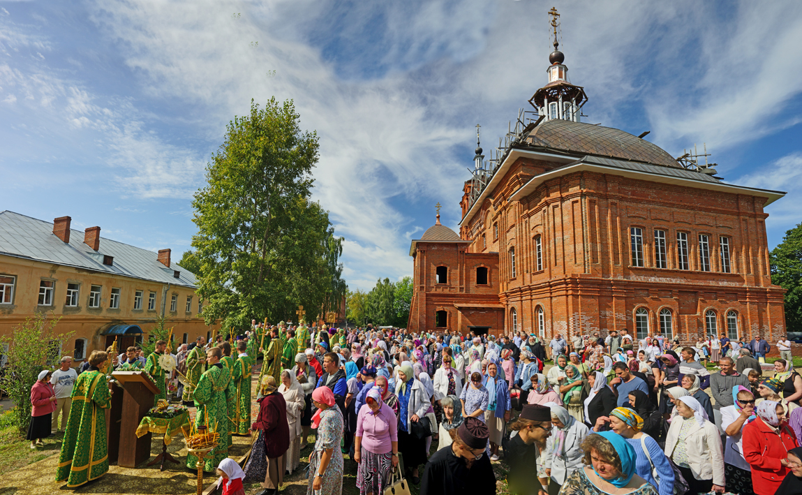 23 августа 2019 года, день памяти святого праведного Лаврентия, Калужского чудотворца, в Свято-Лаврентьевском мужском монастыре на месте упокоения честных мощей святого прошли праздничные богослужения.