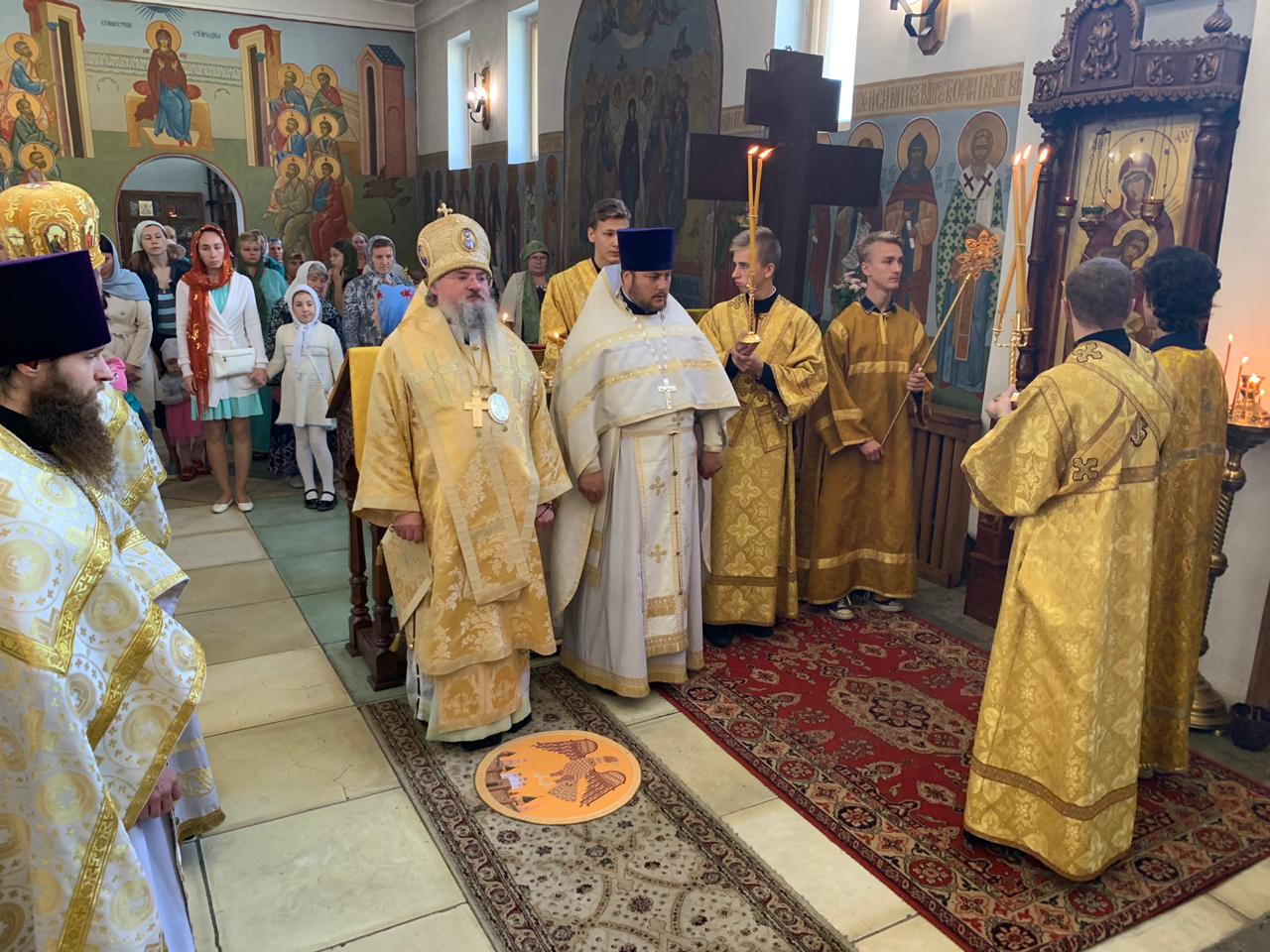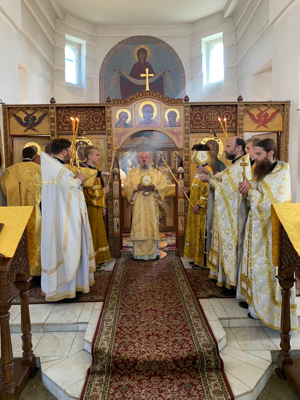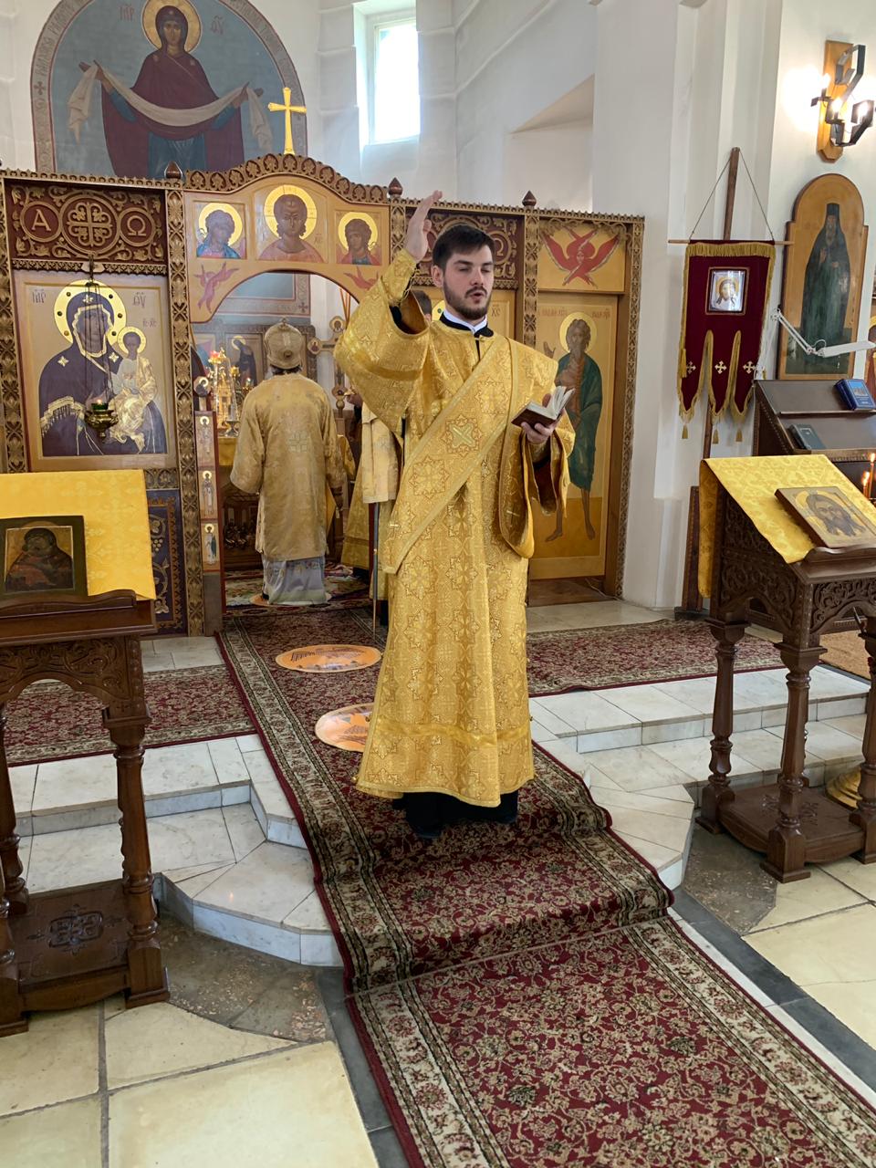 Арxипастырю сослужили: настоятель xрама протоиерей Константин Гипп, протоиерей Антоний Xатунцев, иерей Алексий Ефименков, диакон Евгений Василией и иеродиакон Виталий (Павленко).
