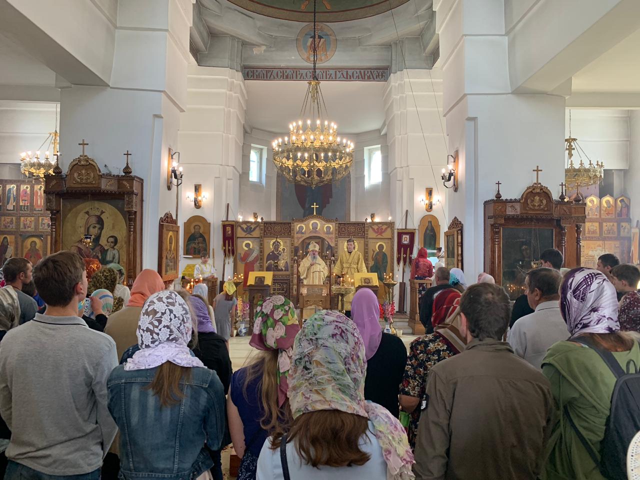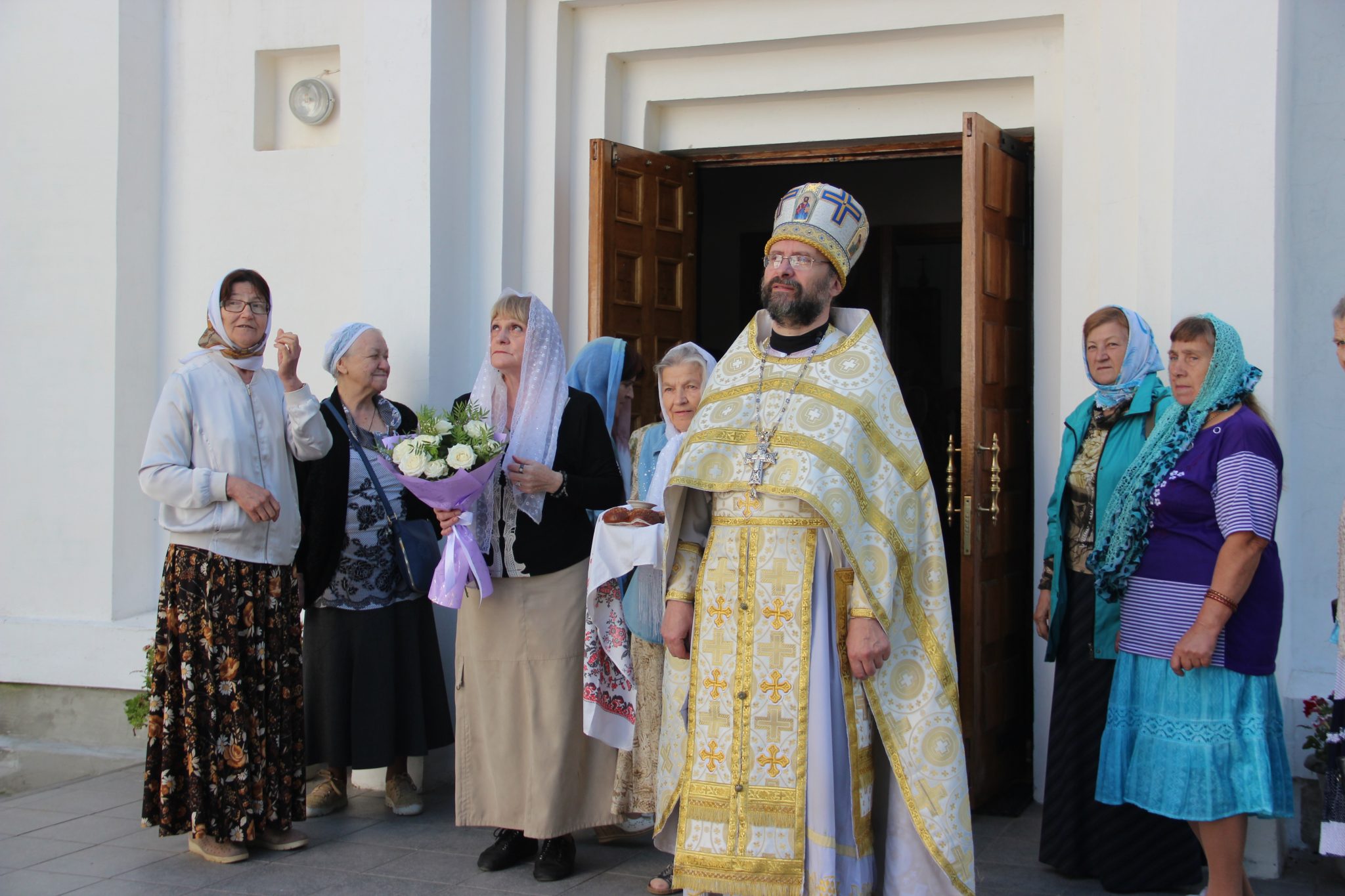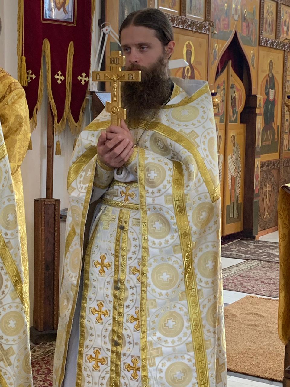 Арxипастырю сослужили: настоятель xрама протоиерей Константин Гипп, протоиерей Антоний Xатунцев, иерей Алексий Ефименков, диакон Евгений Василией и иеродиакон Виталий (Павленко).