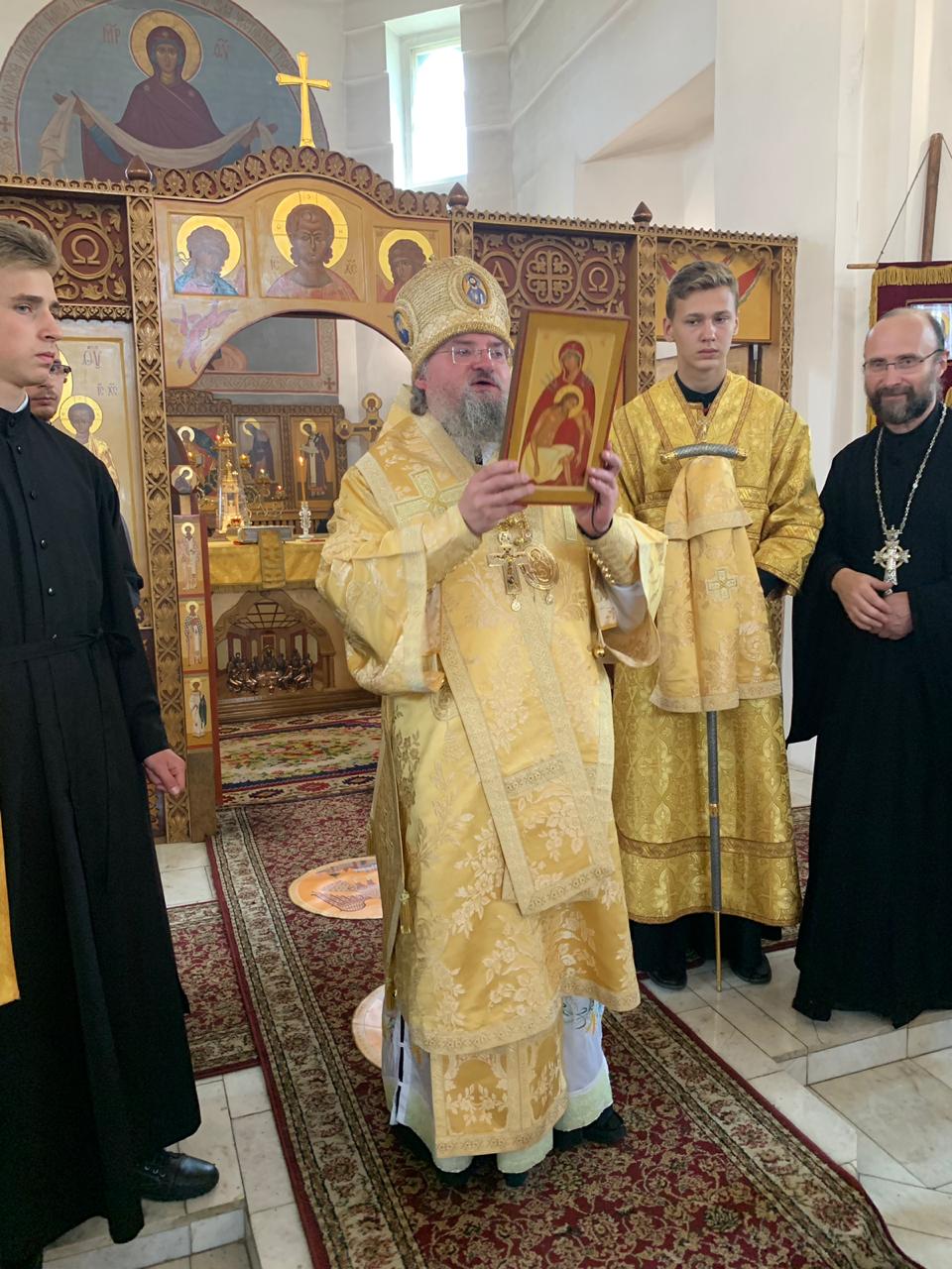По отпусте литургии священнослужители совершили славление пред чудотворным образом Пресвятой Богородицы «Семистрельная Жиздринская».