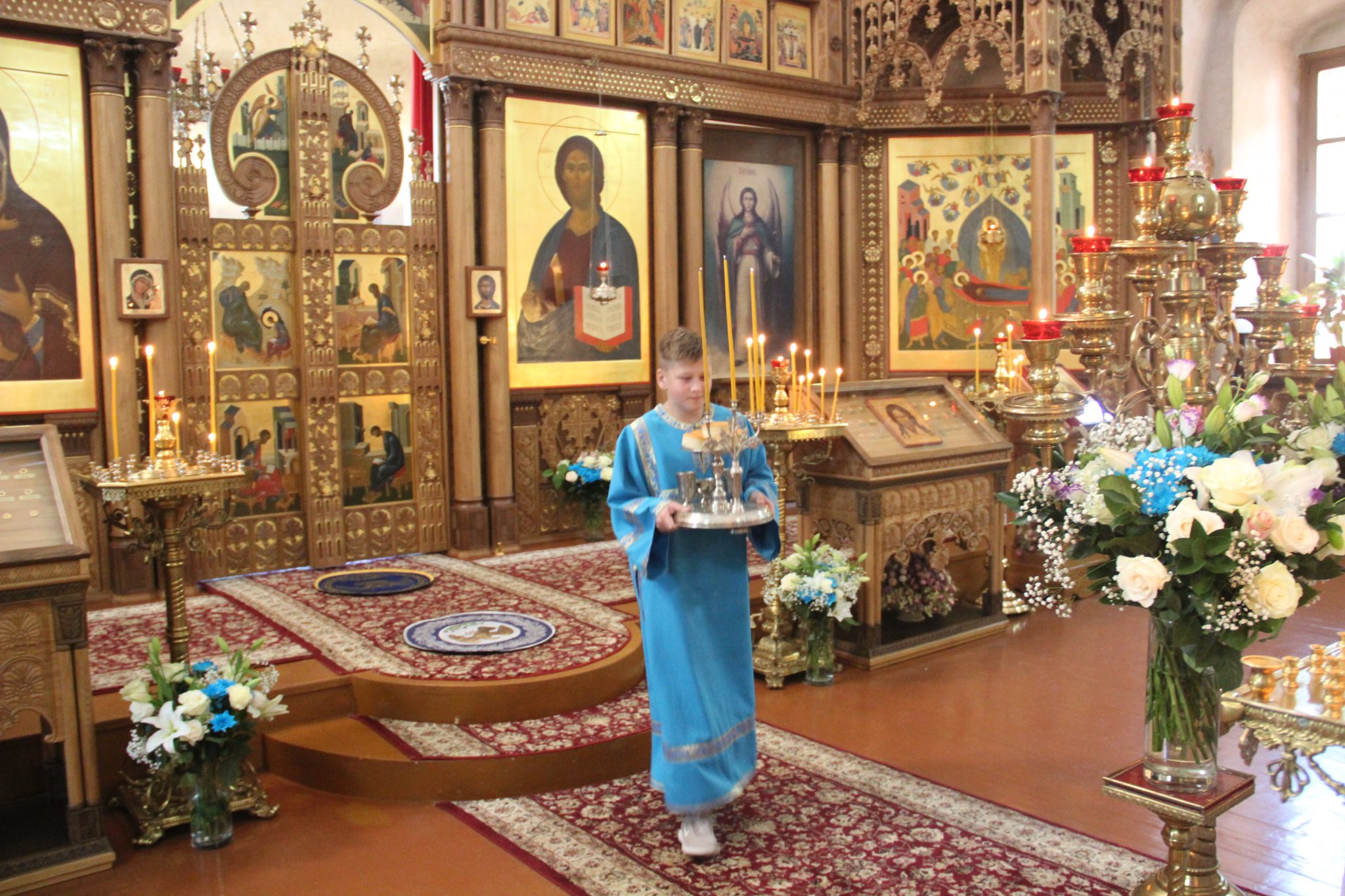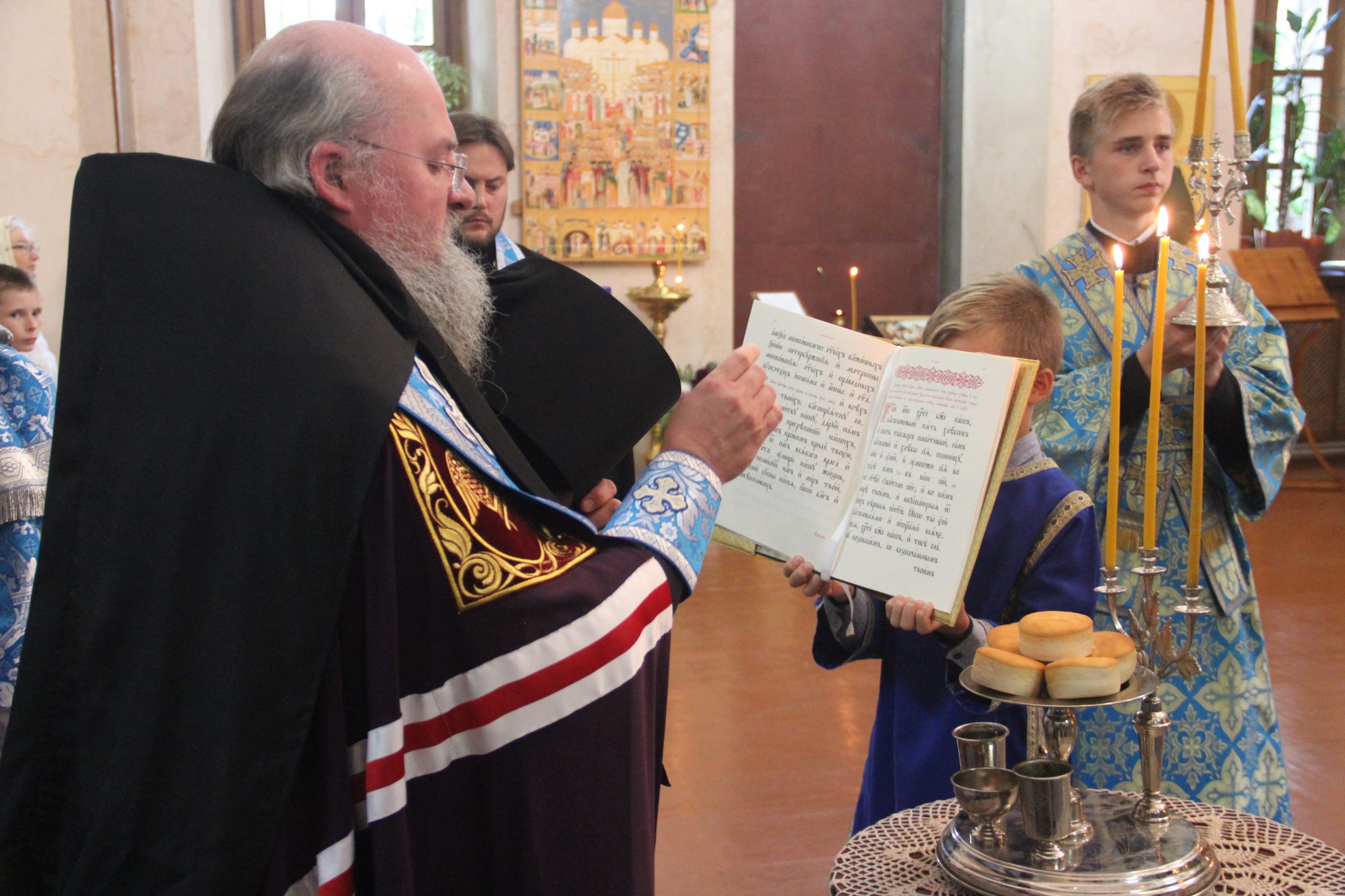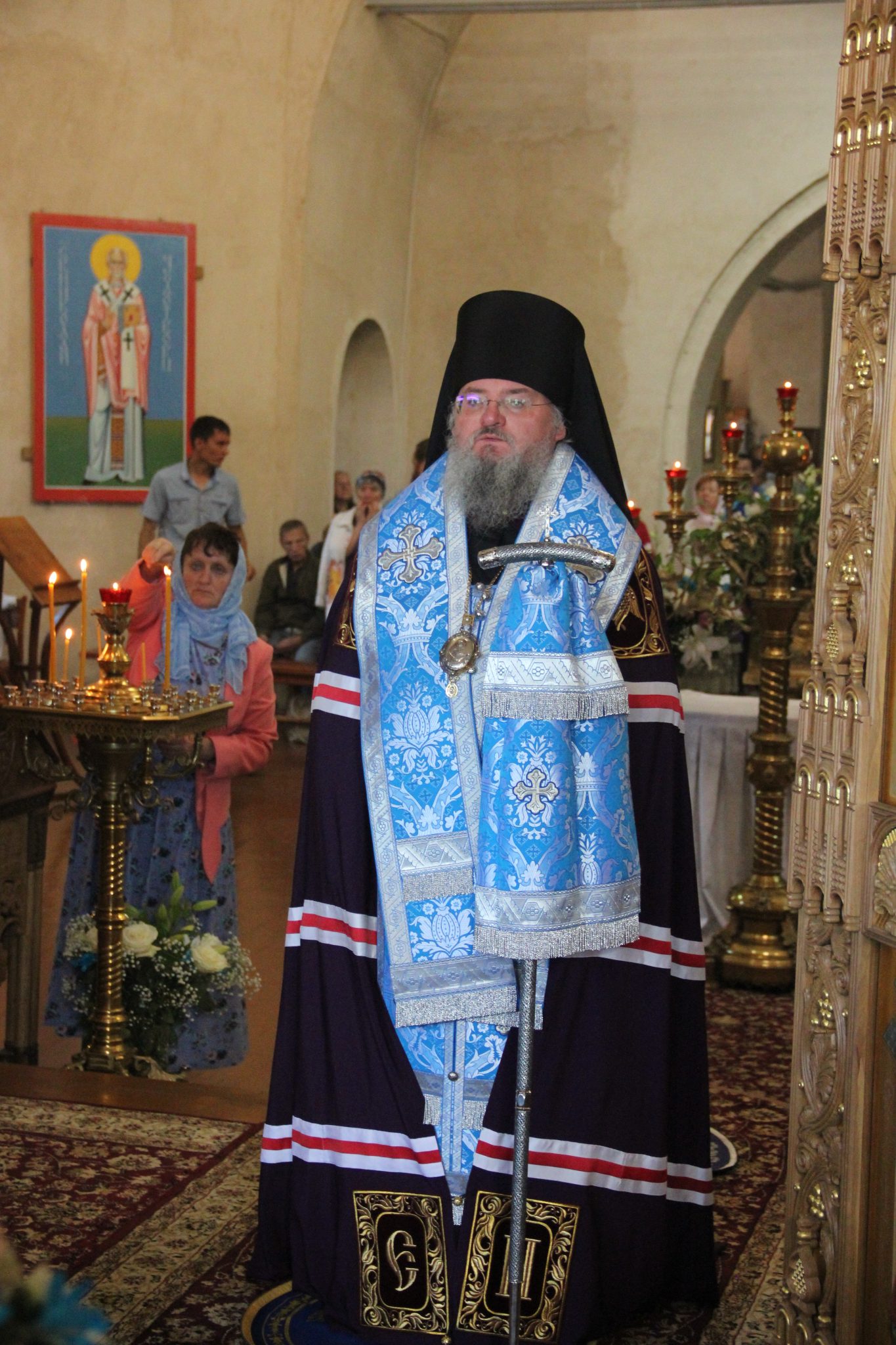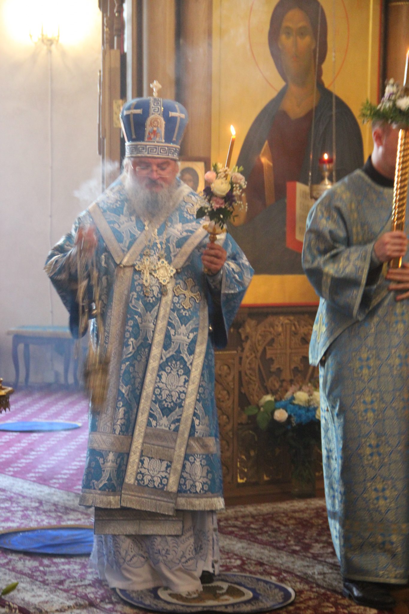 Преосвященному владыке сослужили: настоятель собора иеромонах Паисий (Курмаз), протоиерей Антоний Xатунцев, иерей Елисей Тимофеев, диакон Евгений Ковригин, диакон Евгений Васильев и иеродиакон Виталий (Павленко).