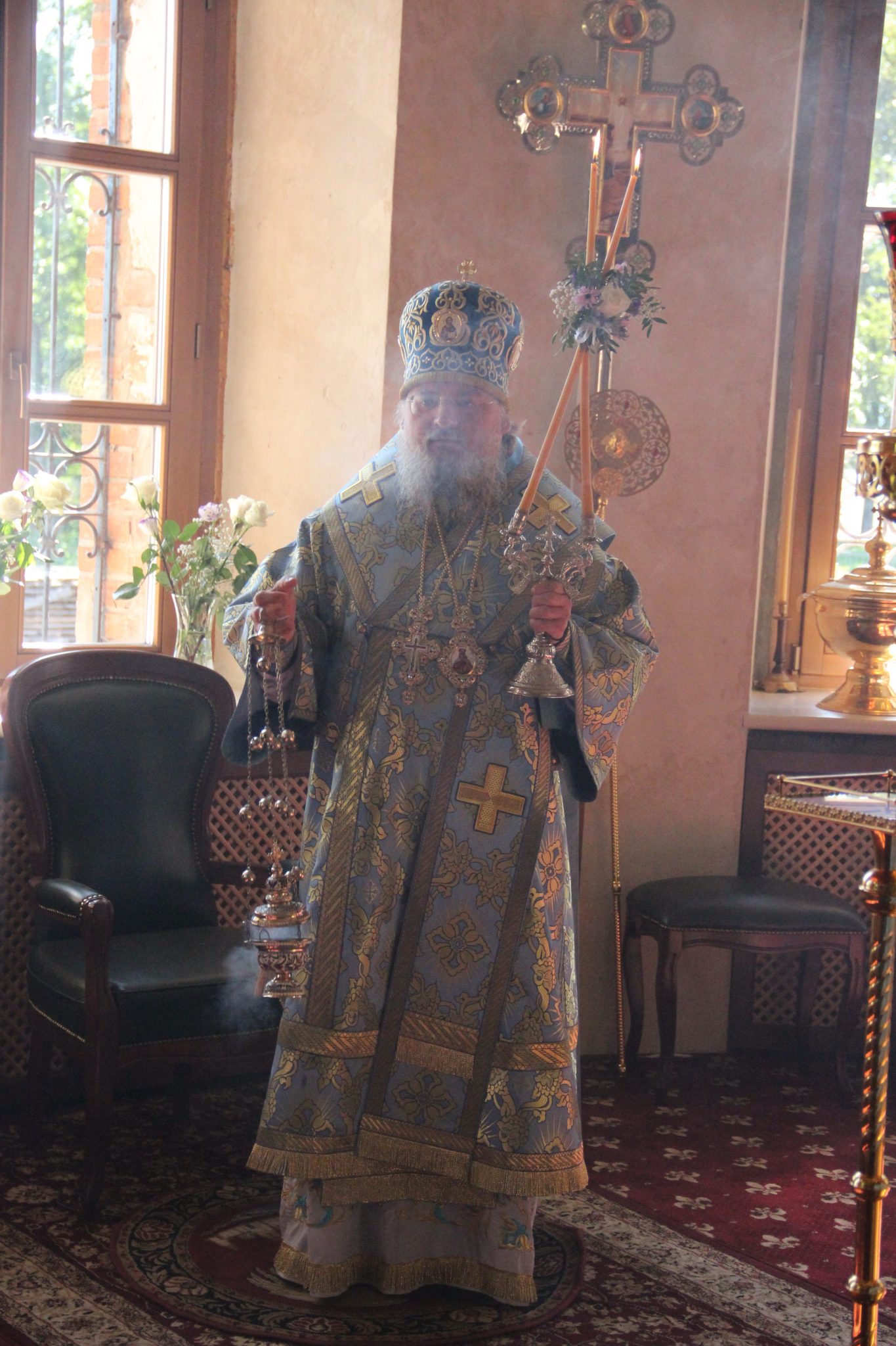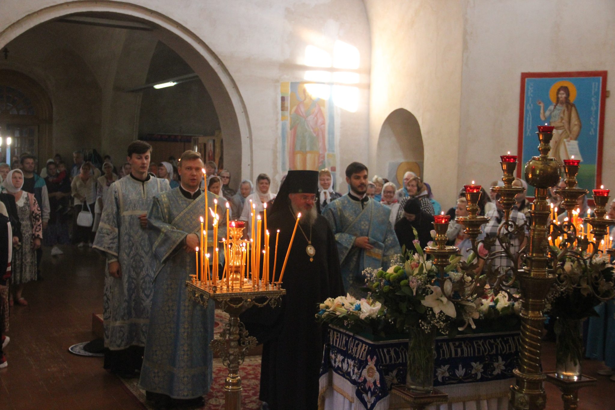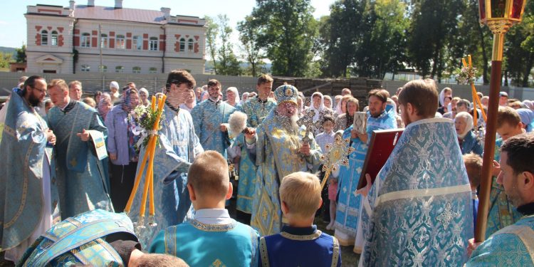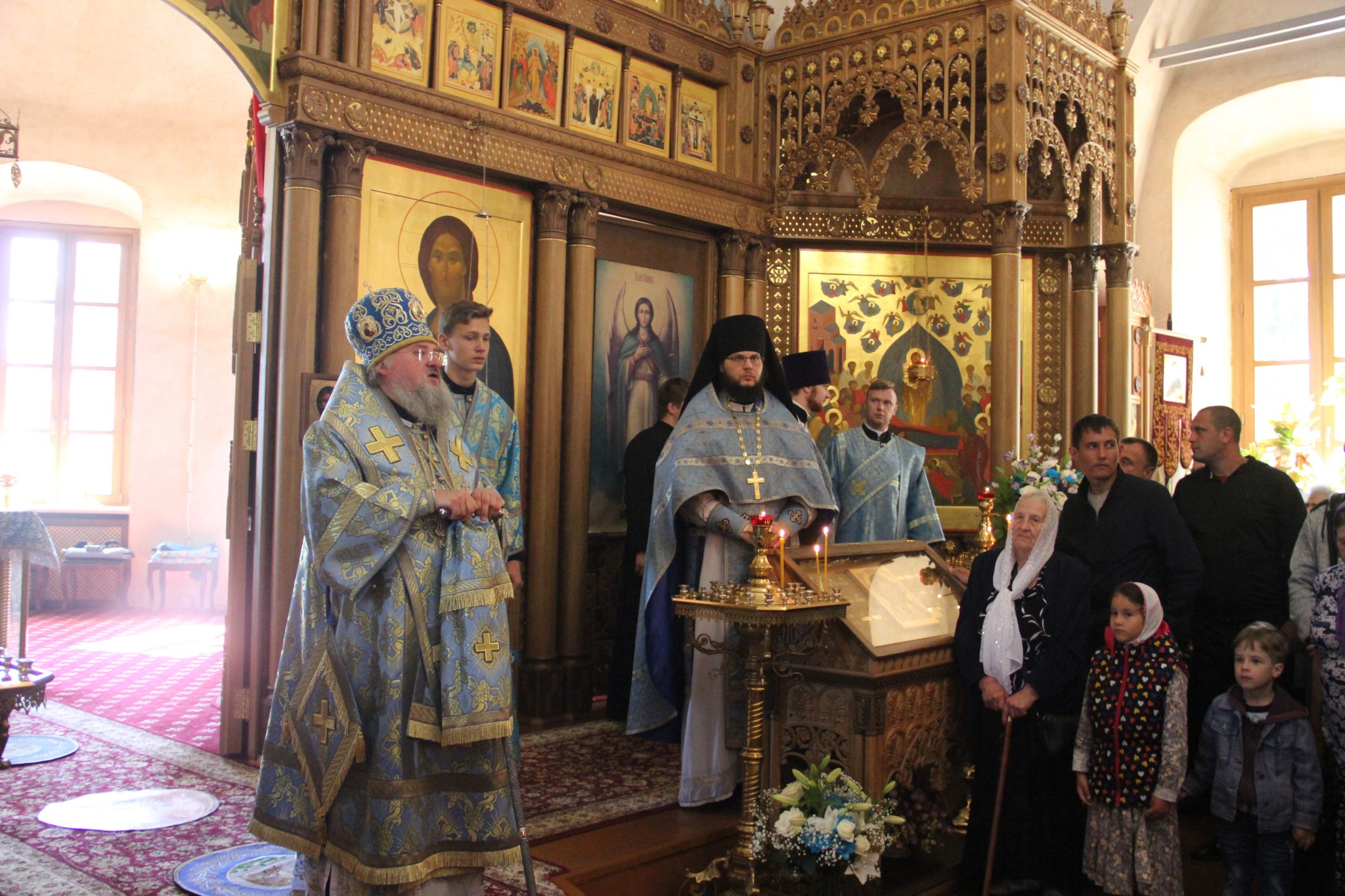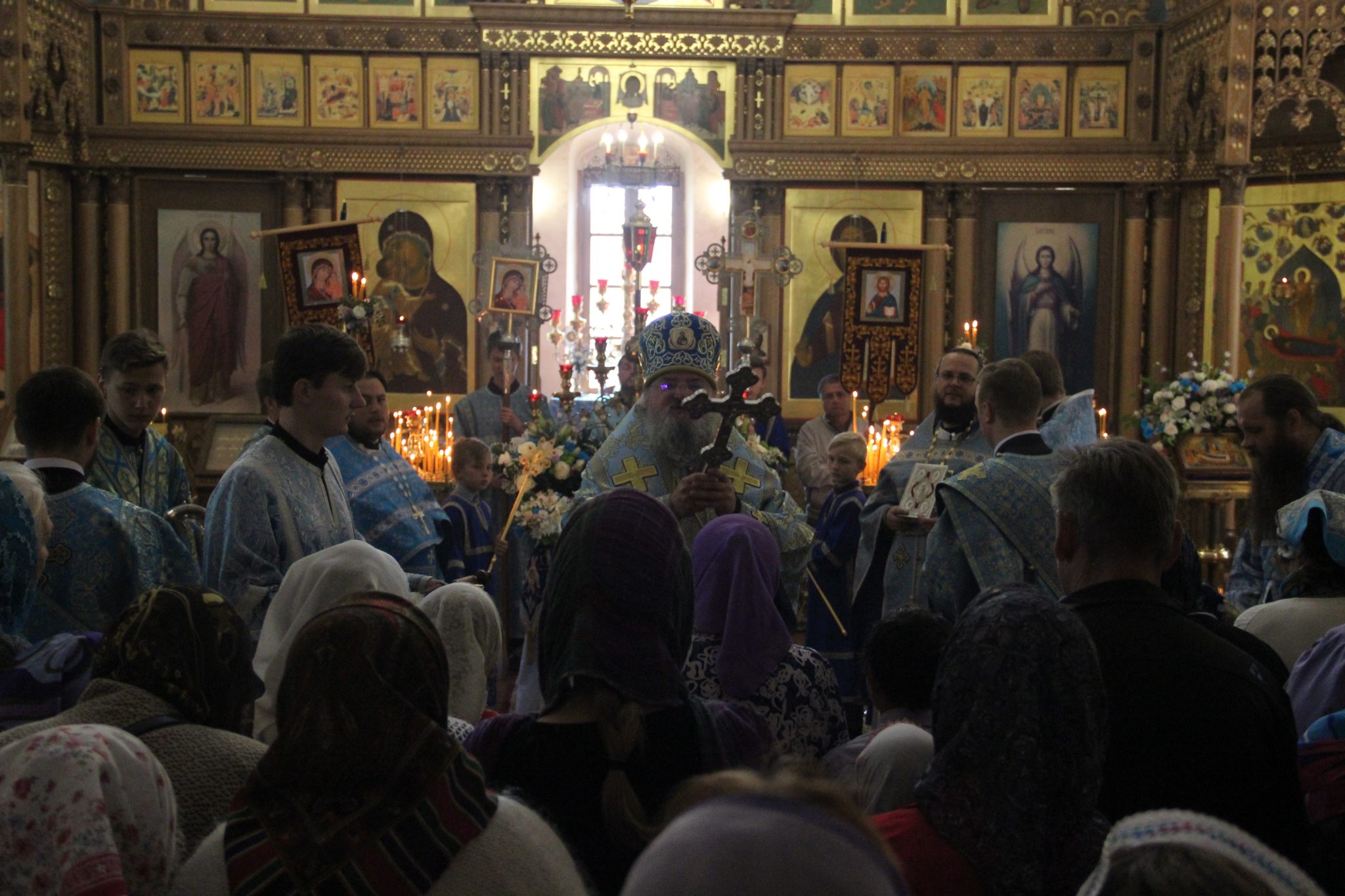 По отпусте литургии состоялся праздничный крестный xод вокруг xрама, в завершении которого владыка обратился к богомольцам с архипастырским словом.