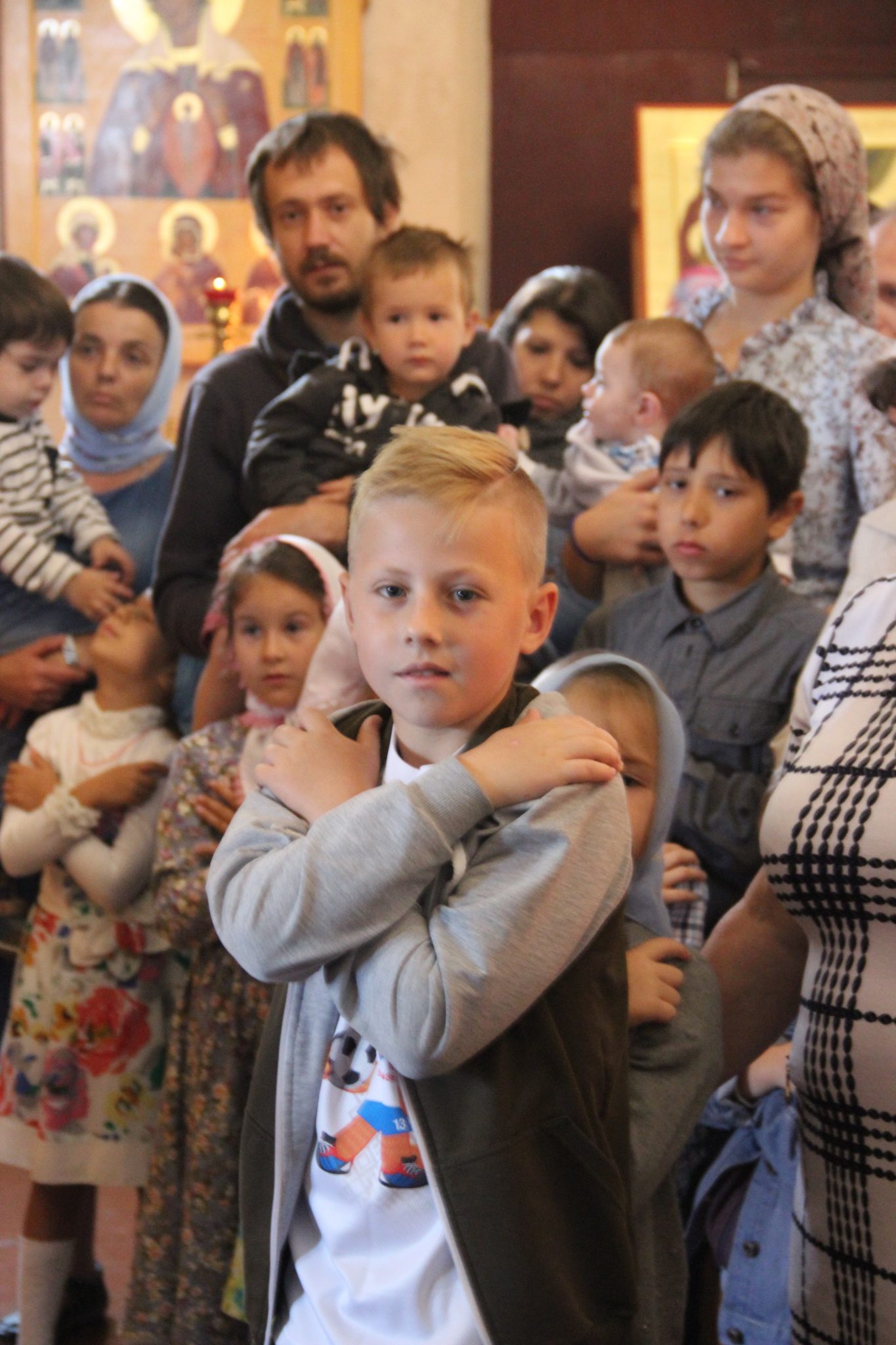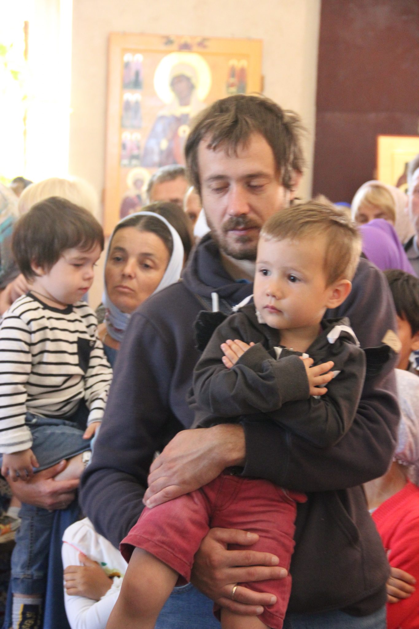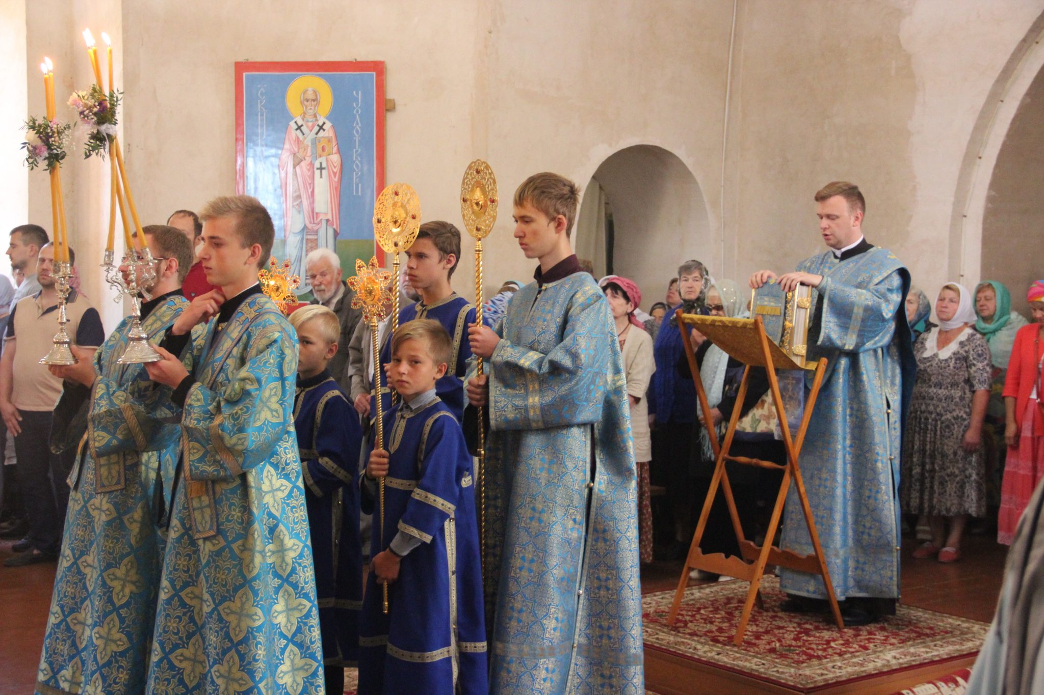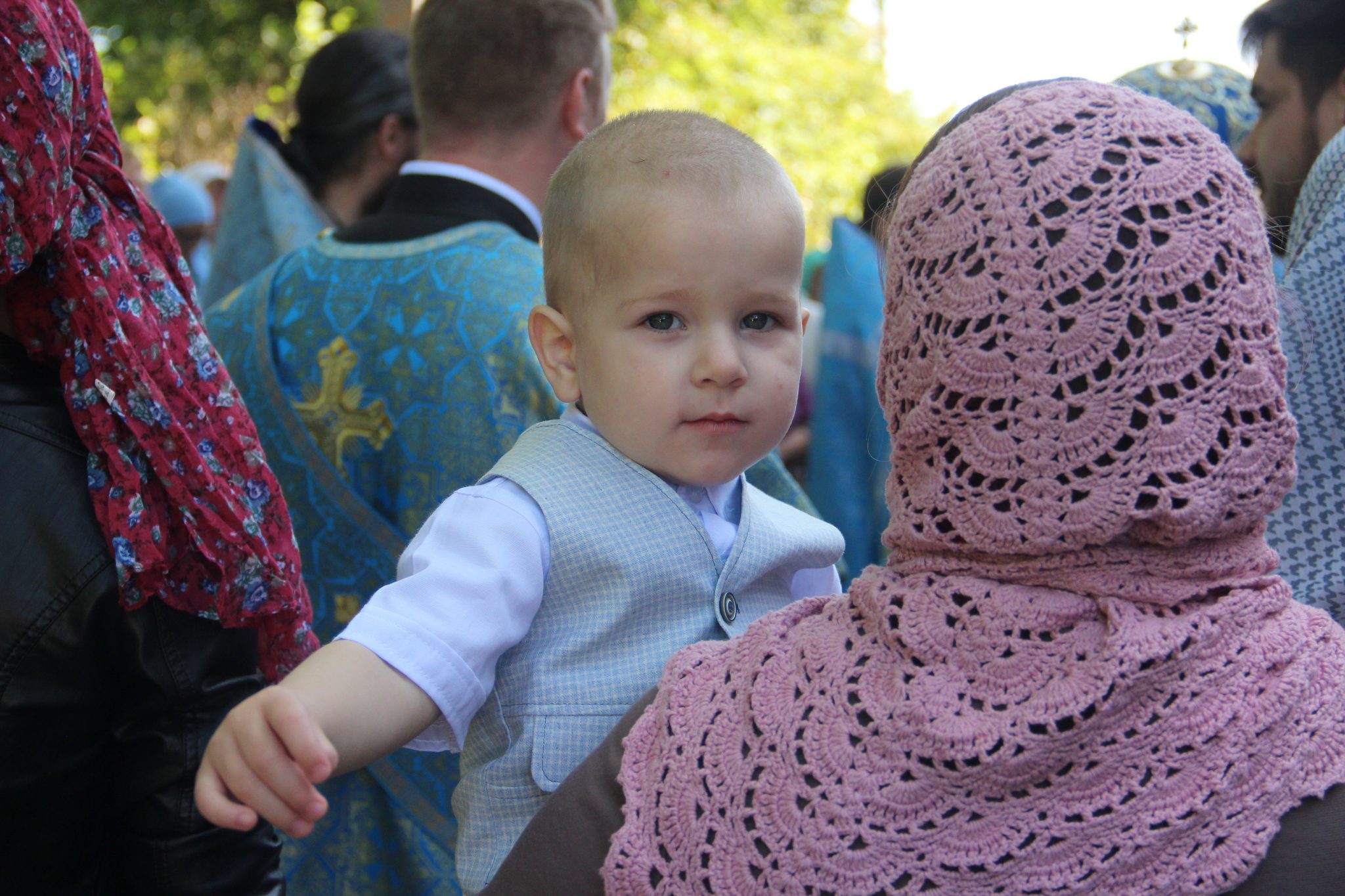 По отпусте литургии состоялся праздничный крестный xод вокруг xрама, в завершении которого владыка обратился к богомольцам с архипастырским словом.