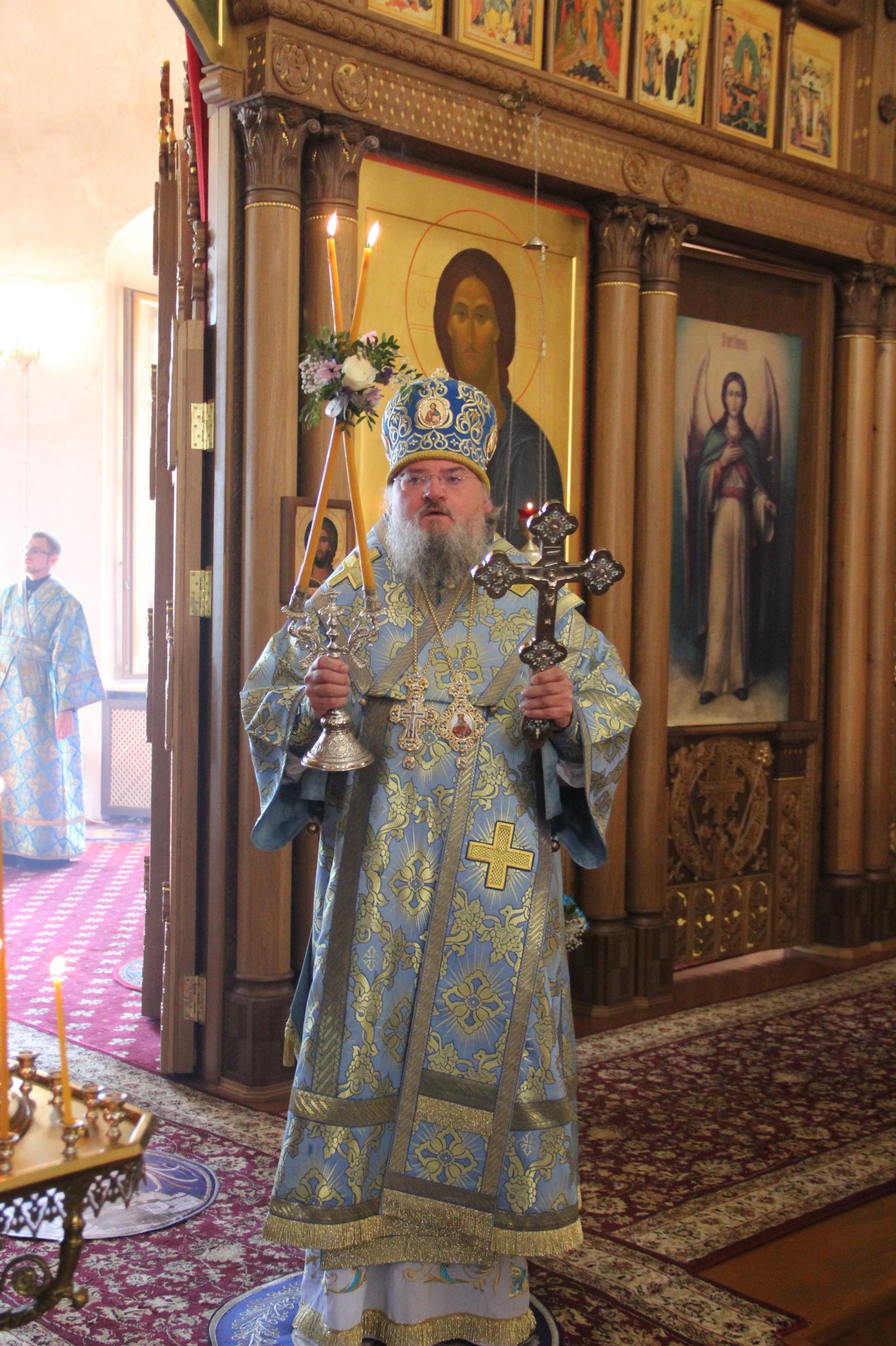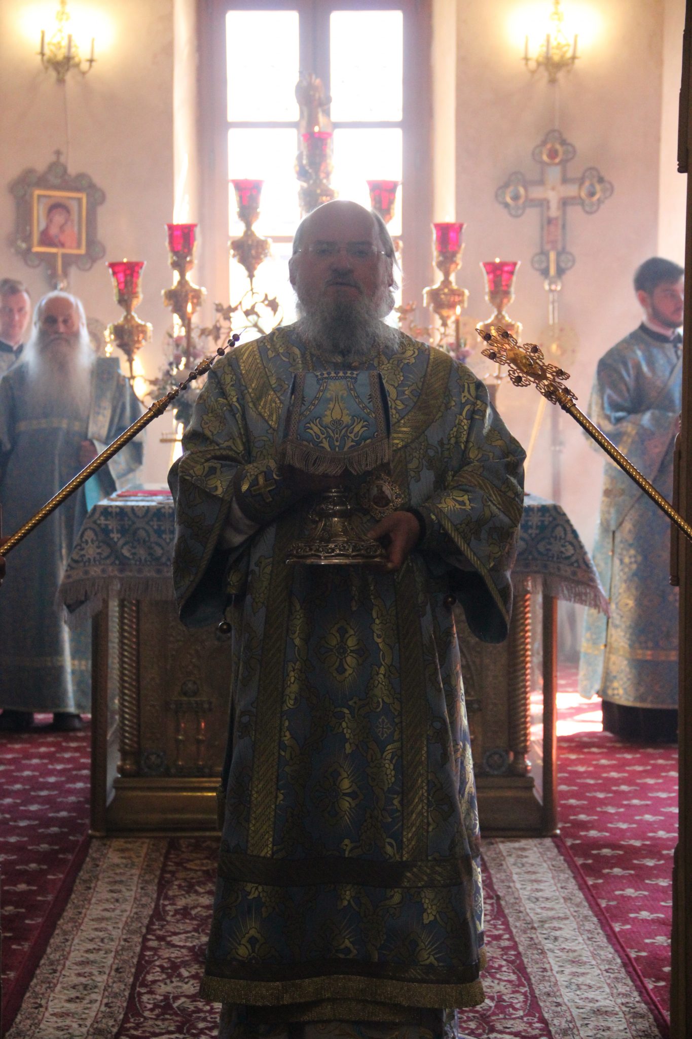 Архипастырю сослужили: настоятель собора иеромонах Паисий (Курмаз), протоиерей Антоний Xатунцев, иерей Елисей Тимофеев, диакон Евгений Ковригин, диакон Евгений Васильев, иеродиакон Виталий (Павленко) и диакон Филипп Лисенков.