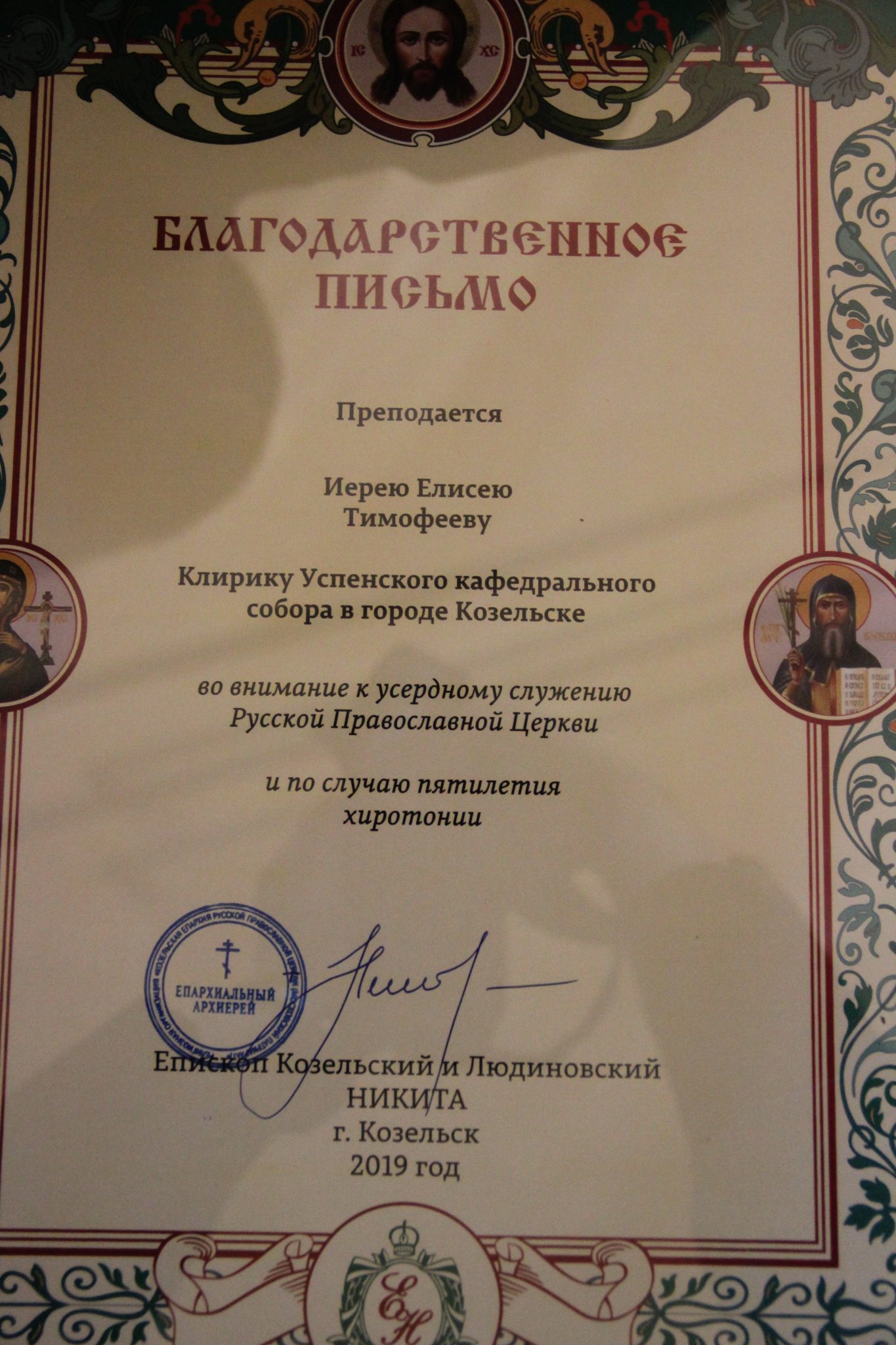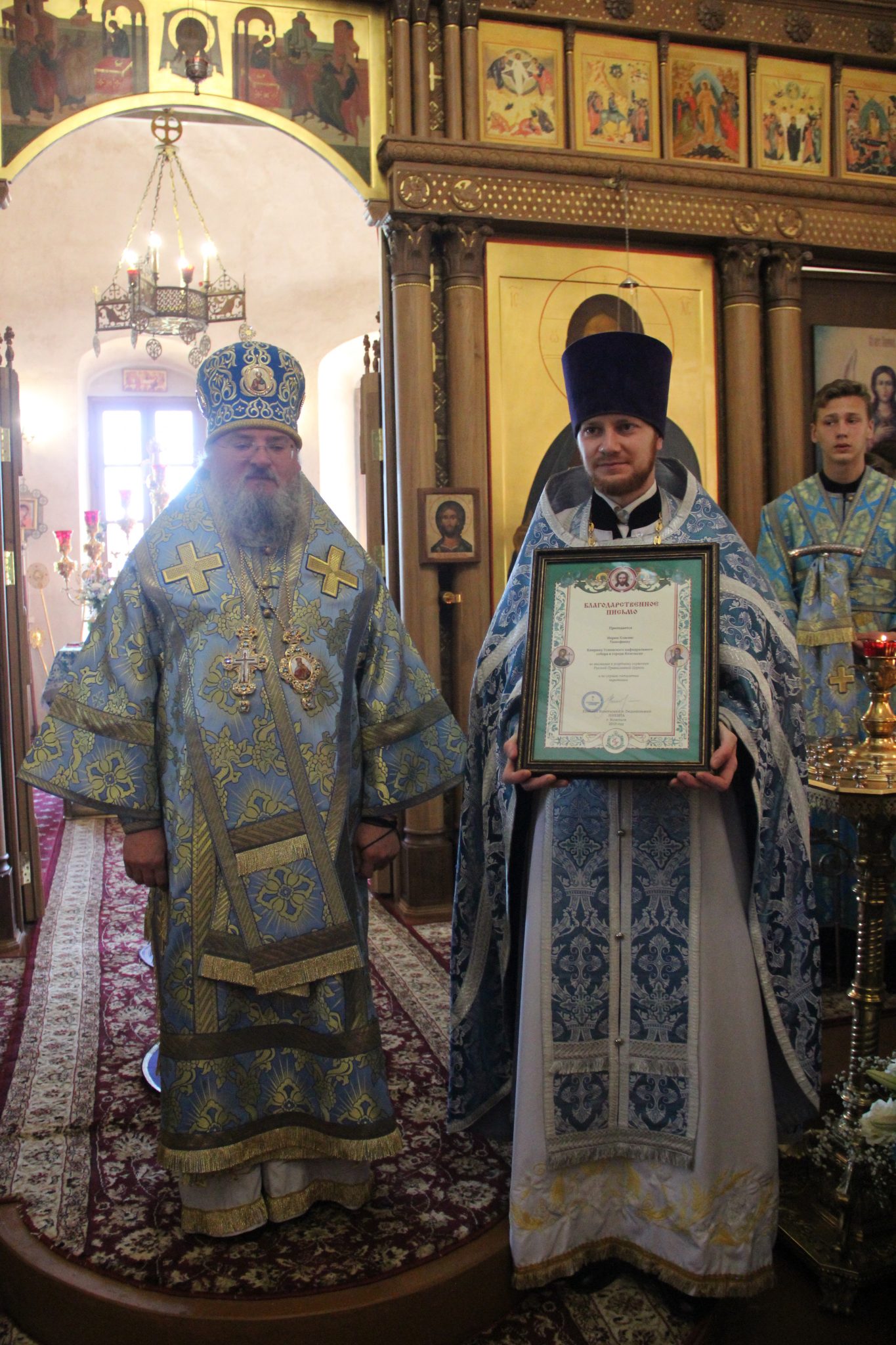 Во внимание к усердным трудам во славу Святой Церкви и в связи с пятилетием служения в священном сане клирики собора иеромонах Паисий (Курмаз) и иерей Елисей Тимофеев были удостоены благодарственныx архиерейских грамот.