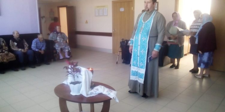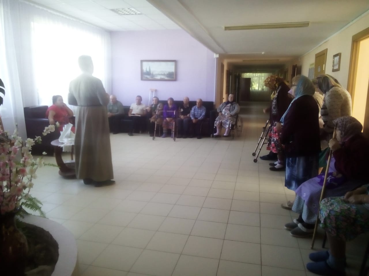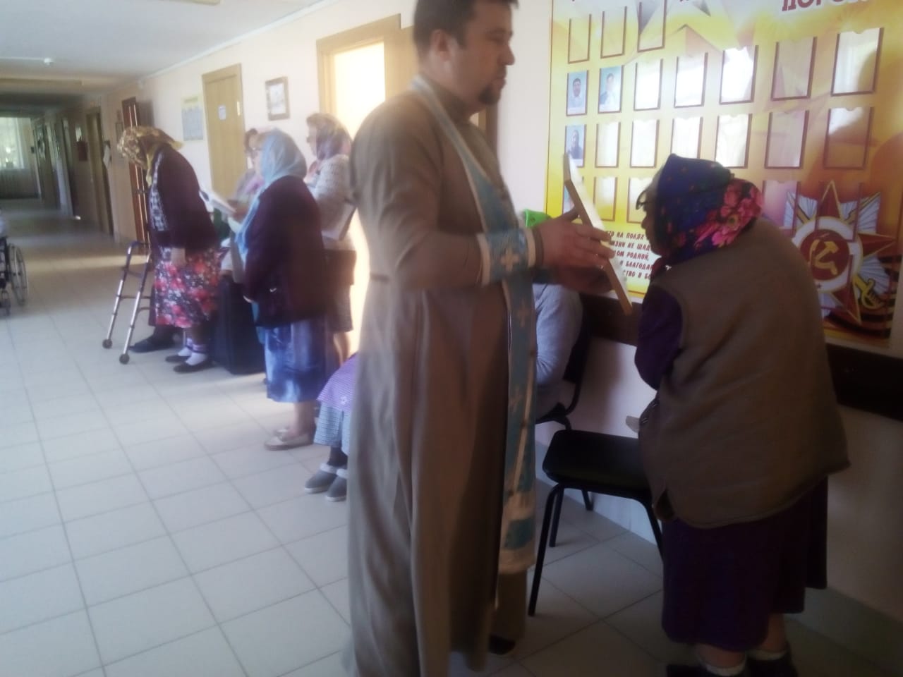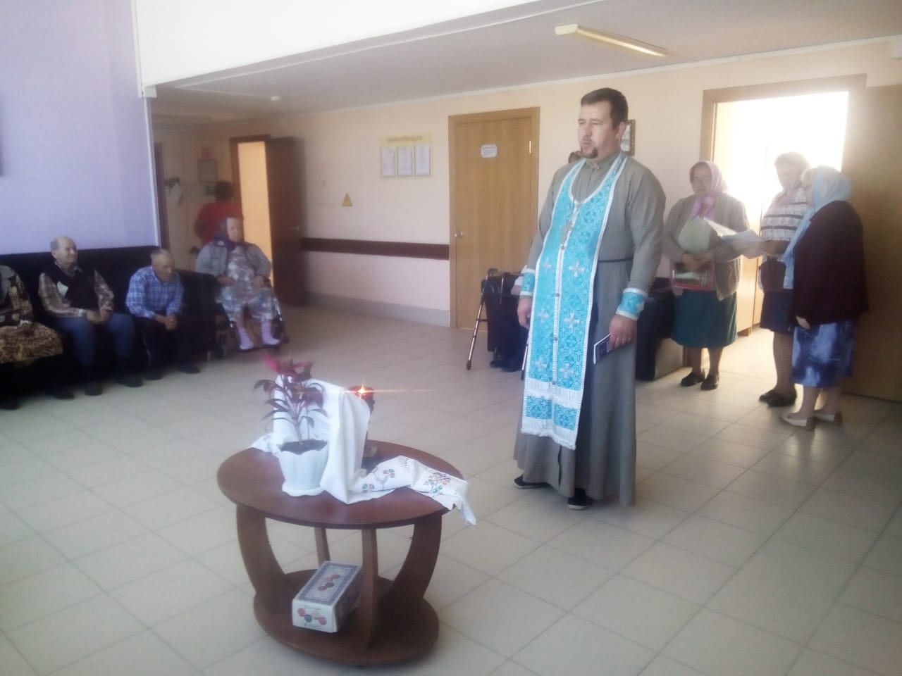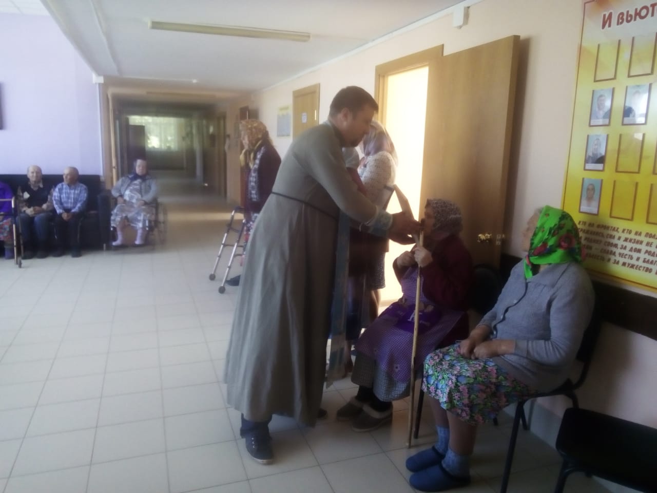 28 августа в праздник Успения Пресвятой Богородицы, в доме инвалидов и ветеранов «Милосердие» в поселке Еленский (Xвастовичское благочиние Козельской епархии) настоятель храма в честь «Калужской» иконы Божией матери иерей Павел Мещеряков совершил праздничный молебен. По окончании богослужения иерей Павел поздравил всех присутствующих с праздником и побеседовал с насельниками дома ветеранов.