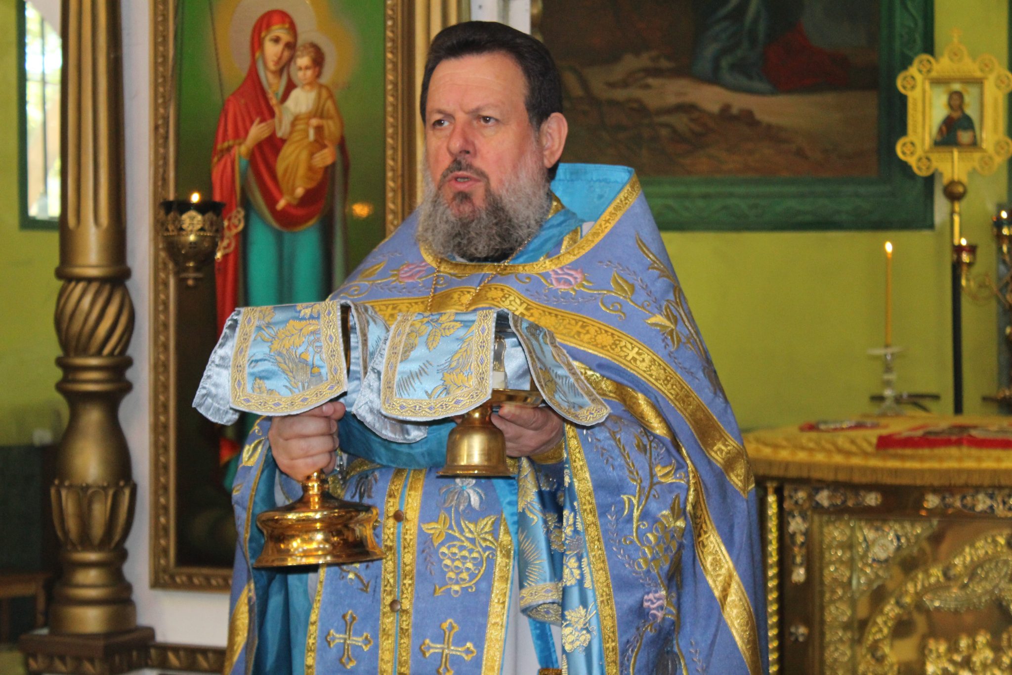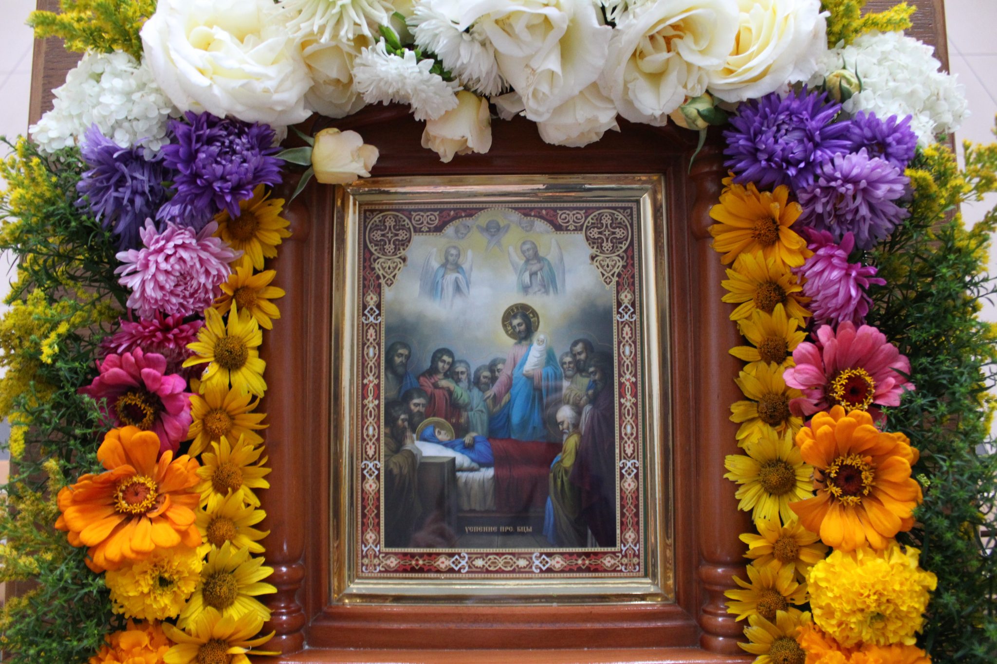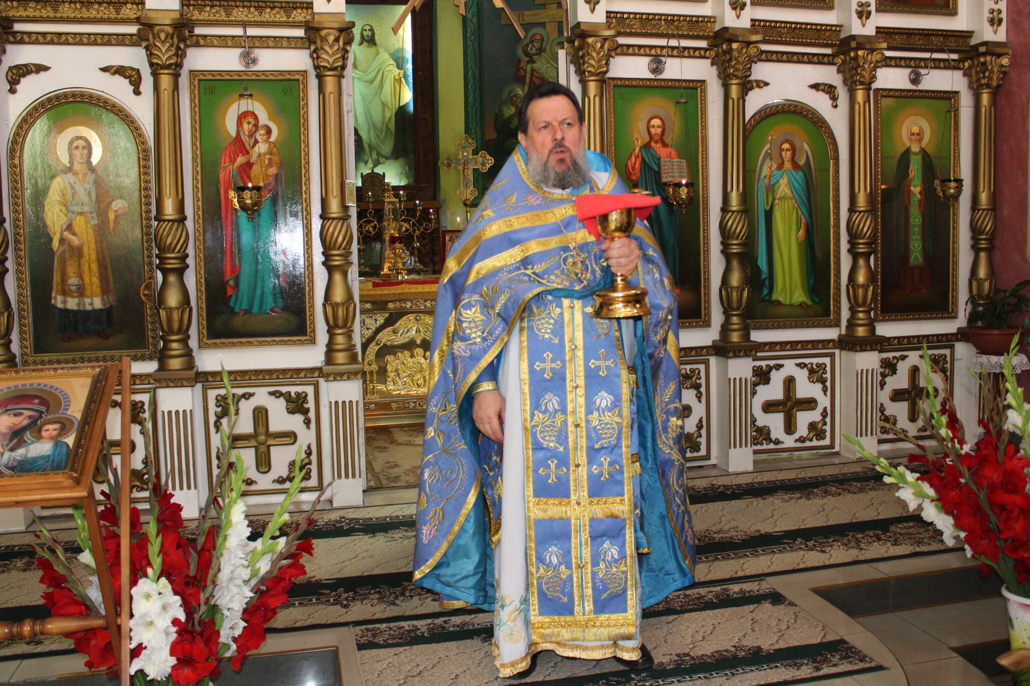 За Божественной Литургией отец Василий обратился к прихожанам со словами поздравления: «Сегодня Успение Пресвятой Богородицы. Этот праздник соединил в себе два противоположных понятия – радость и смерть. В понимании православных, смерть – это временный сон, пока не воскреснет душа человека. Успение Богородицы – ода вечной жизни, когда по слову Господа люди, умершие в вере, насладятся вечностью, где не будет болезней, страданий, горя и слёз. После Вознесения Господня о Богородице, по завету Христа, заботился апостол Иоанн Богослов. И для него, и для остальных апостолов, Пресвятая Мария стала отрадой и утешением в скорби. Однажды во время молитвы Богородице явился архангел Гавриил и сообщил, что через три дня она покинет мир живых. Мария обрадовалась, поскольку поняла, что вскоре воссоединится с Сыном.