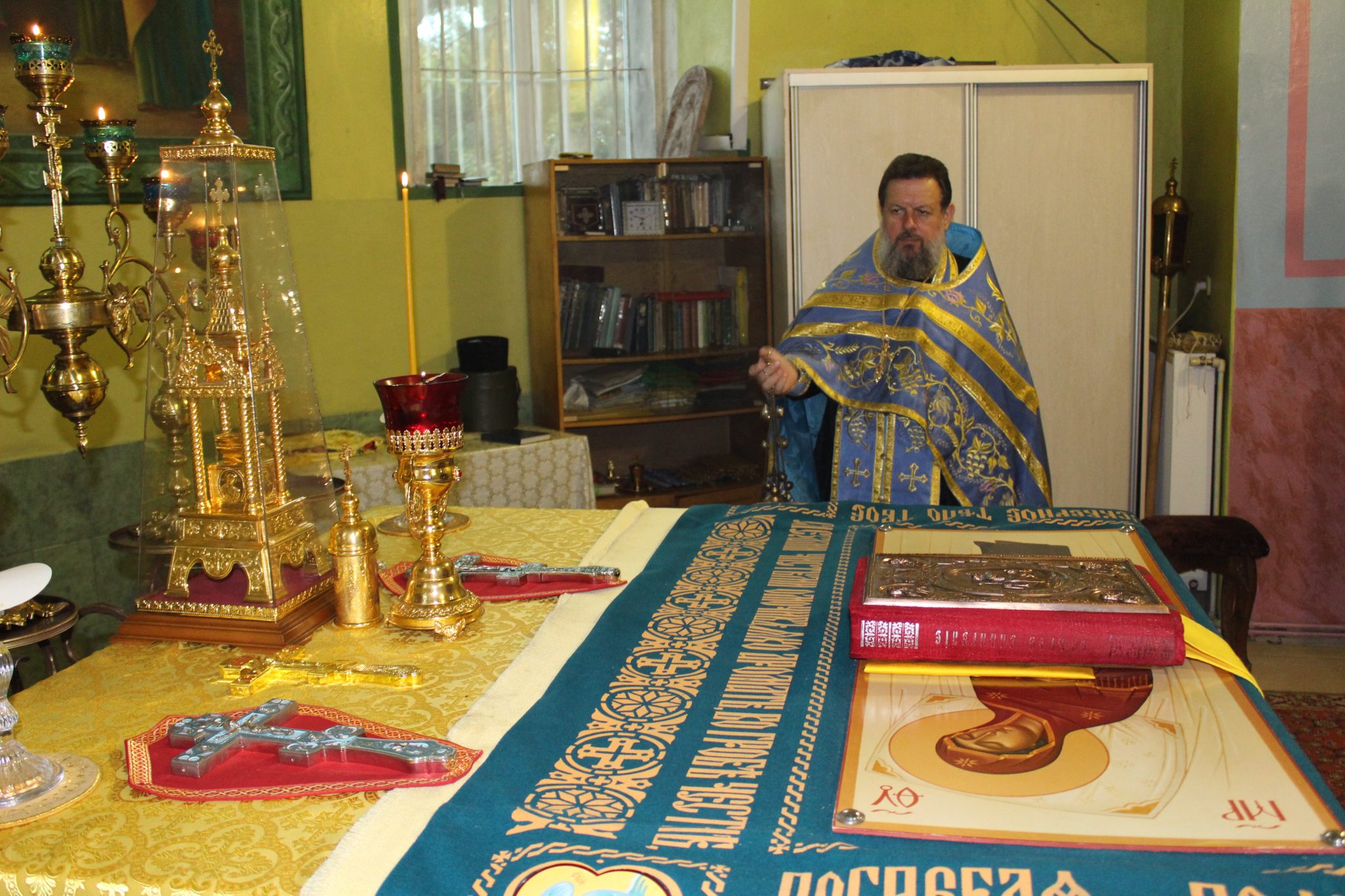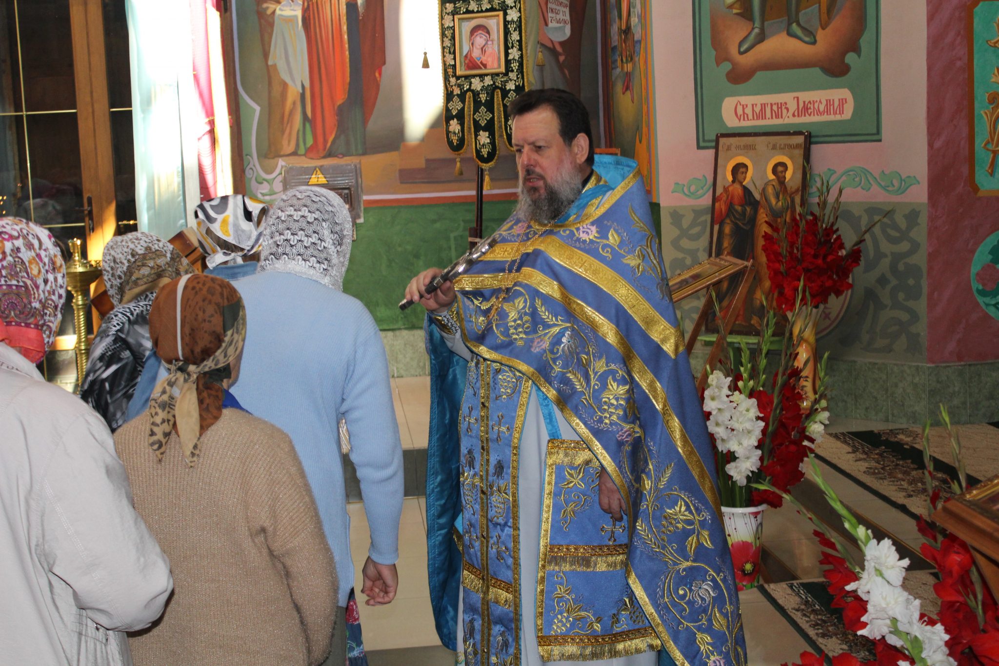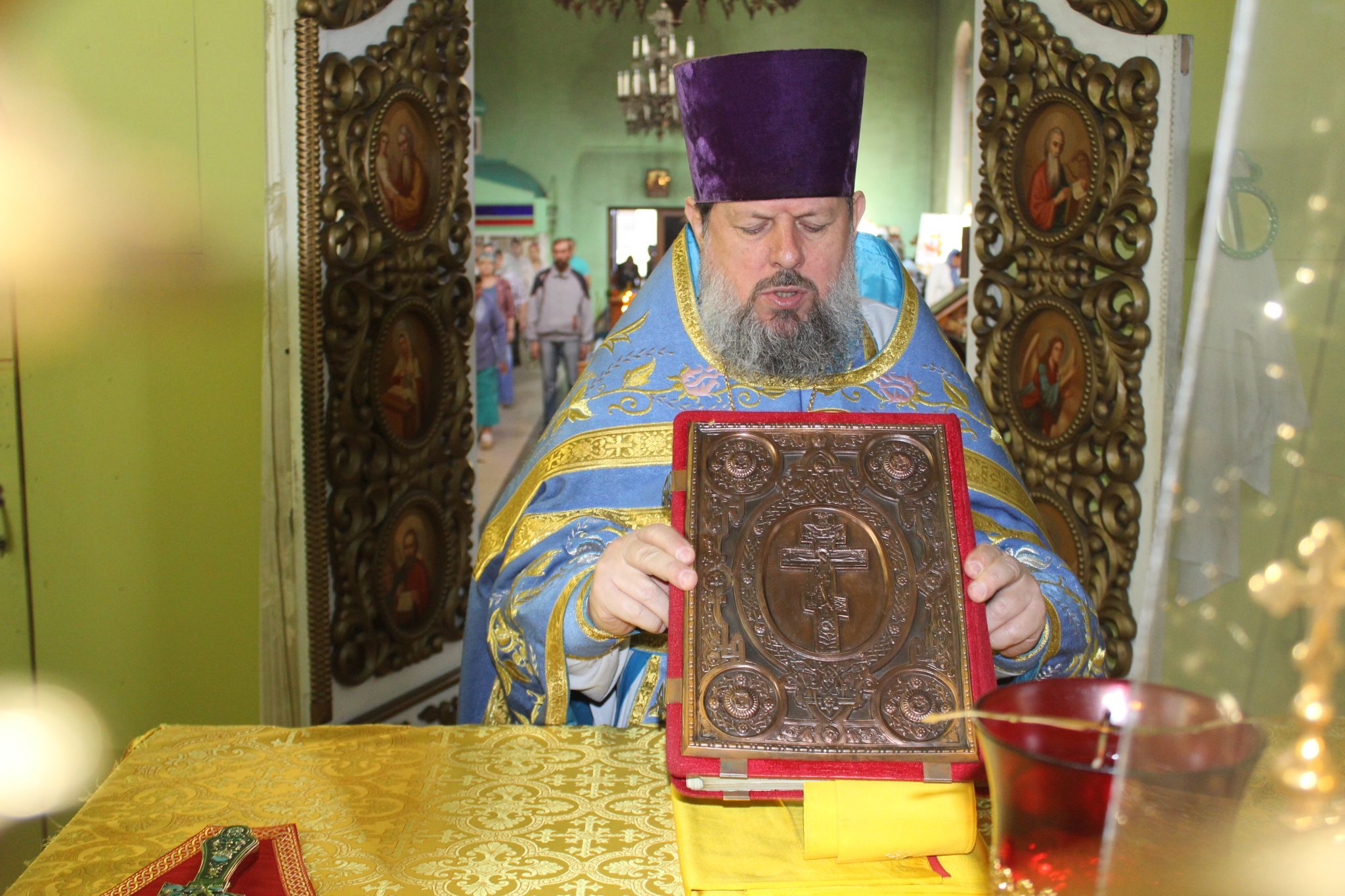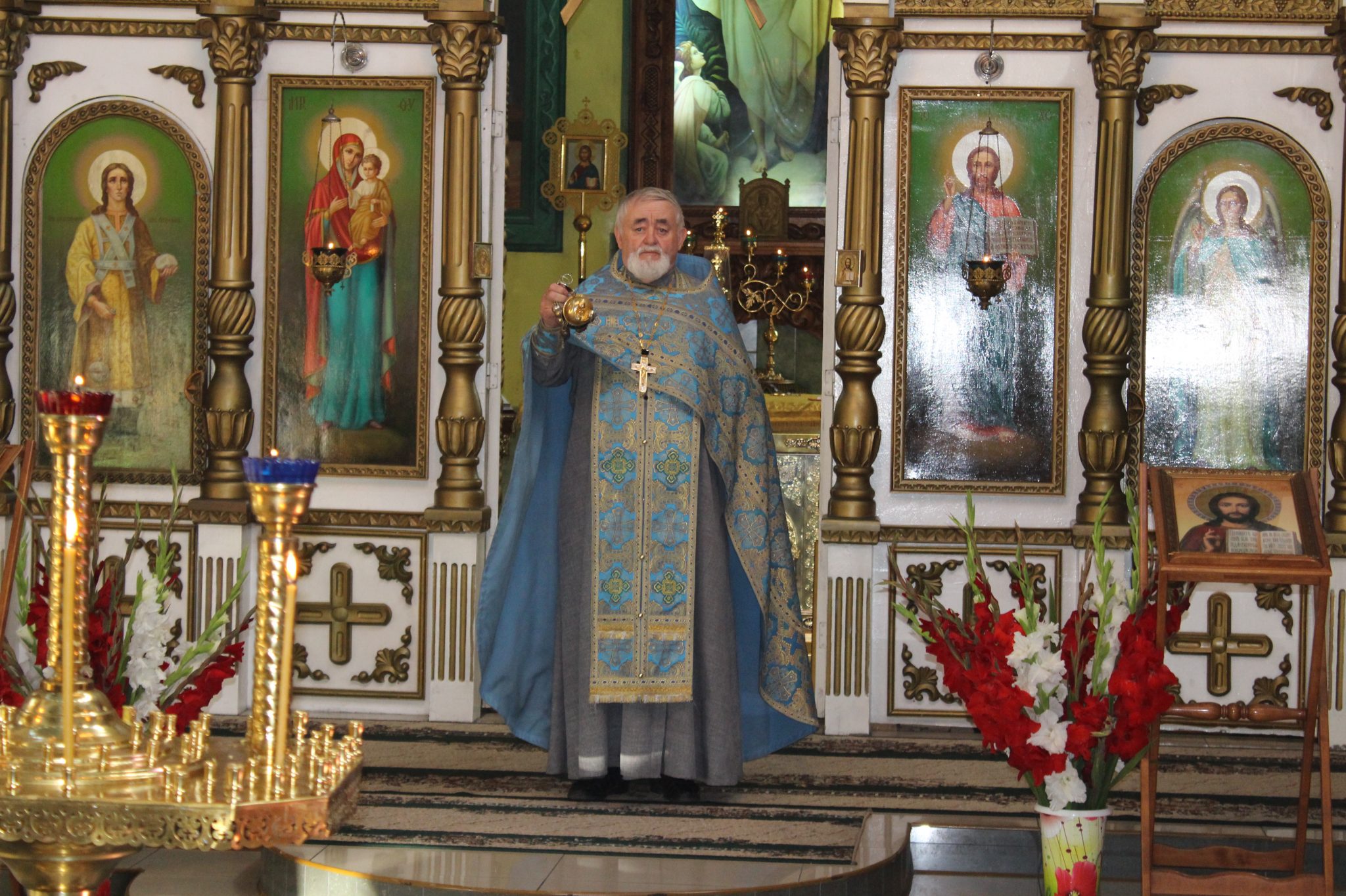 За Божественной Литургией отец Василий обратился к прихожанам со словами поздравления: «Сегодня Успение Пресвятой Богородицы. Этот праздник соединил в себе два противоположных понятия – радость и смерть. В понимании православных, смерть – это временный сон, пока не воскреснет душа человека. Успение Богородицы – ода вечной жизни, когда по слову Господа люди, умершие в вере, насладятся вечностью, где не будет болезней, страданий, горя и слёз. После Вознесения Господня о Богородице, по завету Христа, заботился апостол Иоанн Богослов. И для него, и для остальных апостолов, Пресвятая Мария стала отрадой и утешением в скорби. Однажды во время молитвы Богородице явился архангел Гавриил и сообщил, что через три дня она покинет мир живых. Мария обрадовалась, поскольку поняла, что вскоре воссоединится с Сыном.