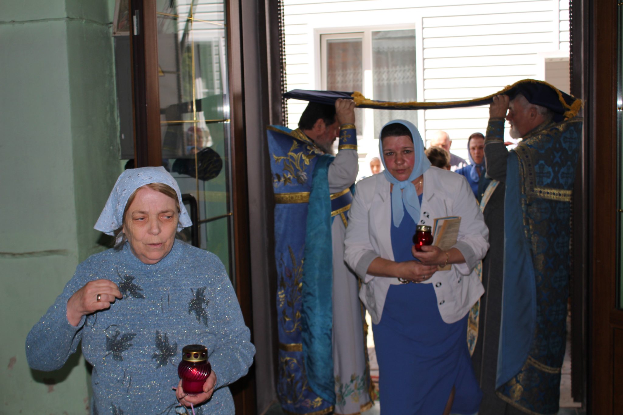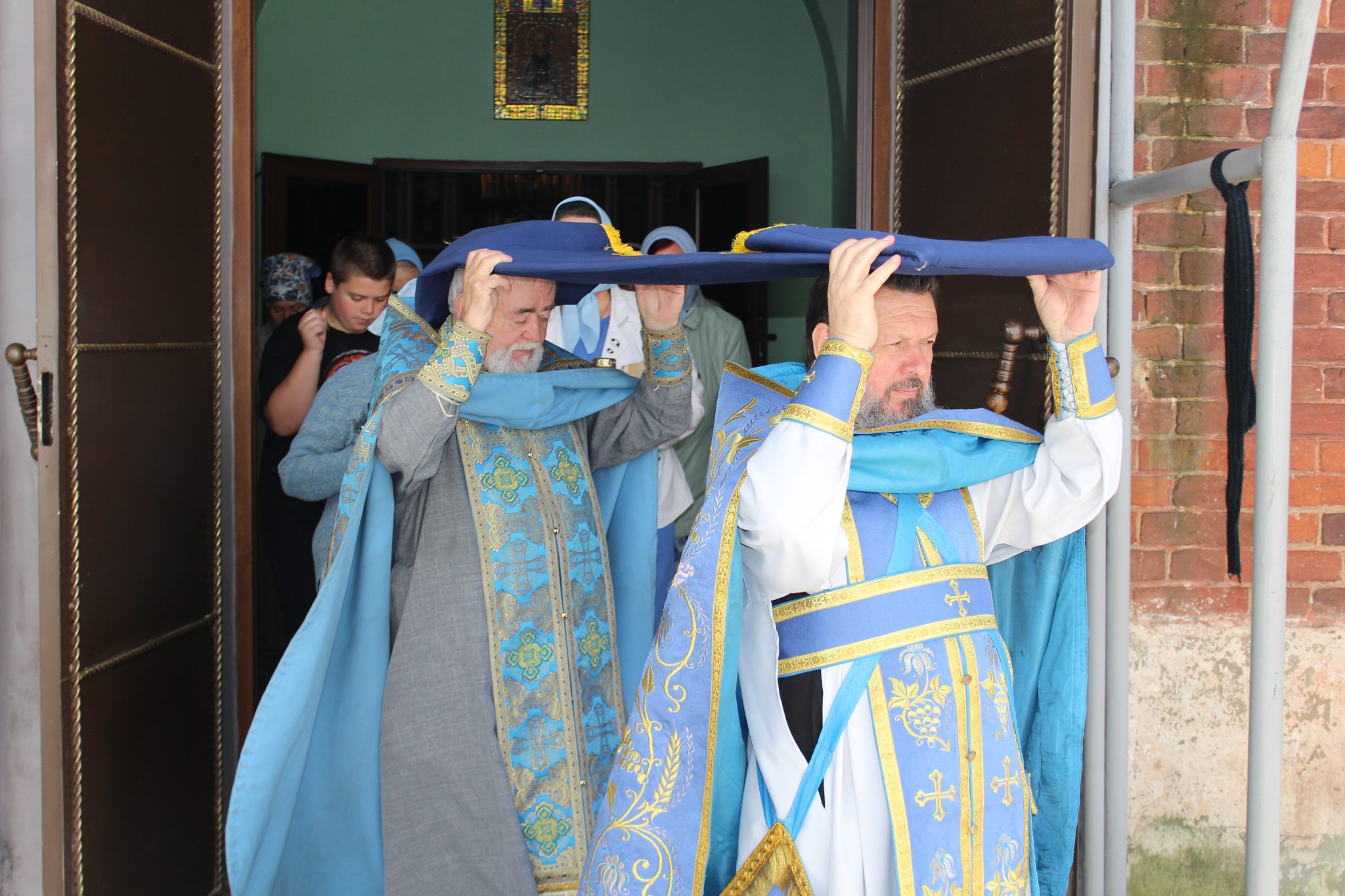 После Божественной Литургии был совершен чин Погребение Божией Матери с крестным ходом и праздничный водосвятный молебен.
