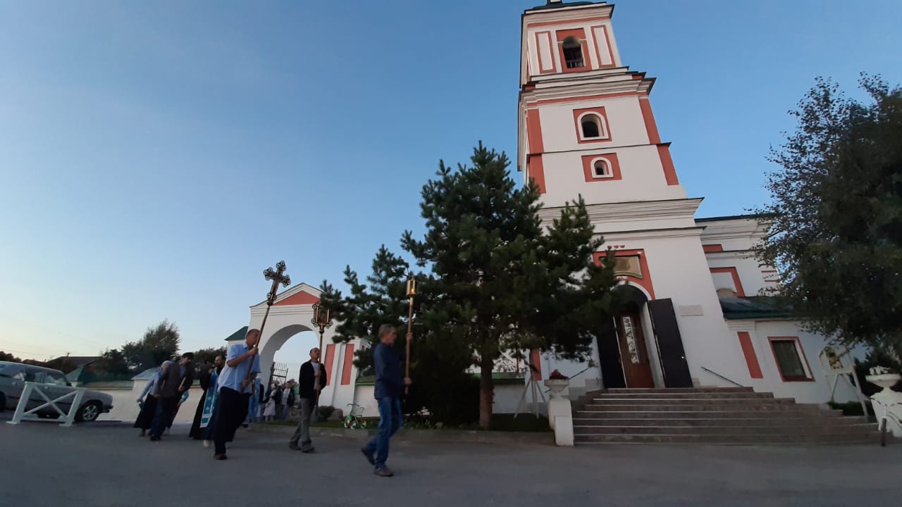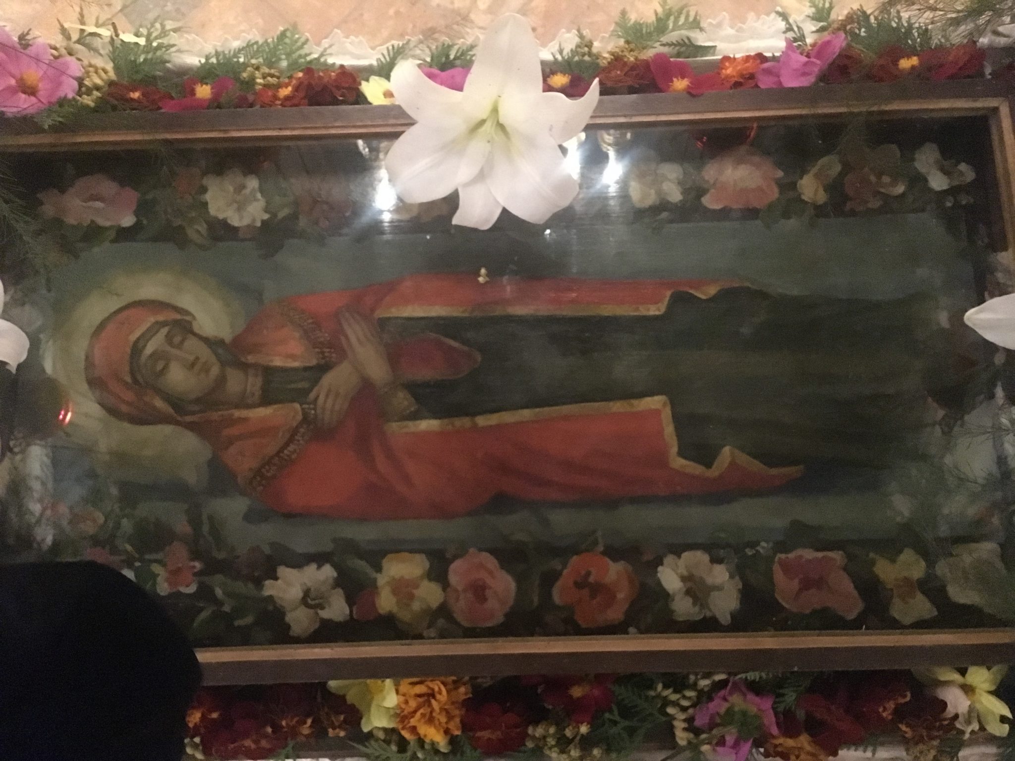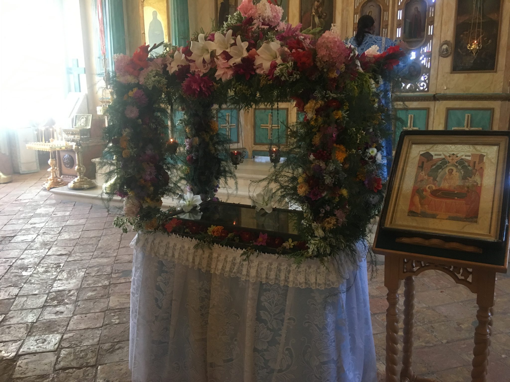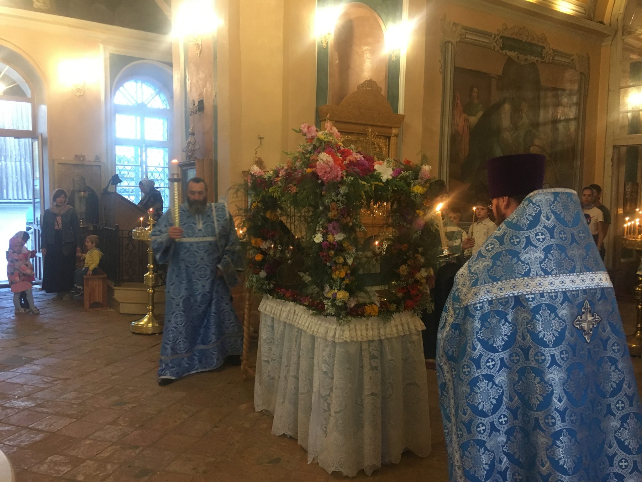 В праздничным вечером была совершена утреня и крестный ход с плащаницей Пресвятой Богородицы.