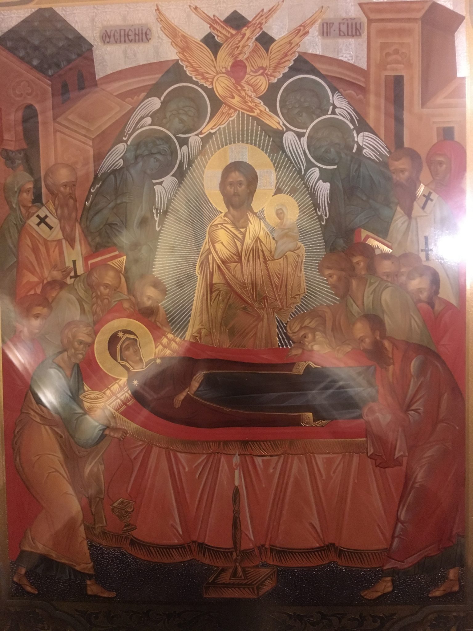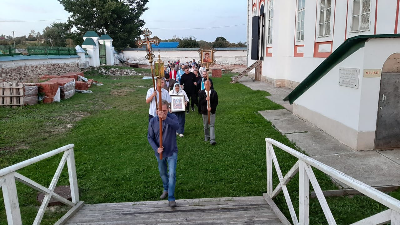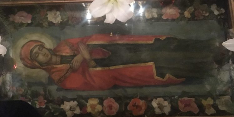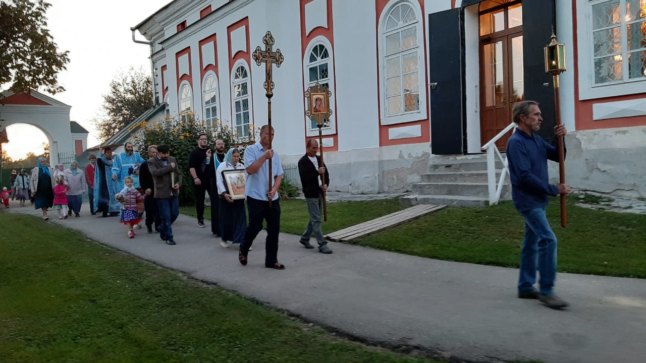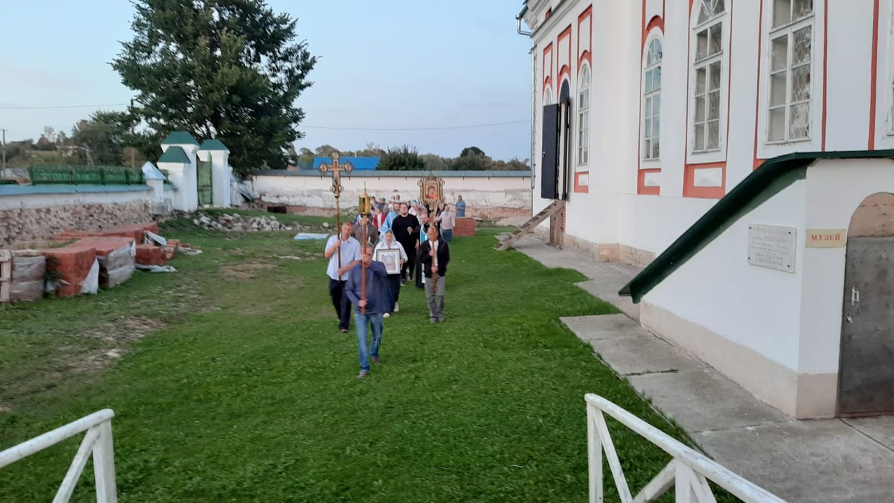В праздничным вечером была совершена утреня и крестный ход с плащаницей Пресвятой Богородицы.