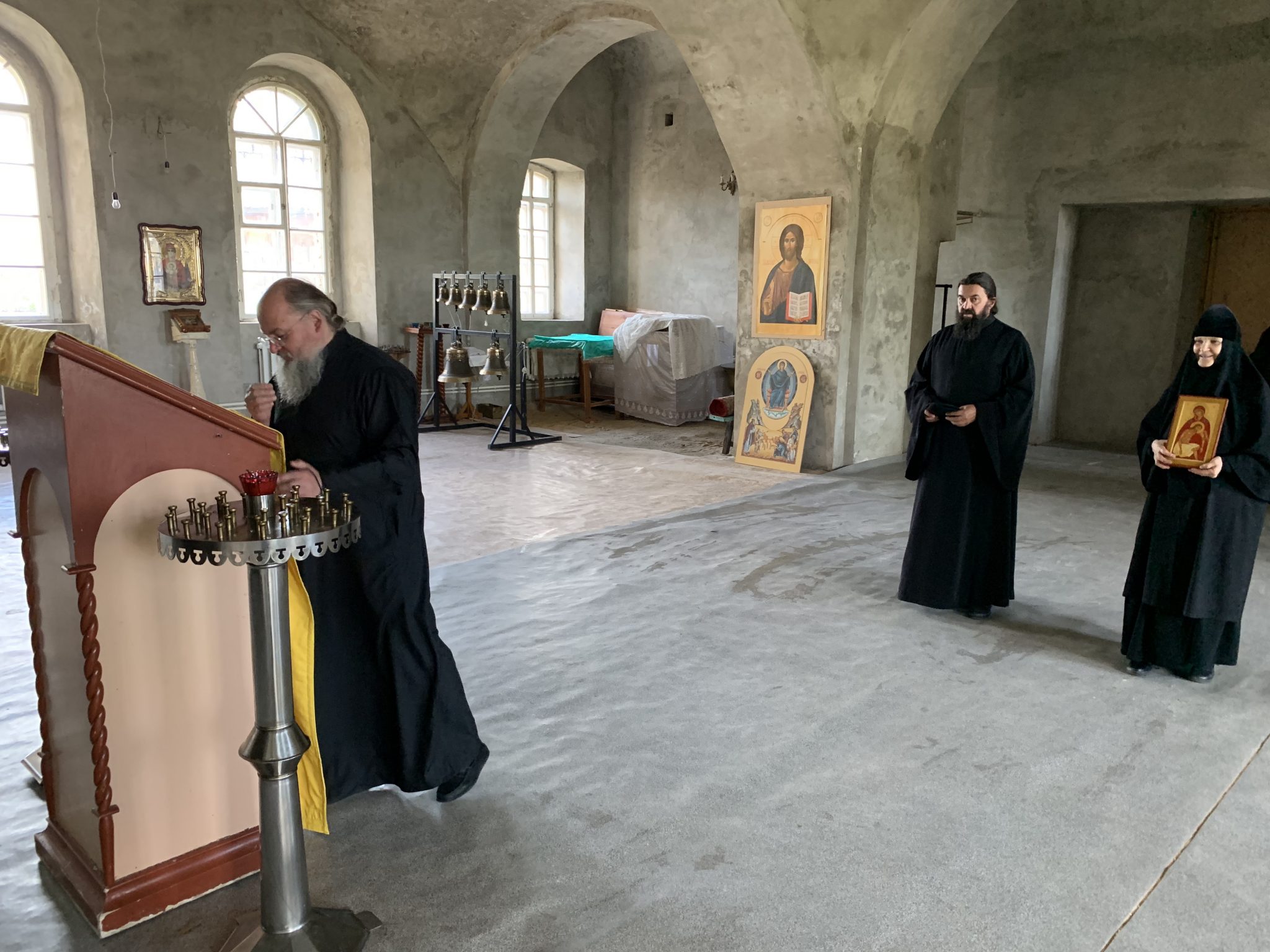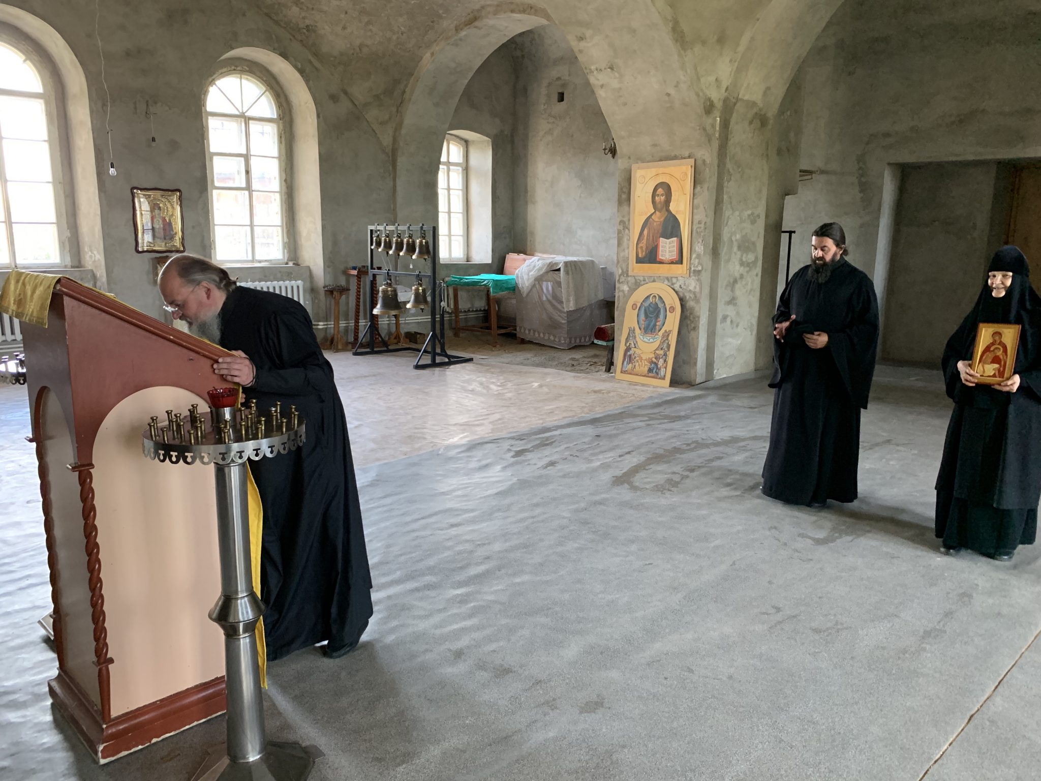 В обитель прибыли несколько сестер Свято- Никольского женского монастыря города Малоярославца, чтобы начать, с Божией помощию, дело восстановления утраченной святыни.