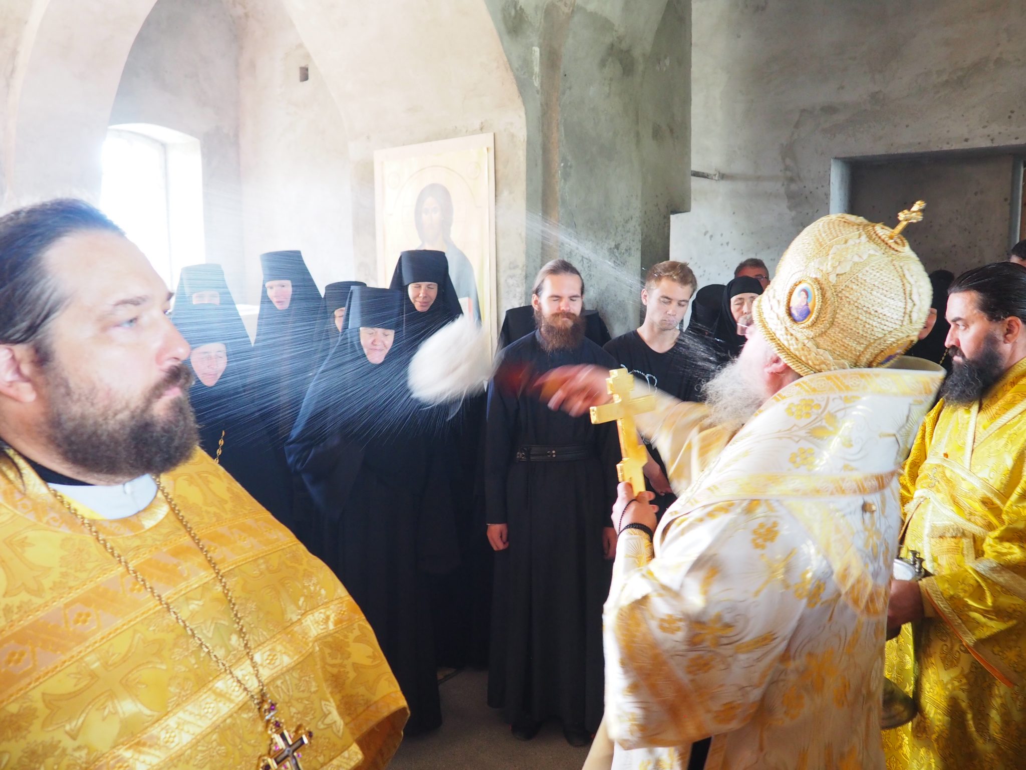 По отпусте литургии священнослужители пред чудотворным образом Ахтырской Божией Матери совершили молебен на начало всякого доброго дела, ознаменовав тем самым возобновление монашеской жизни в древней обители.
