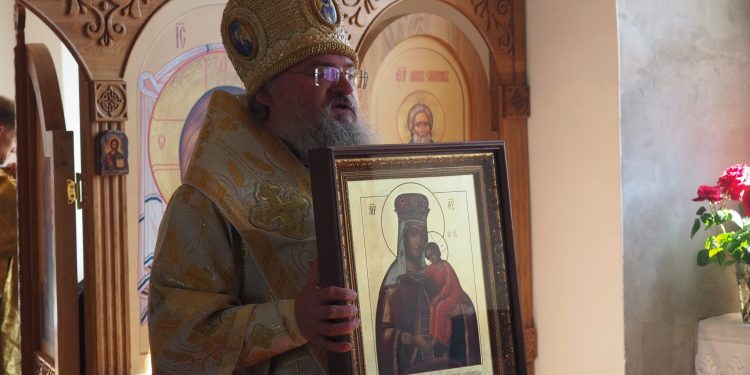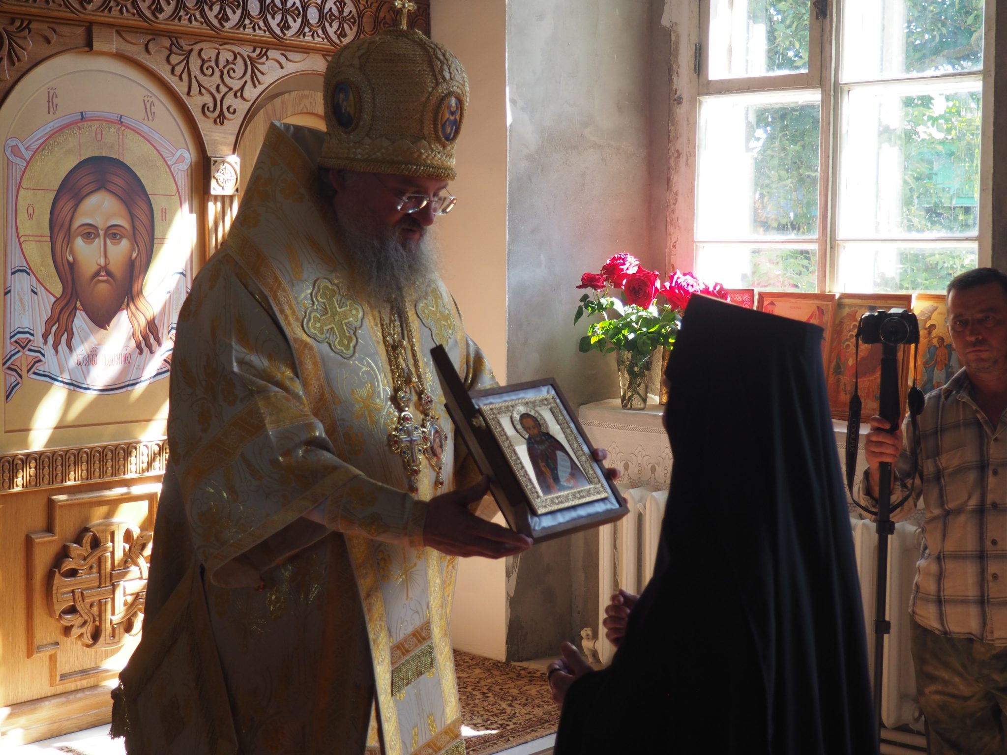 В благословение на предстоящие труды по возобновлению монастыря владыка преподнес монахине Анастасии, старшей сестре общины образ Божией Матери «Избавление от бед страждущих» Людиновская а также комплект хоругвей, пожертвованных настоятелем храма Преображения Господня в селе Нижние Прыски иереем Тихоном Худяковым.