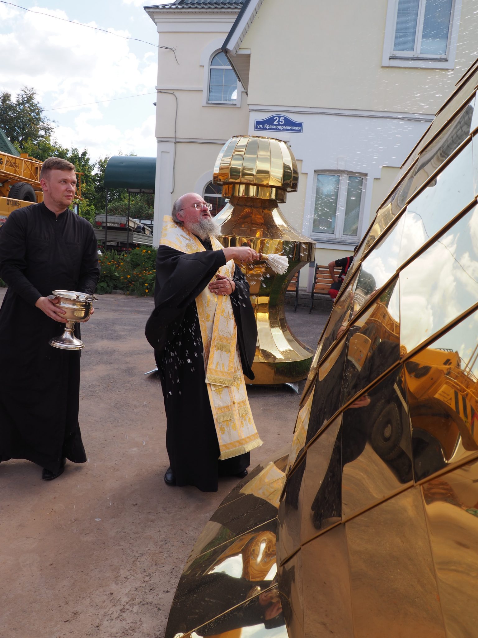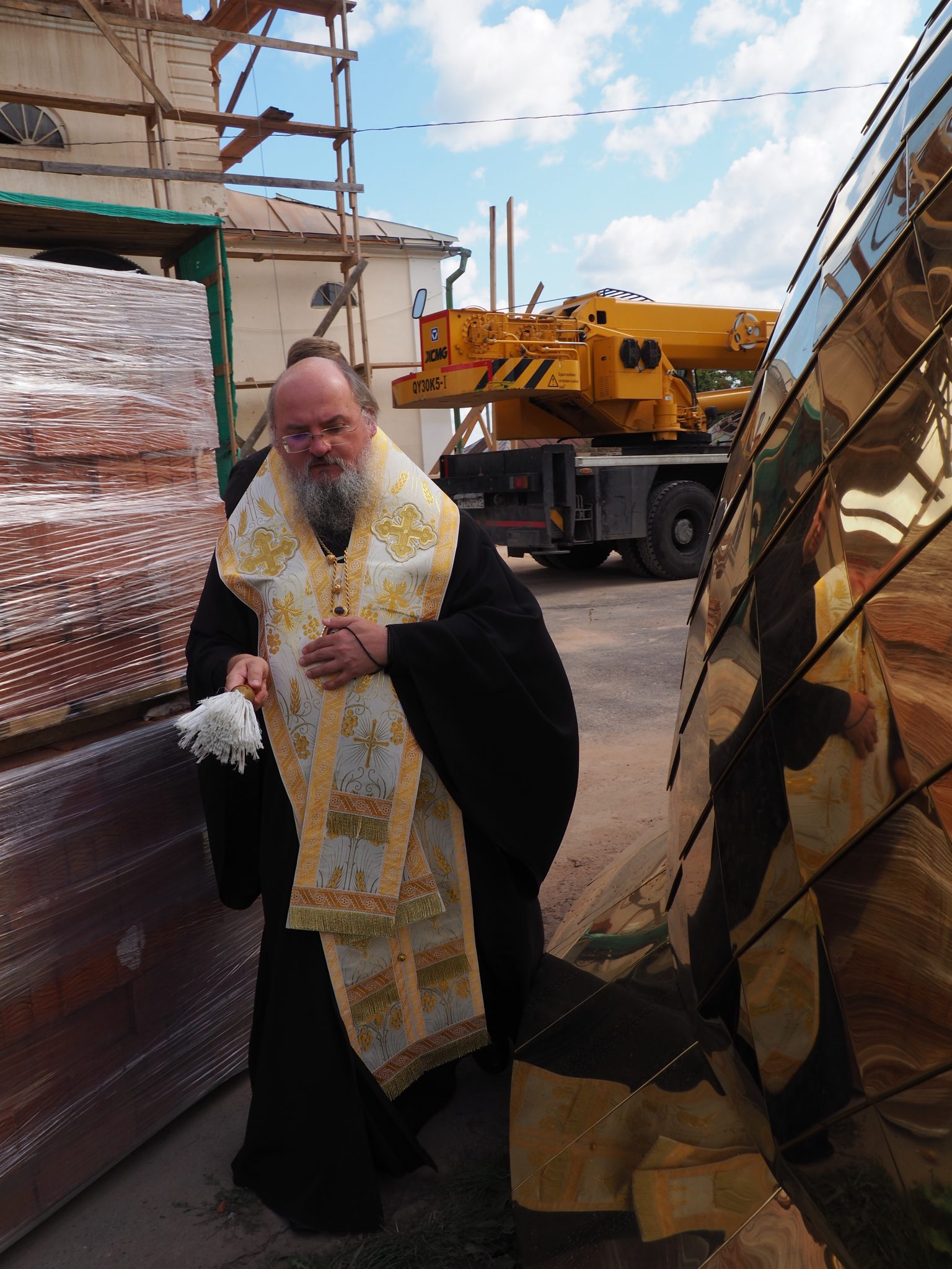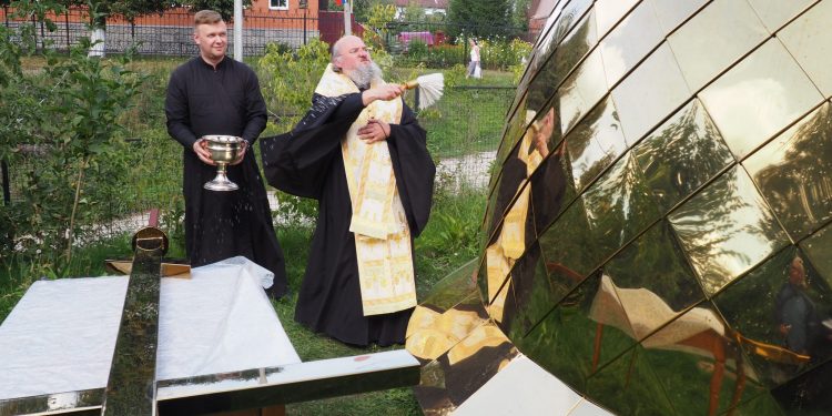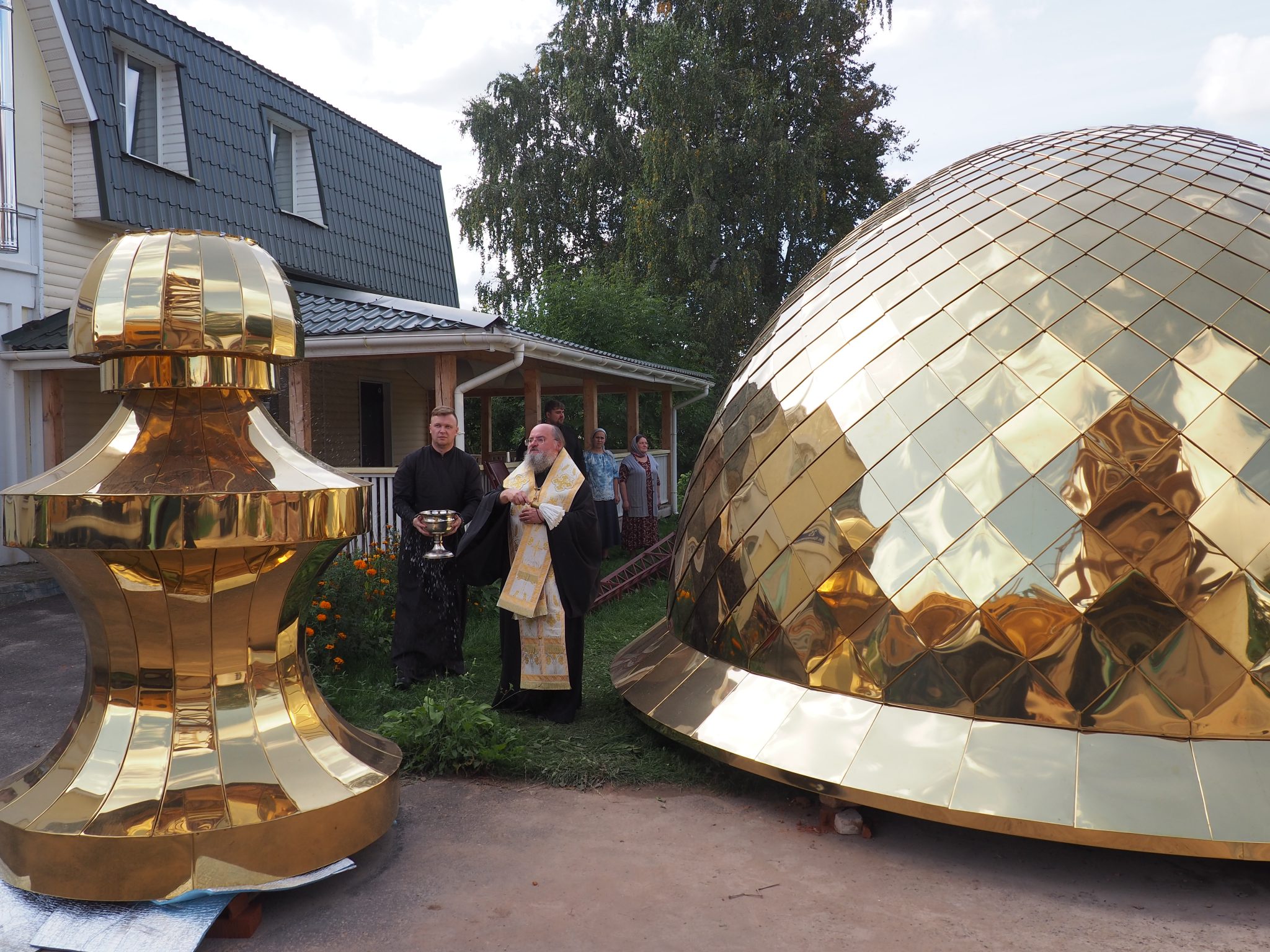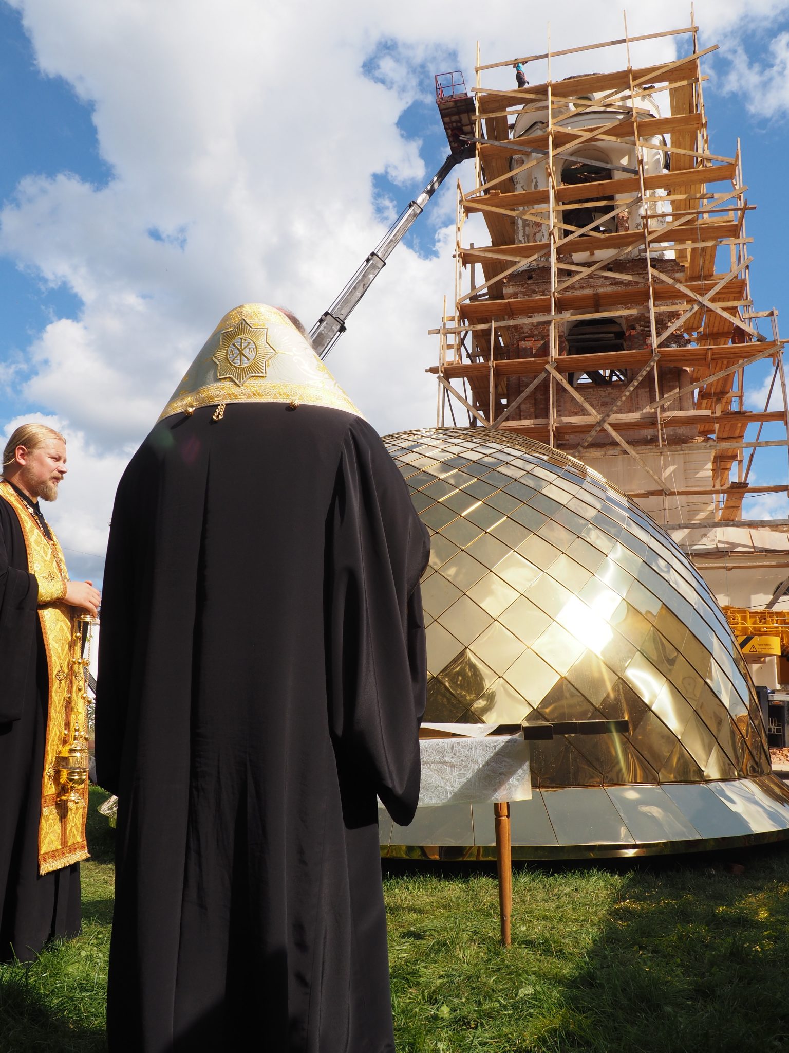 7 сентября епископ Козельский и Людиновский Никита совершил освящение накупольного креста, шпиля и купола для колокольни храма.