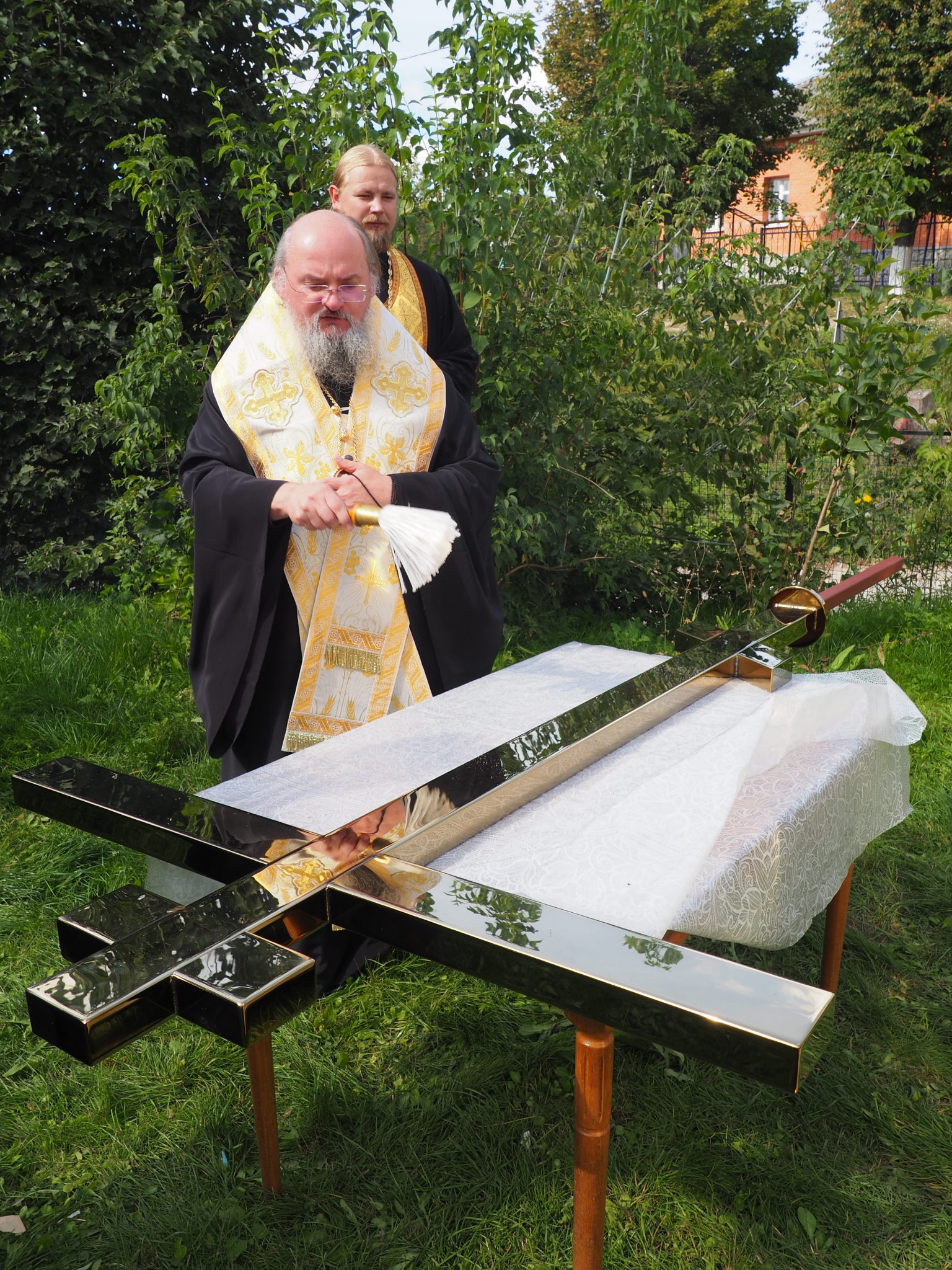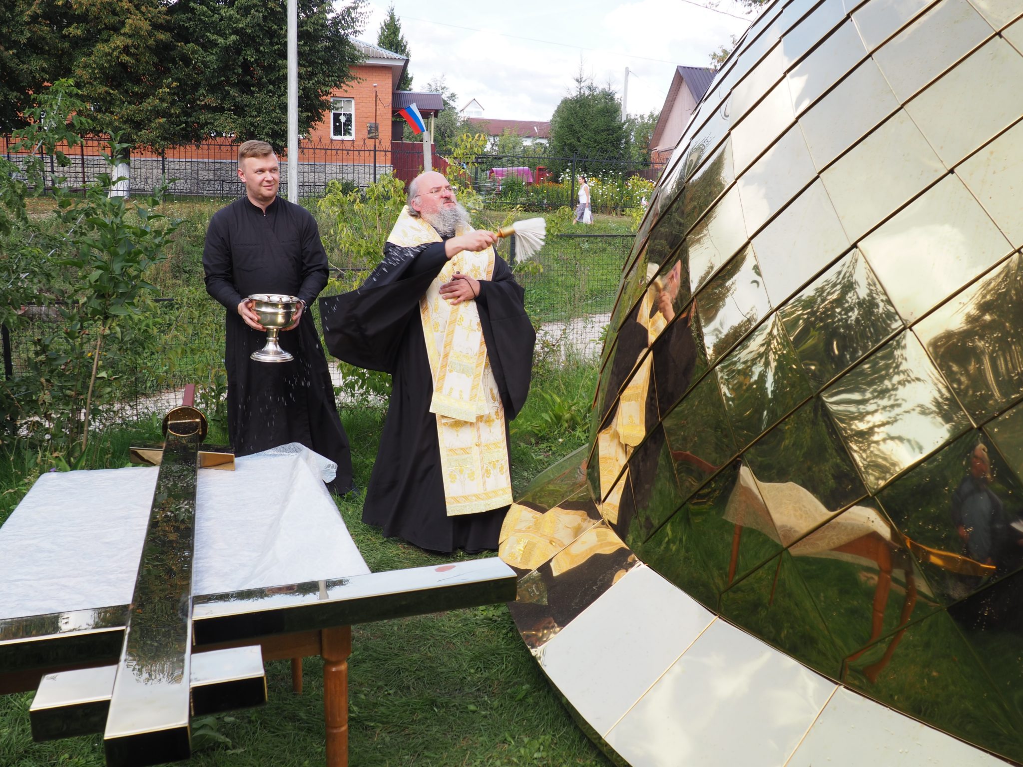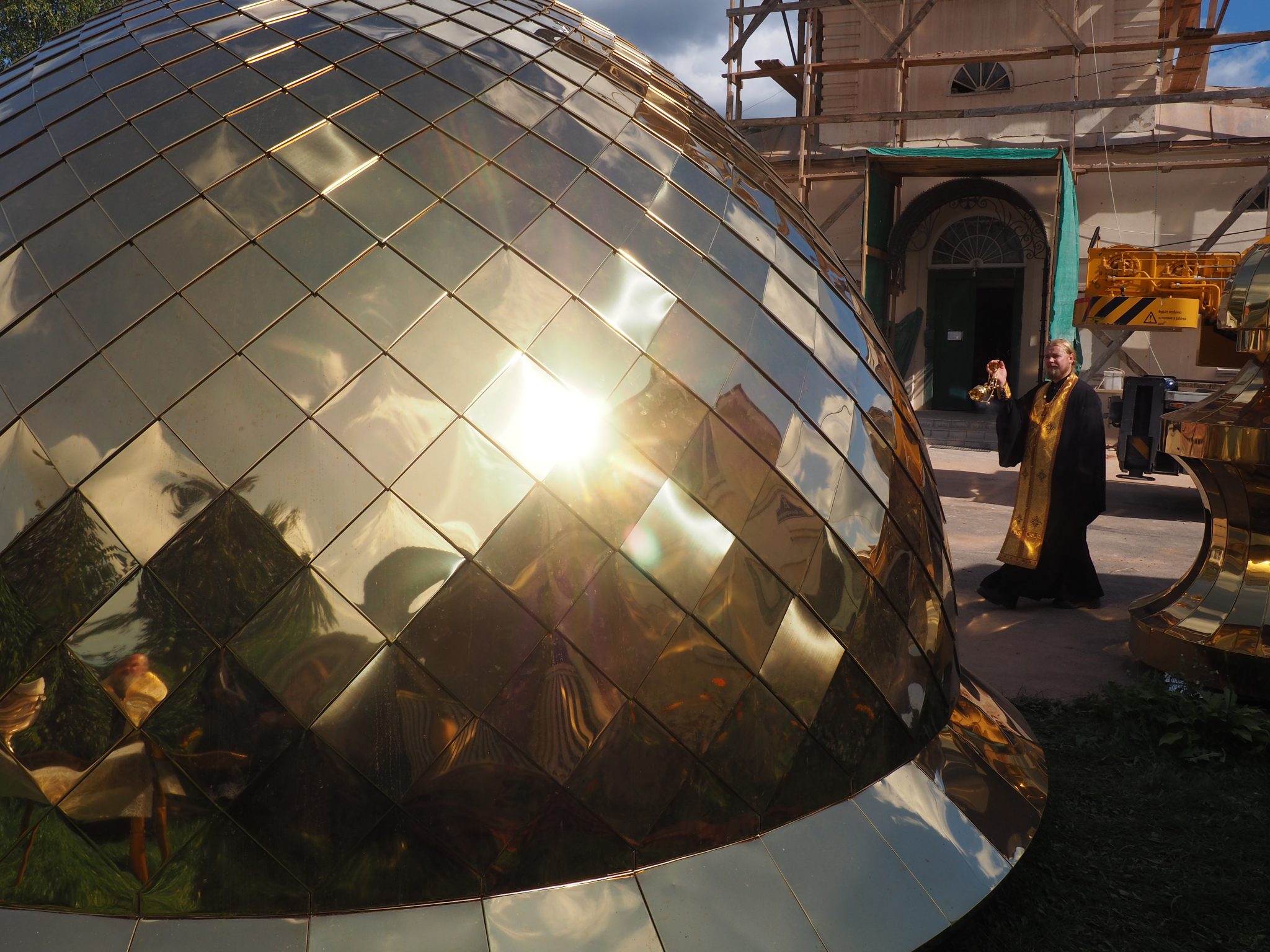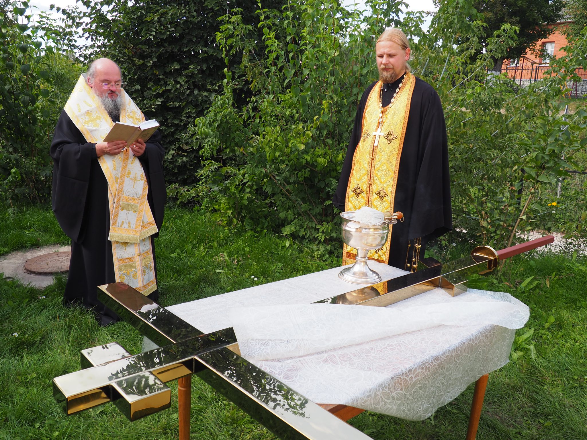 7 сентября епископ Козельский и Людиновский Никита совершил освящение накупольного креста, шпиля и купола для колокольни храма.
