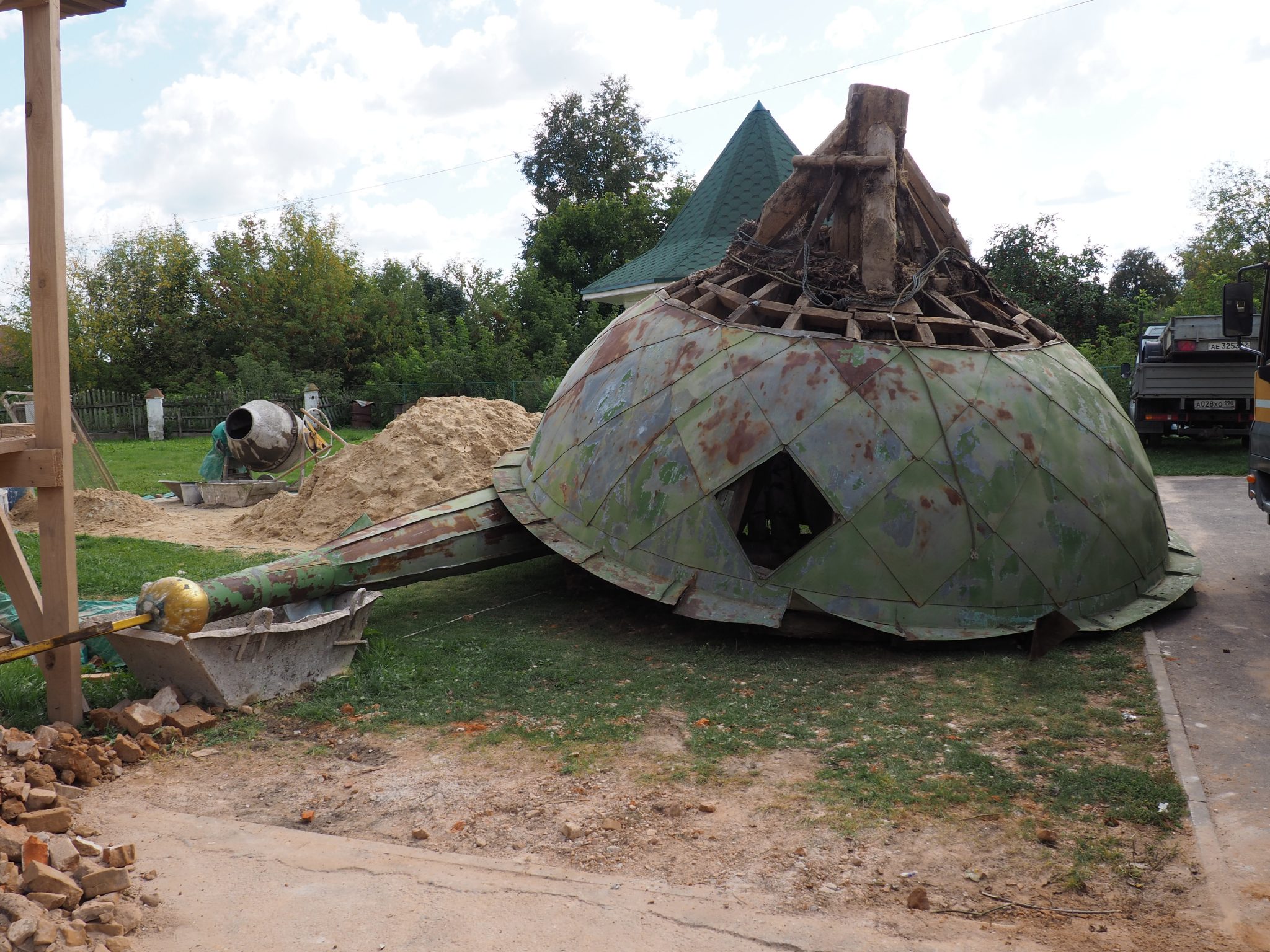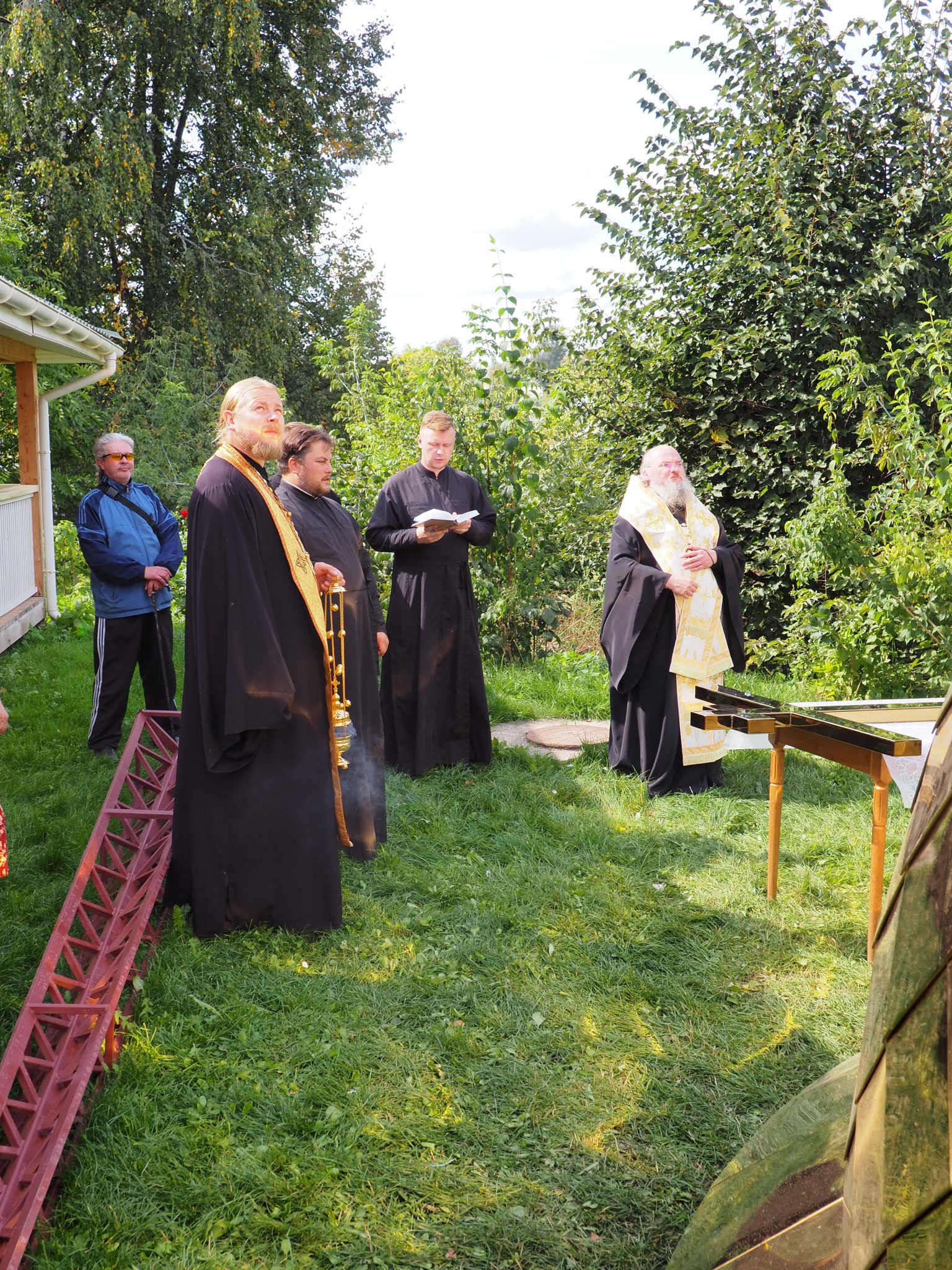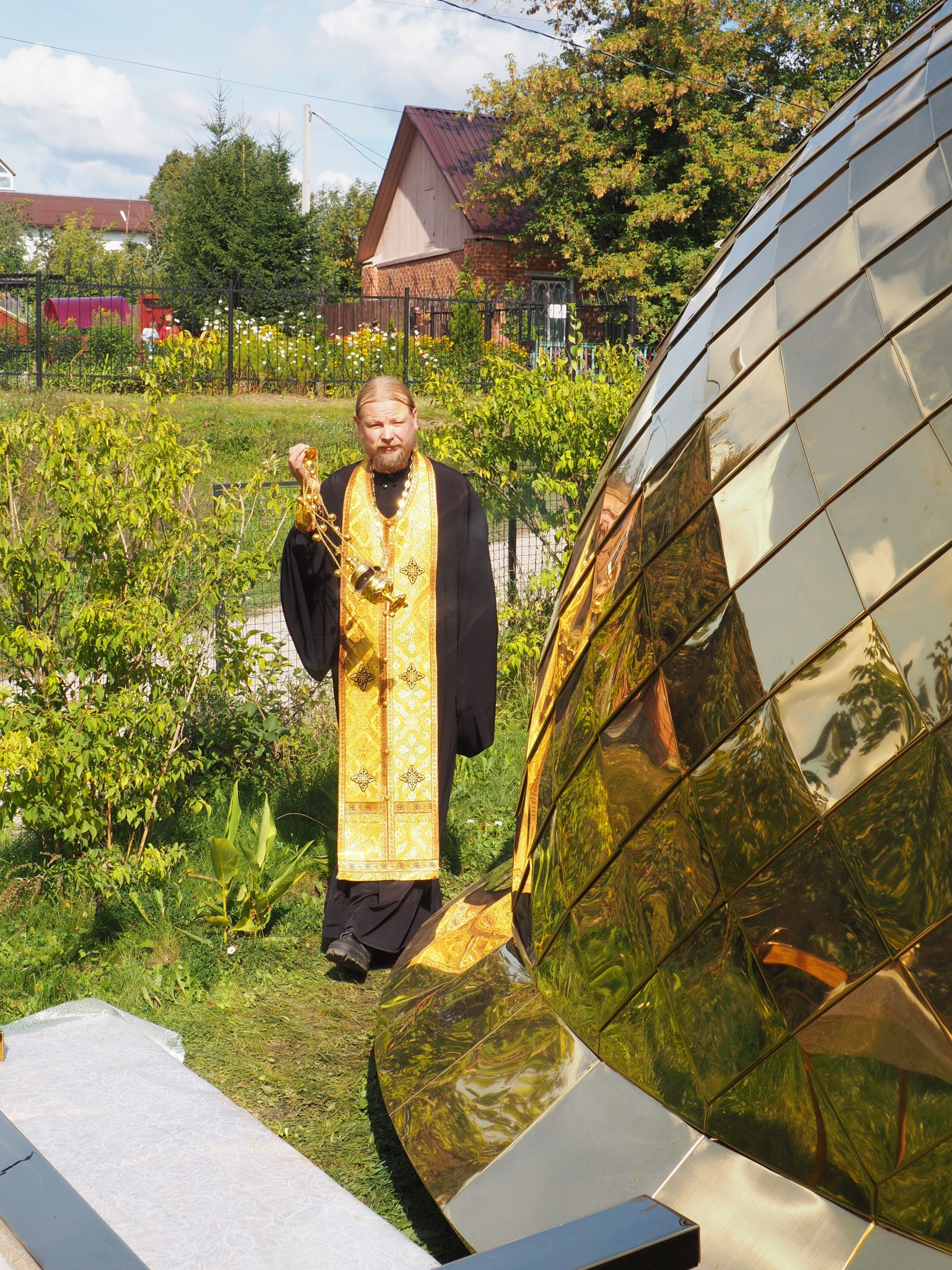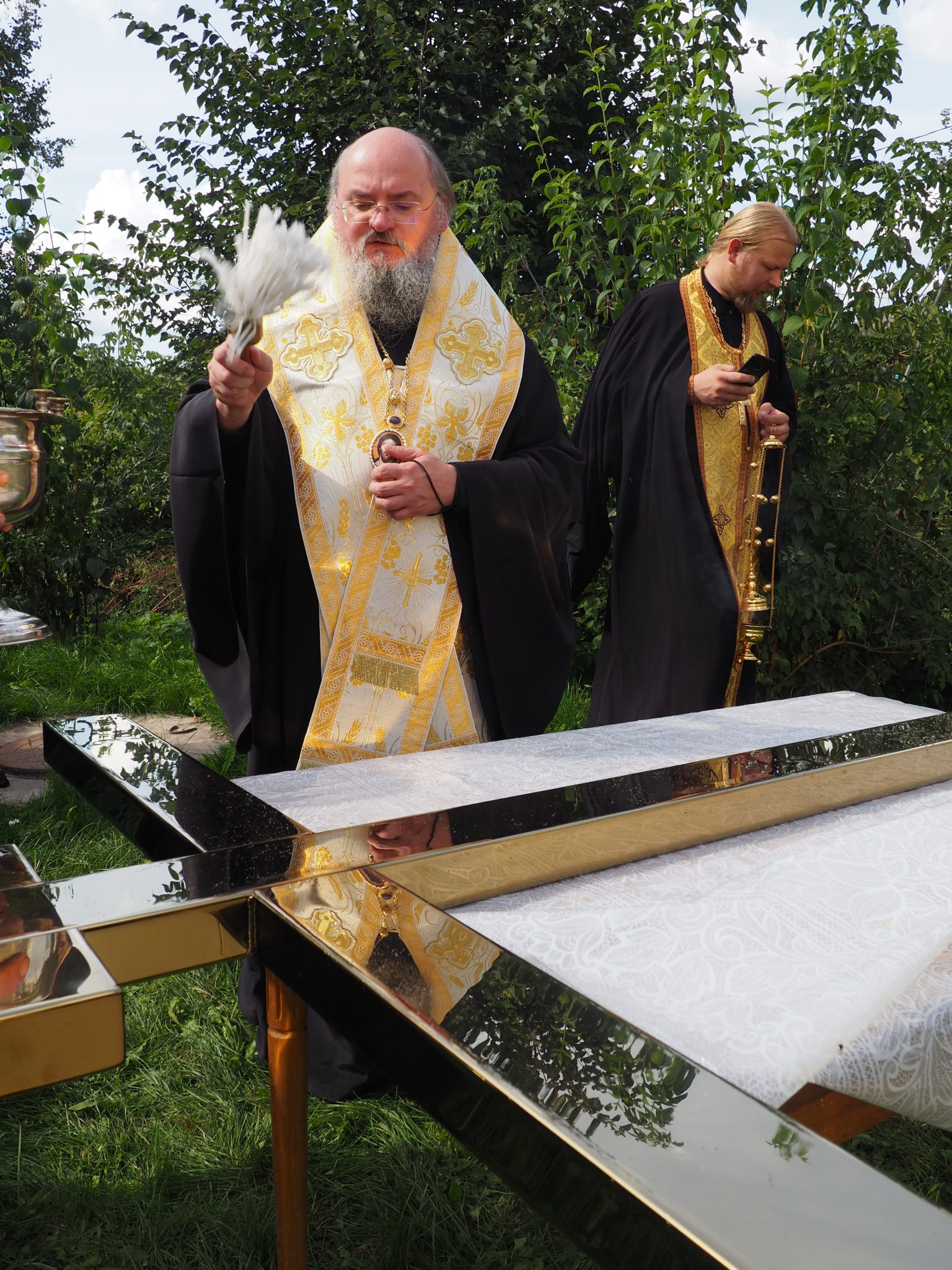 7 сентября епископ Козельский и Людиновский Никита совершил освящение накупольного креста, шпиля и купола для колокольни храма.