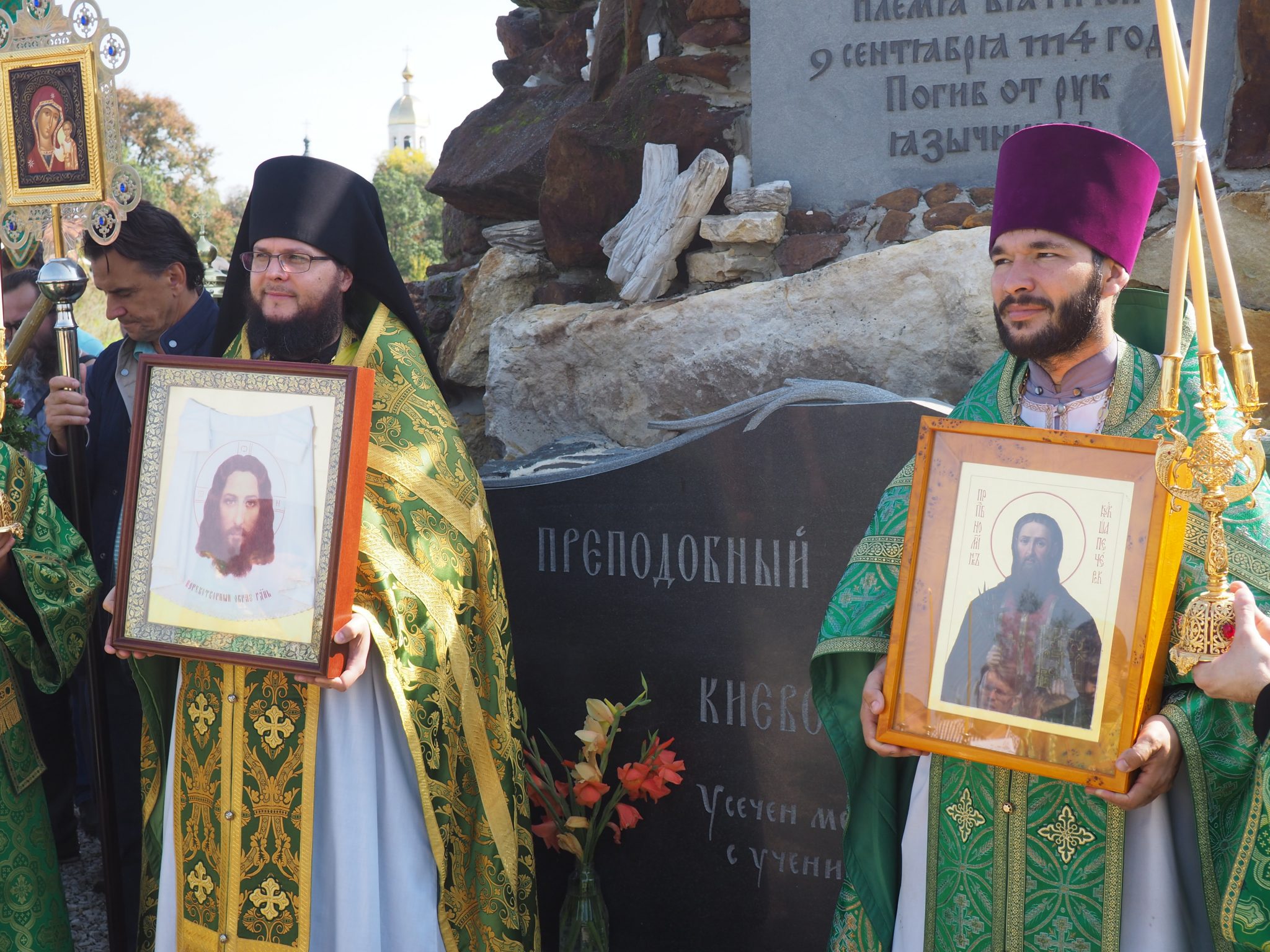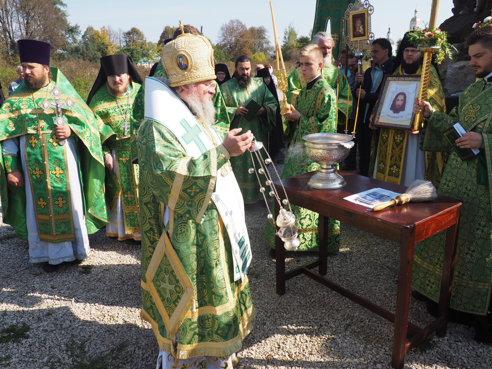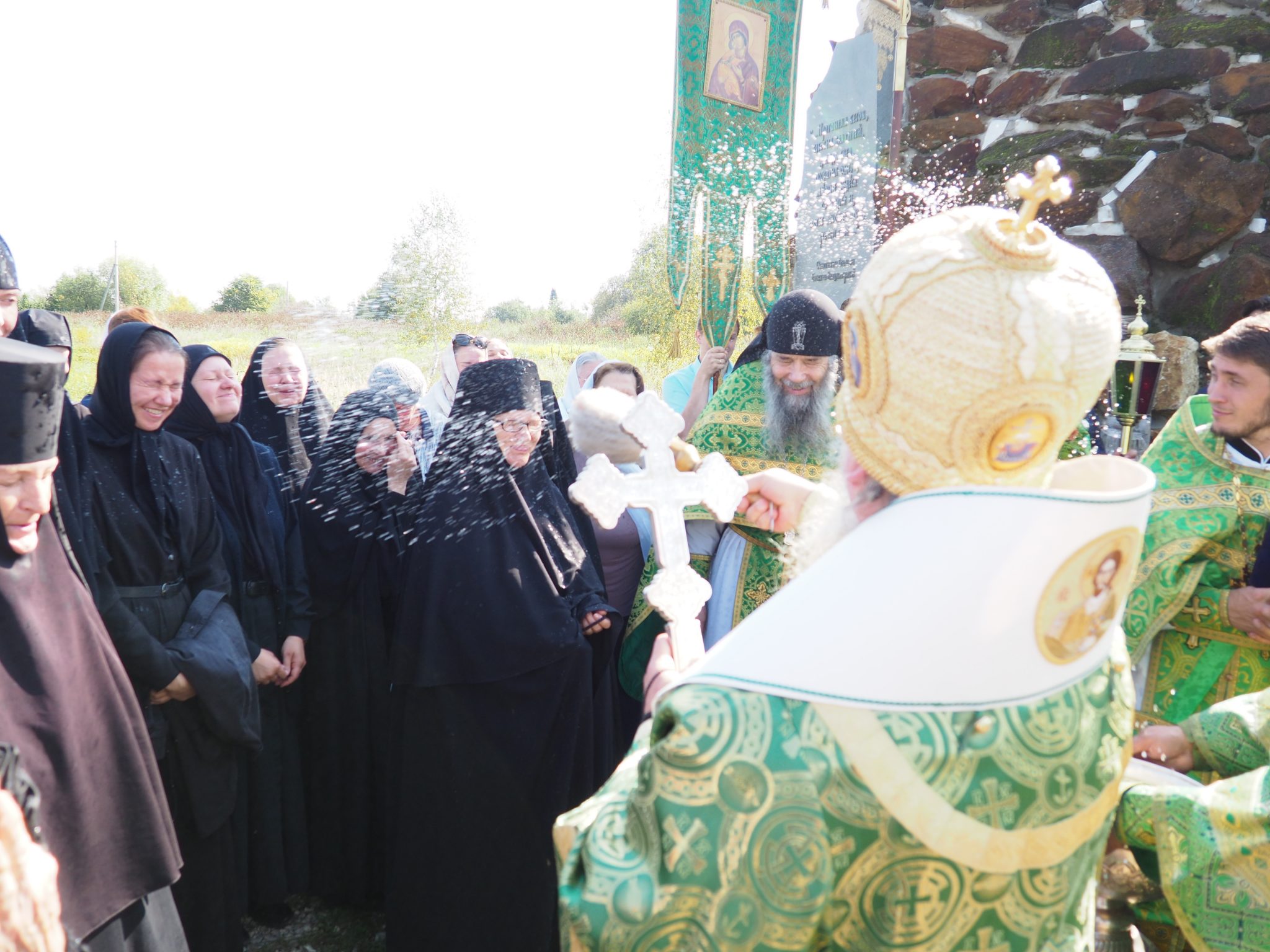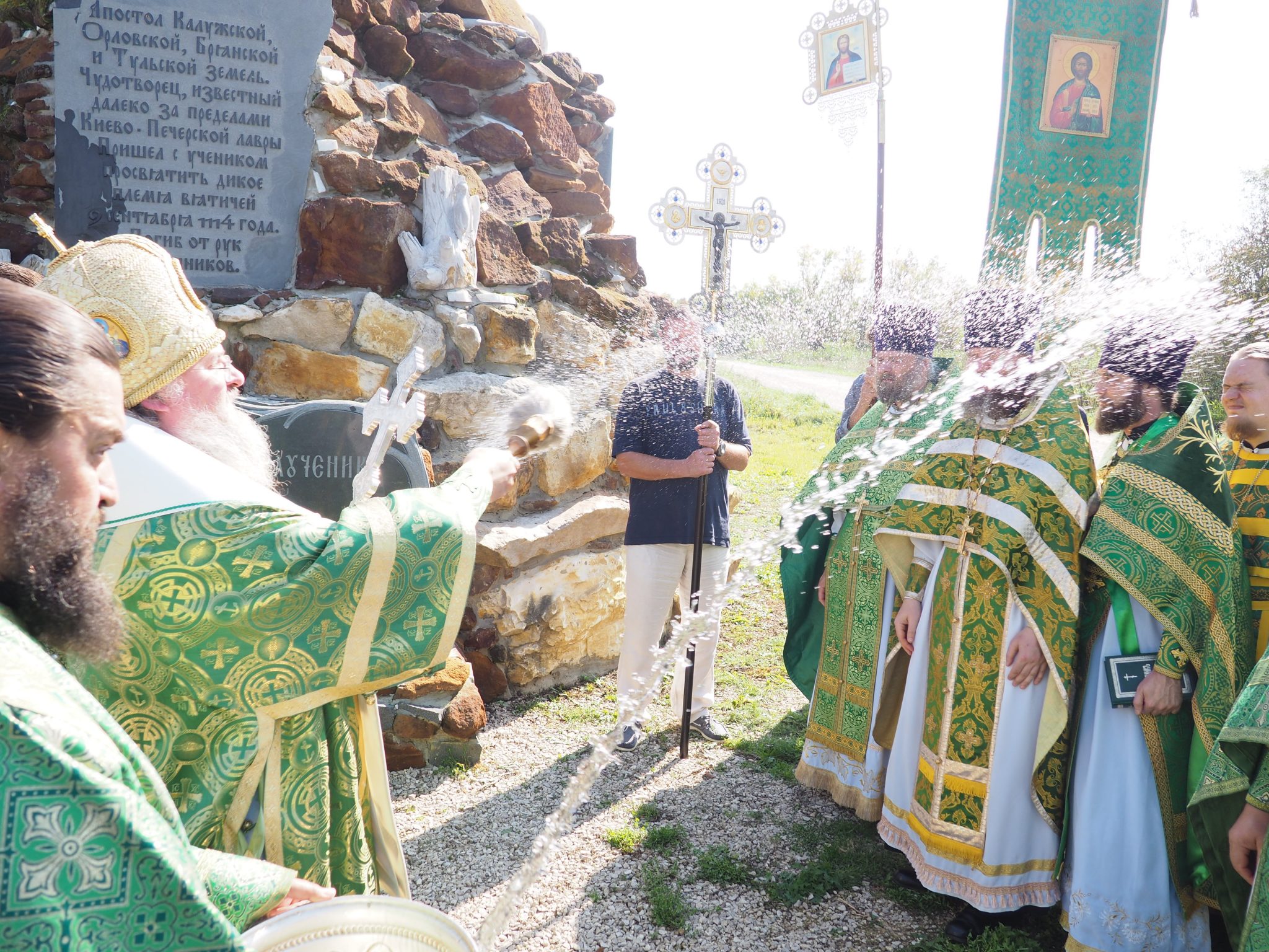 По отпусте литургии состоялся торжественный крестный ход к памятнику святому Кукше, установленному на подъезде к монастырю, где владыка совершил малое освящение воды и вознес молитву преподобномученику.