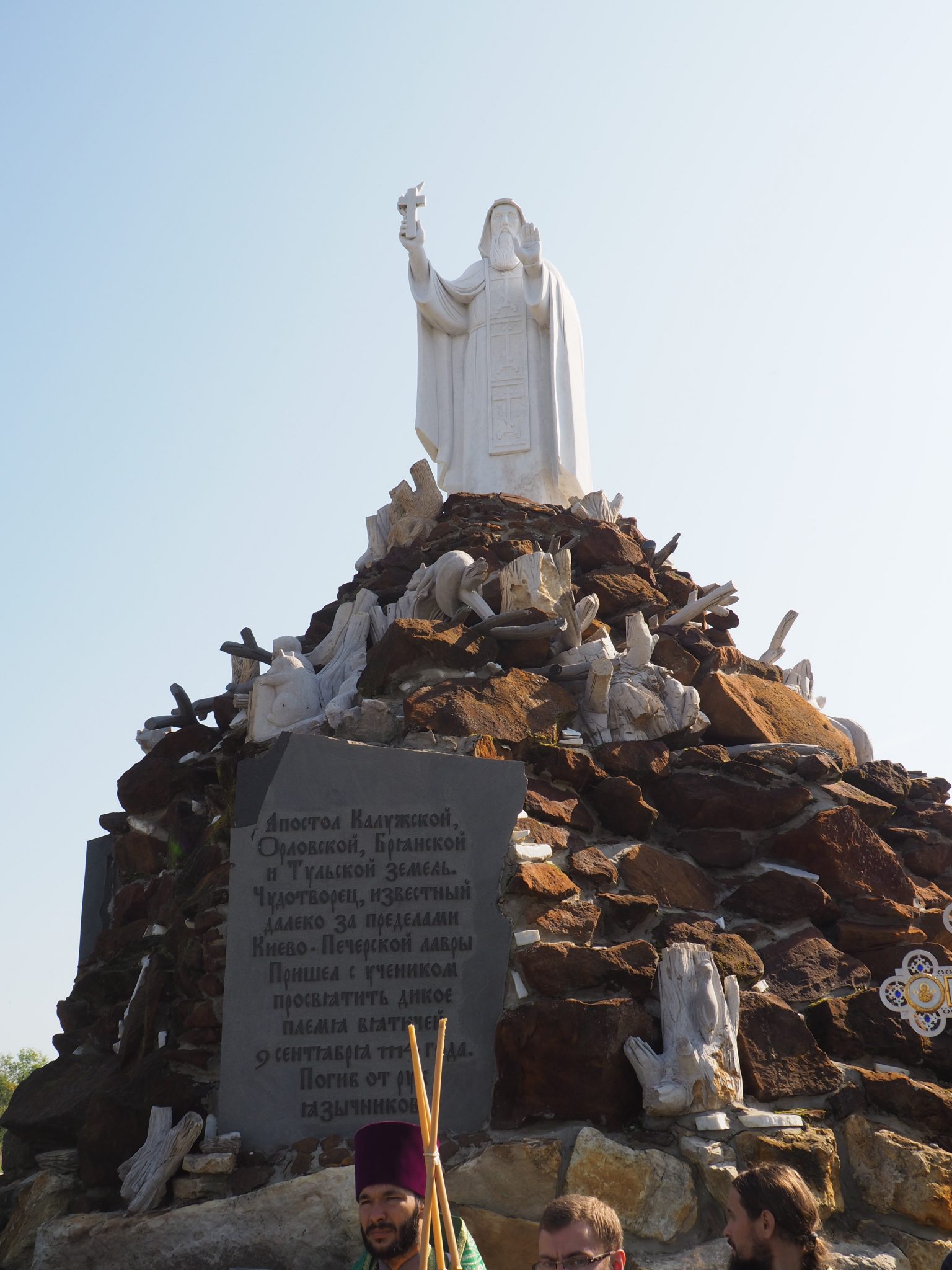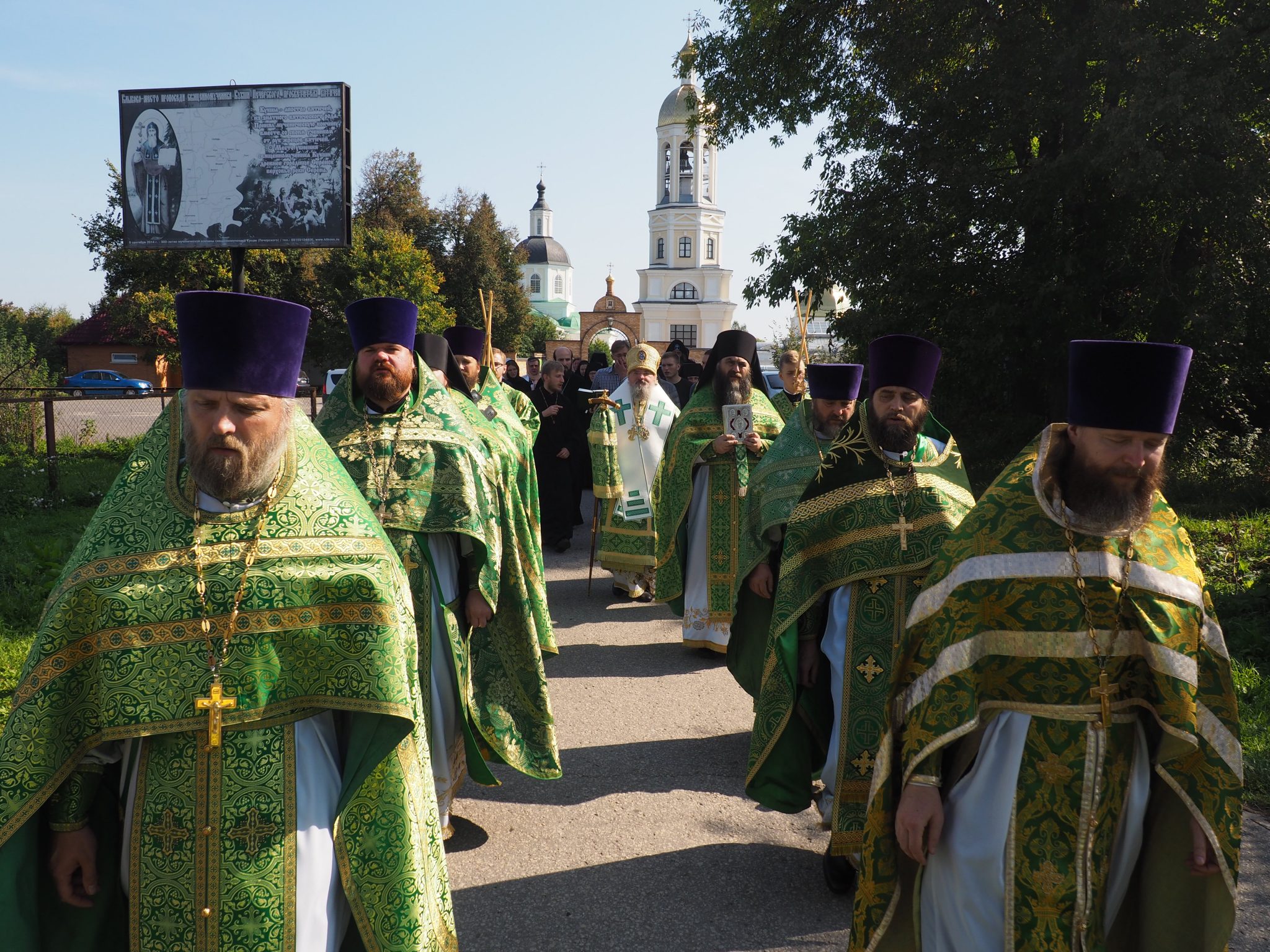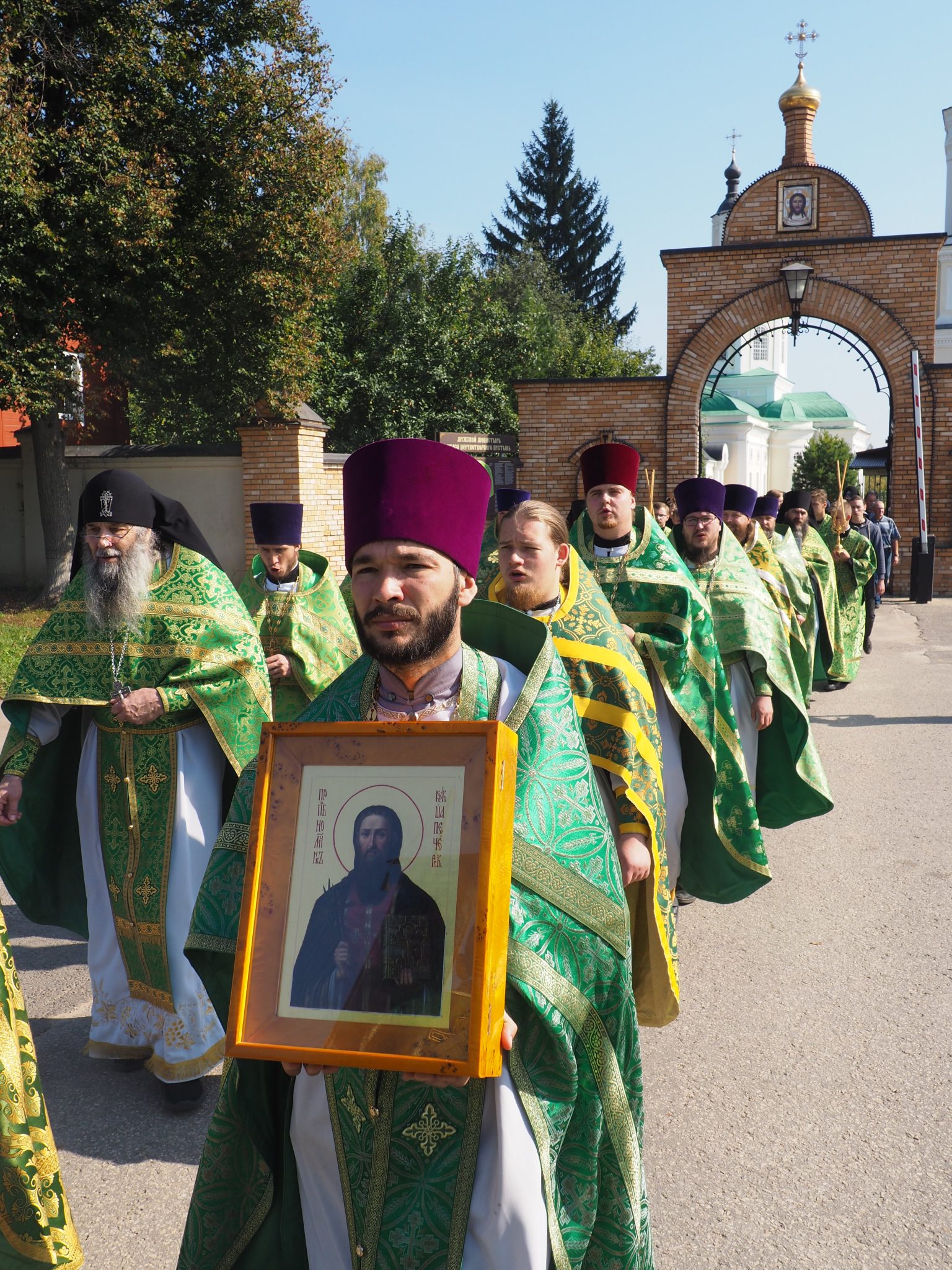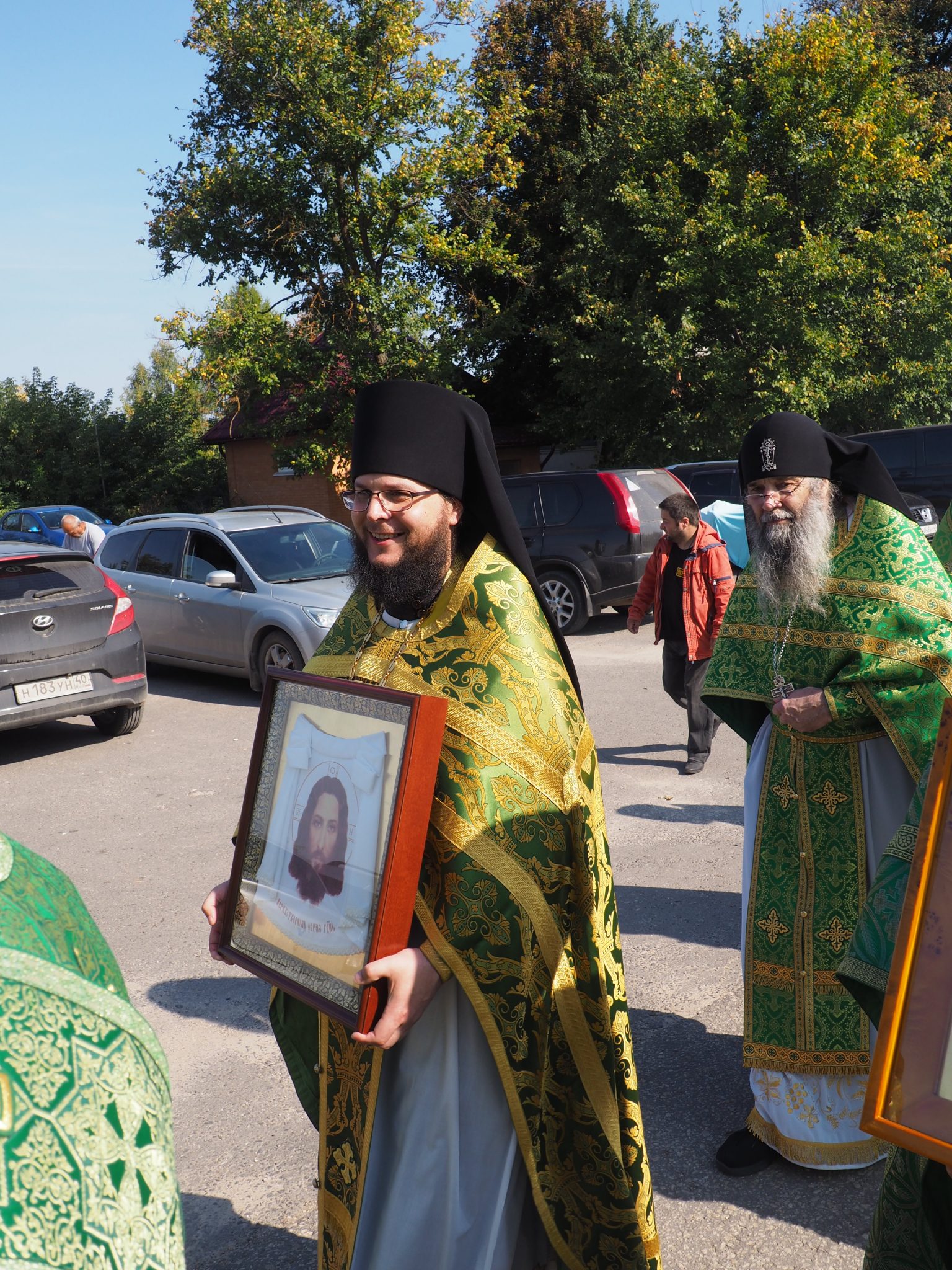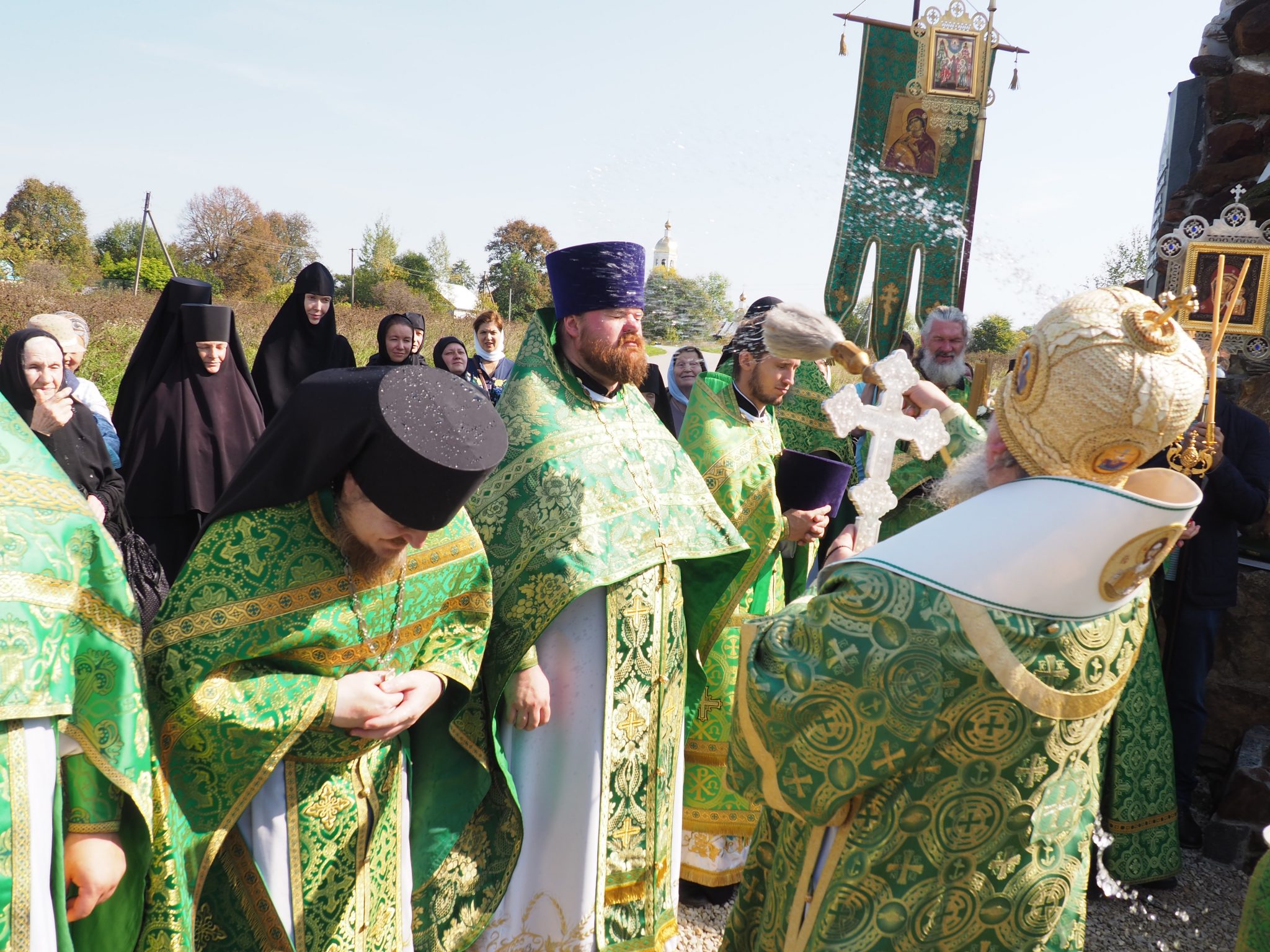 По отпусте литургии состоялся торжественный крестный ход к памятнику святому Кукше, установленному на подъезде к монастырю, где владыка совершил малое освящение воды и вознес молитву преподобномученику.
