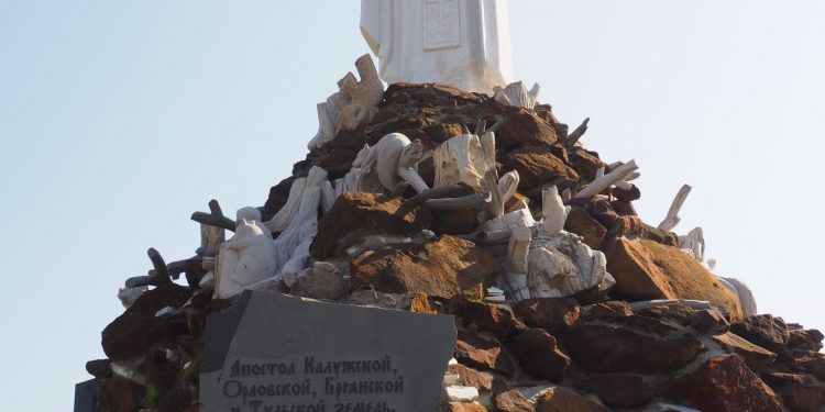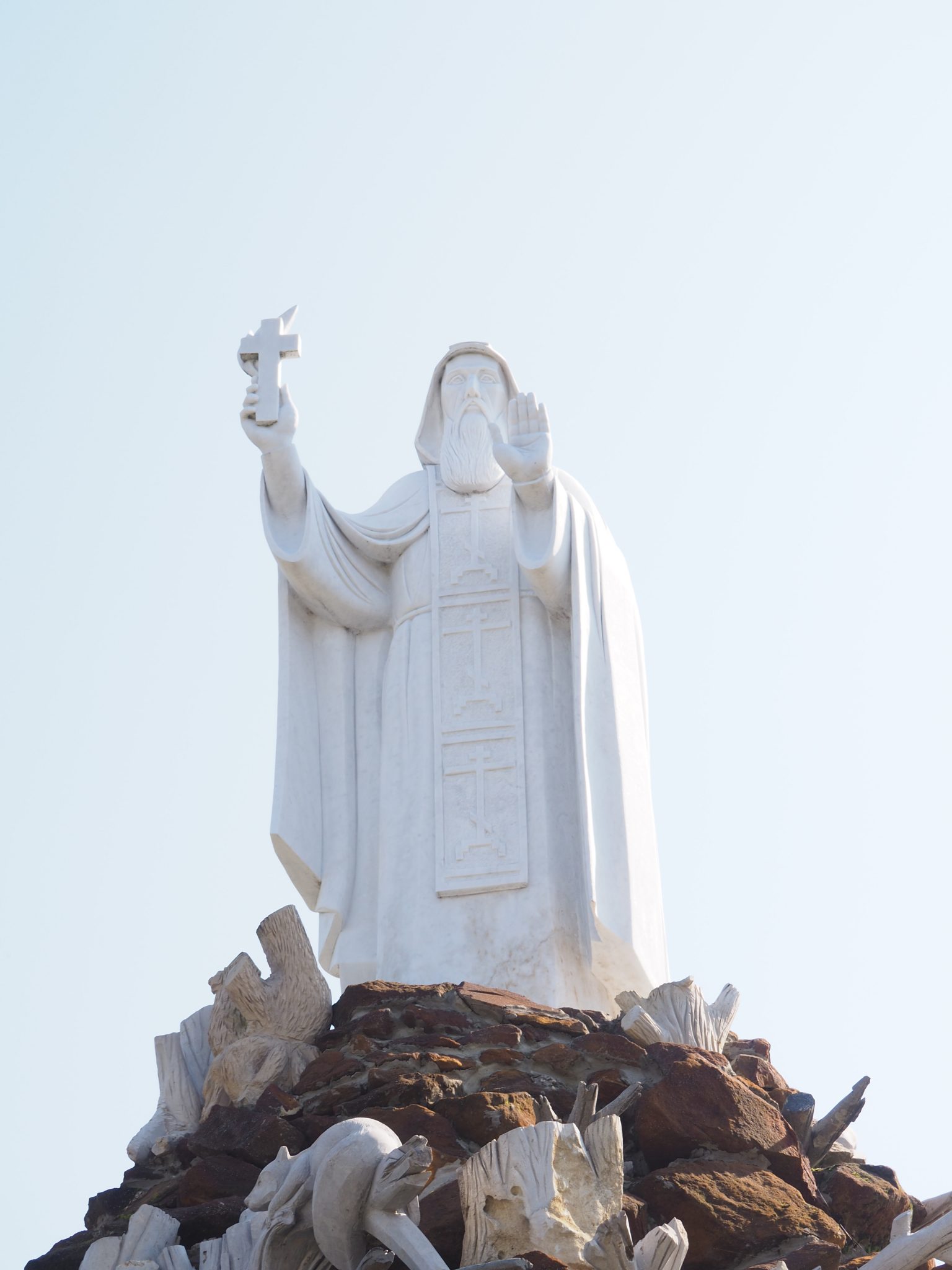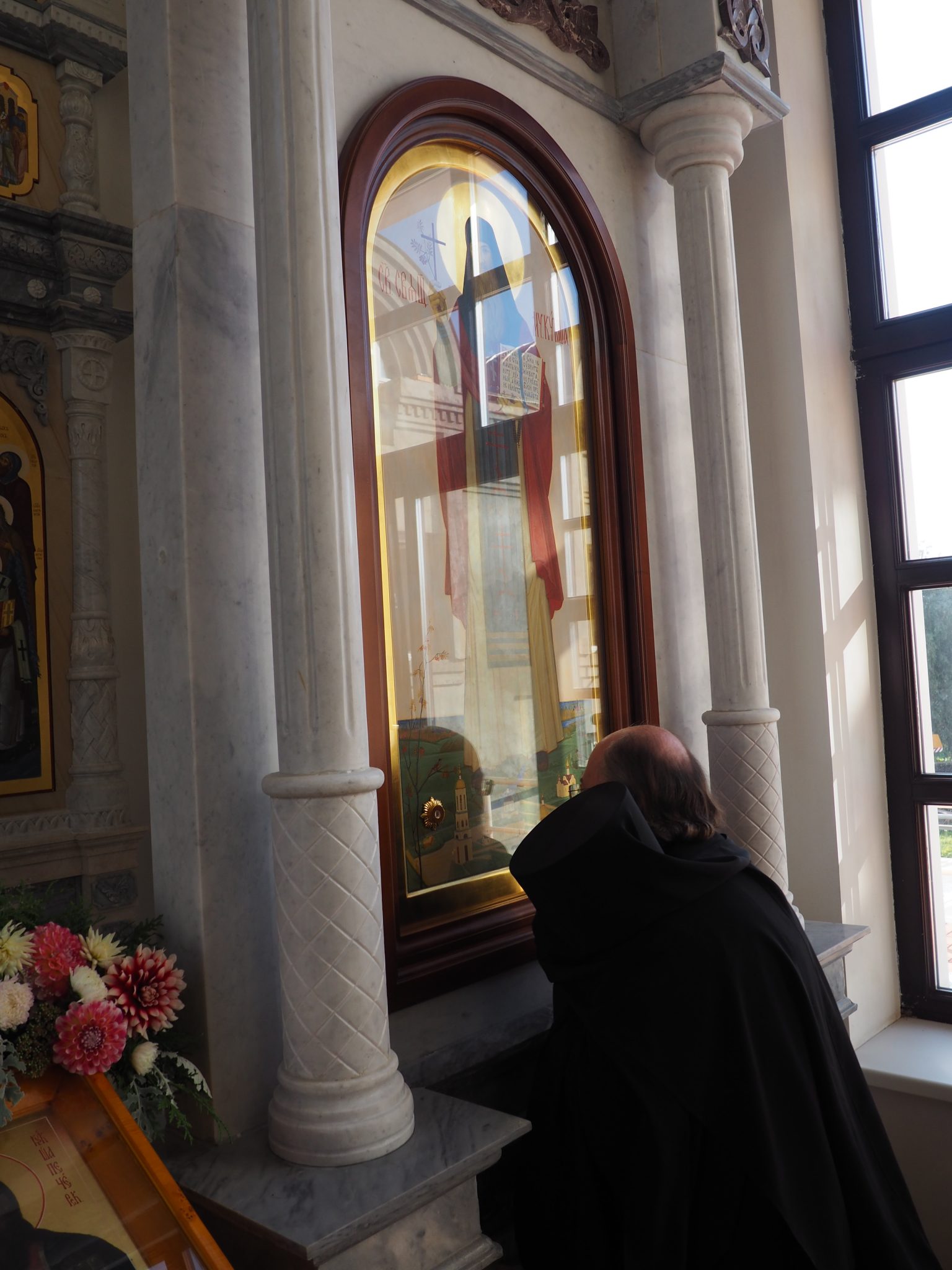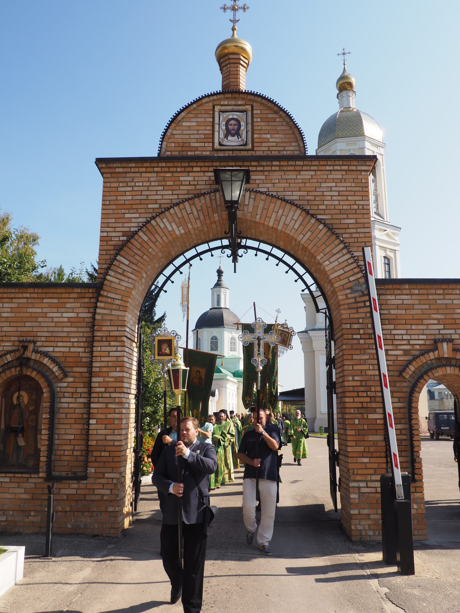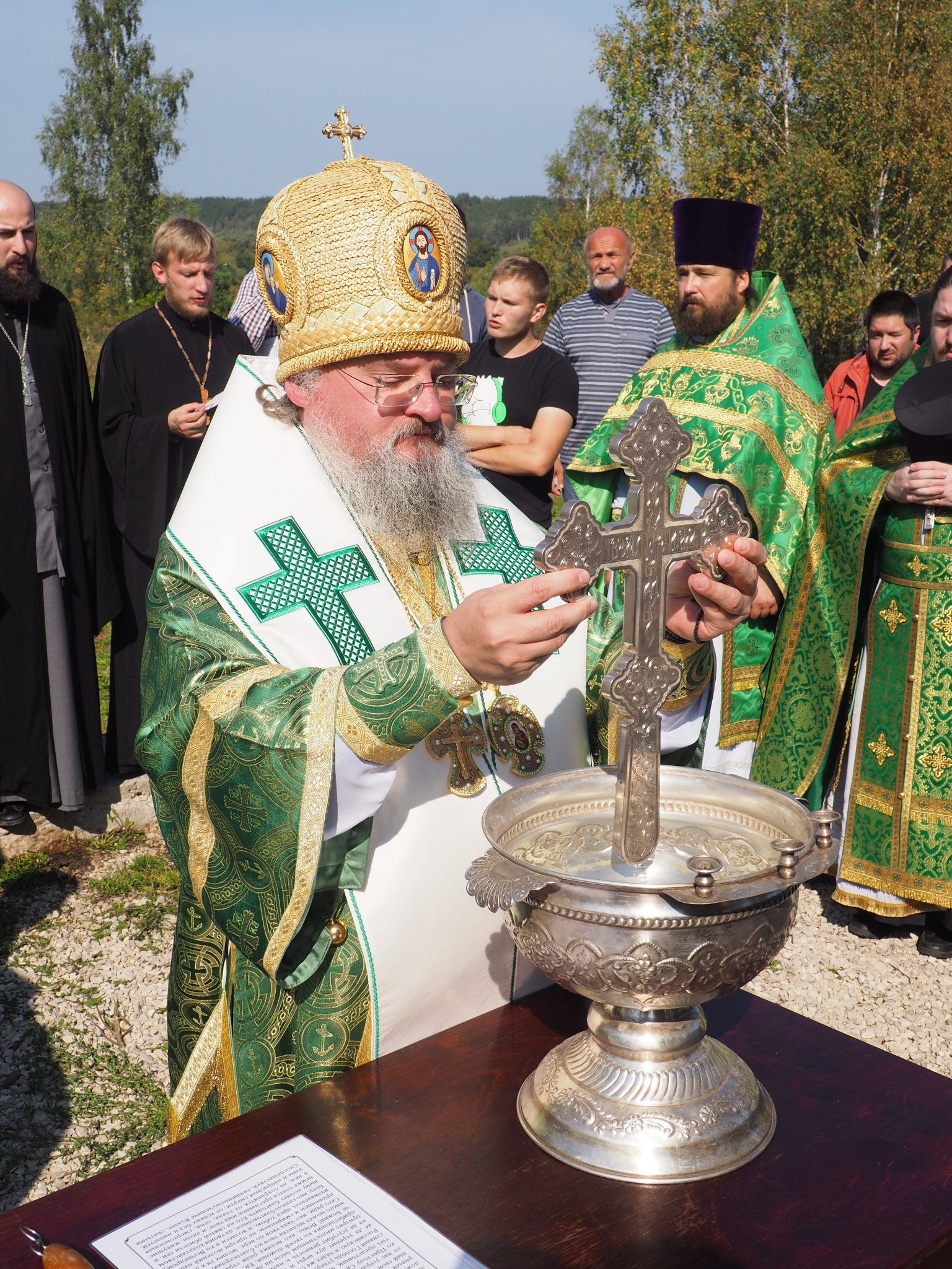 По отпусте литургии состоялся торжественный крестный ход к памятнику святому Кукше, установленному на подъезде к монастырю, где владыка совершил малое освящение воды и вознес молитву преподобномученику.