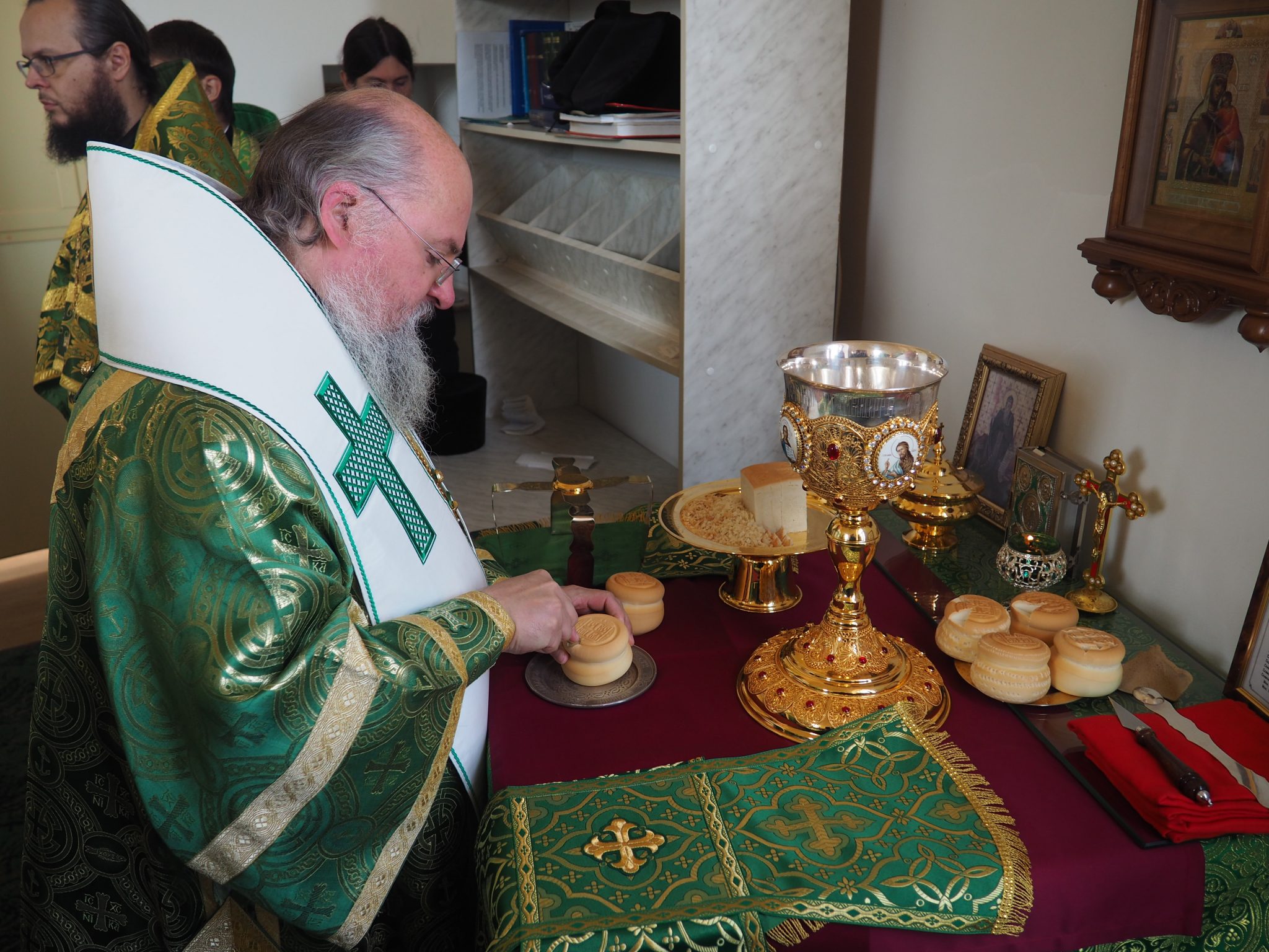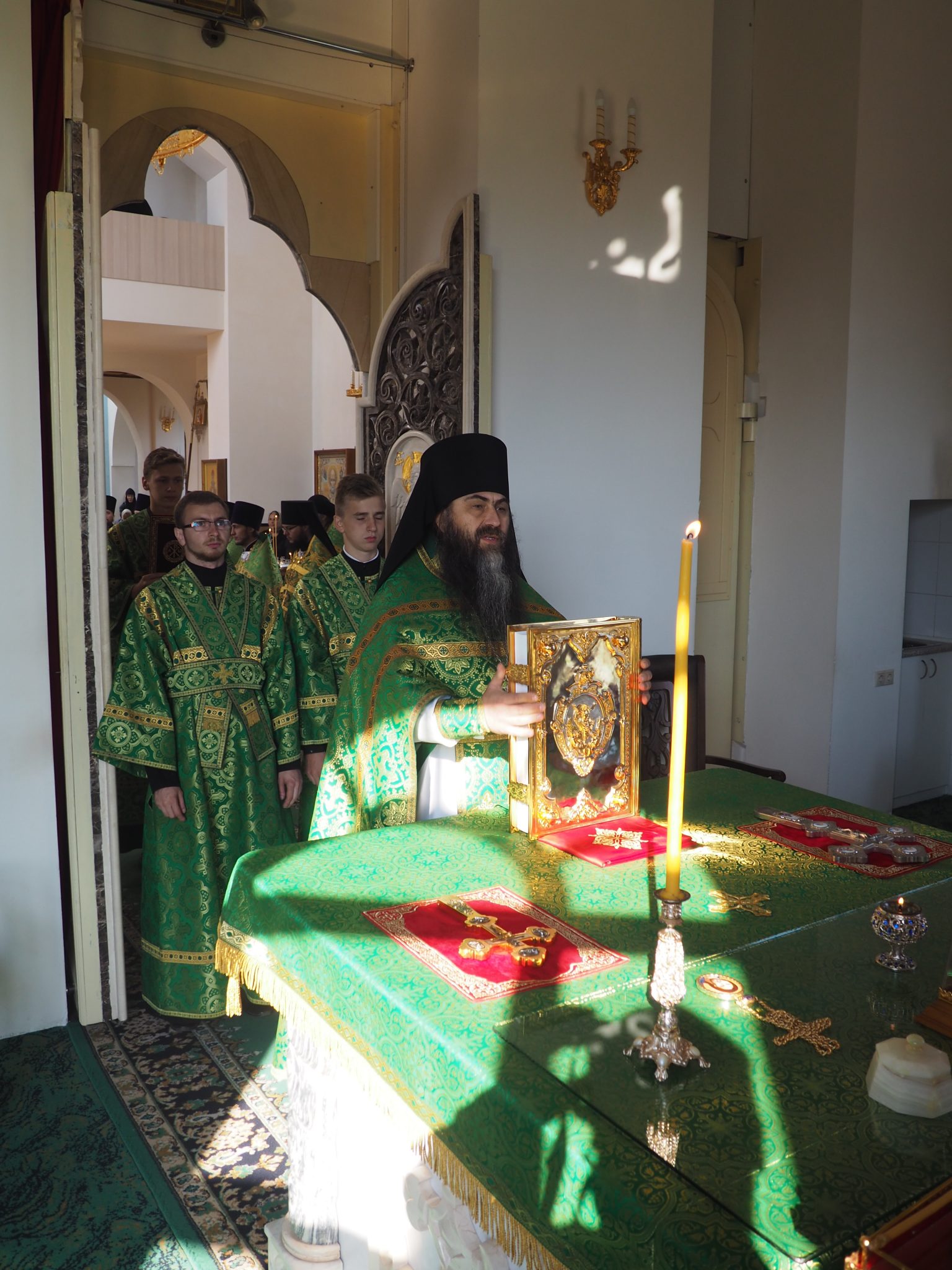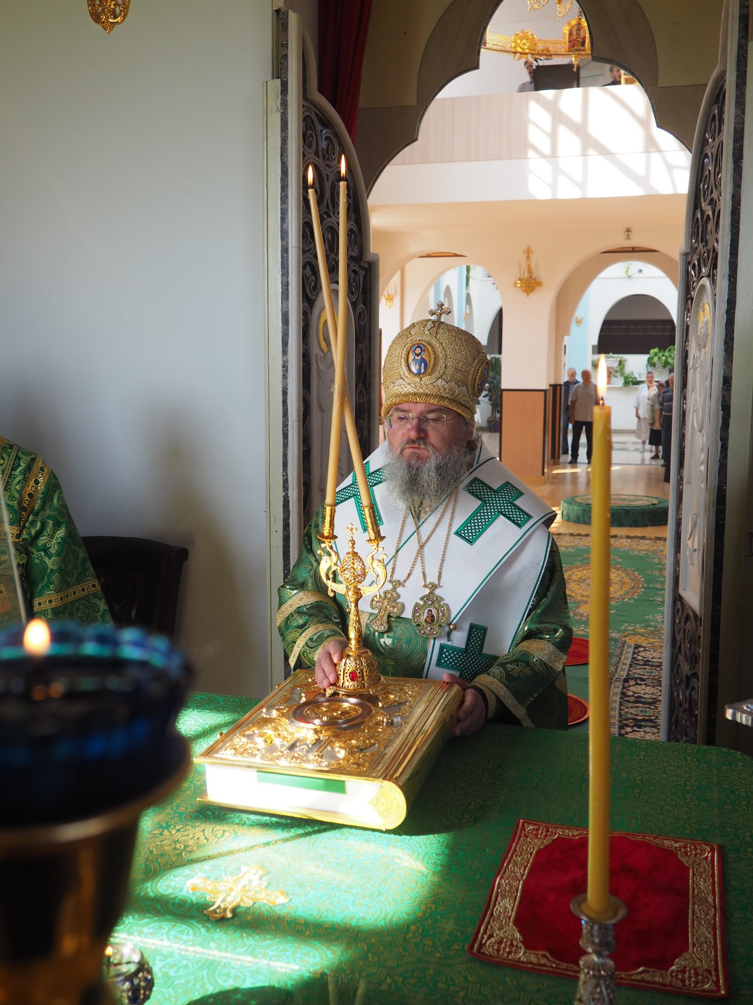По возвращении в храм архипастырь обратился к богомольцам с проповедью.